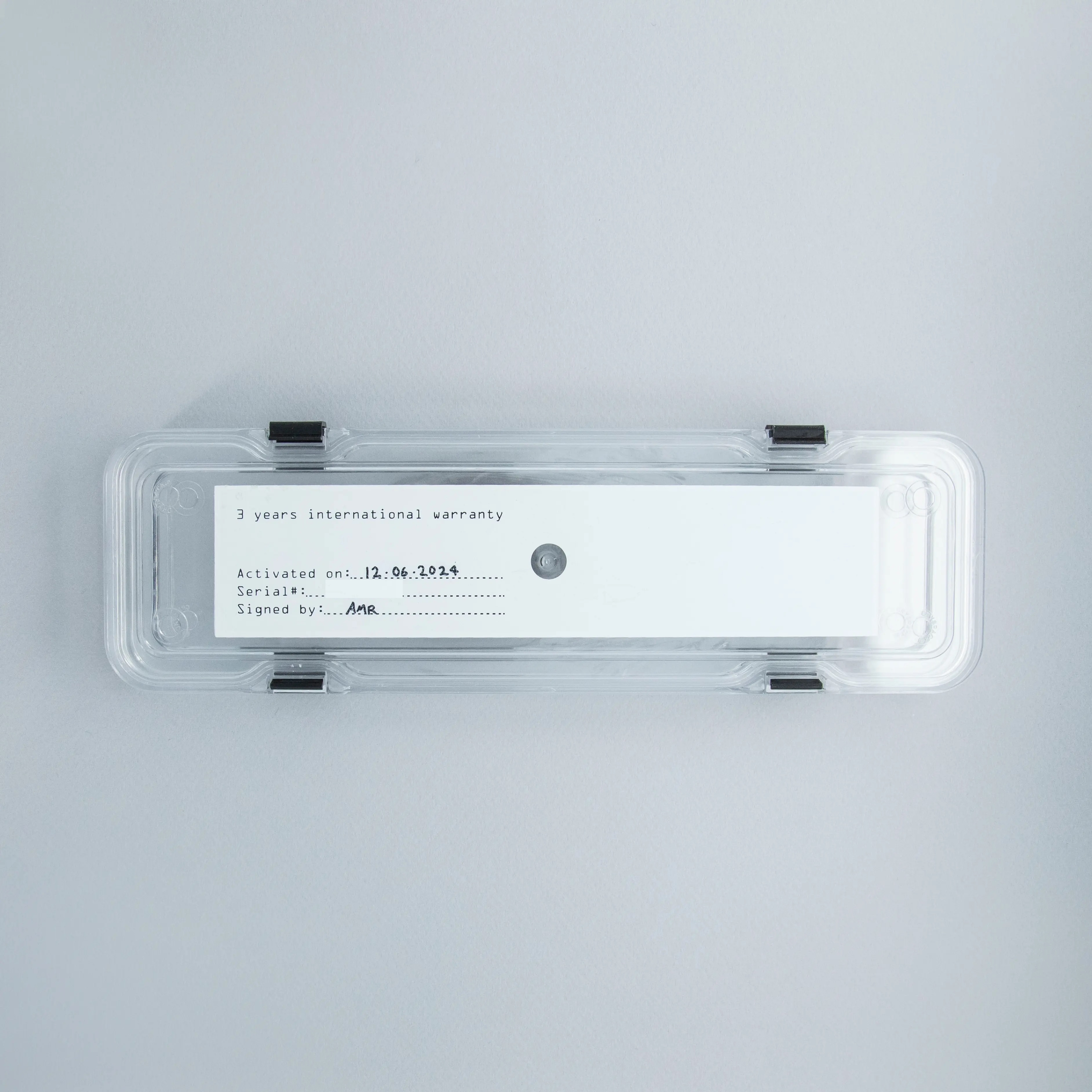 The watch is in like-new condition, showing only light signs of handling or wear. It comes complete with its original box with the warranty attached.