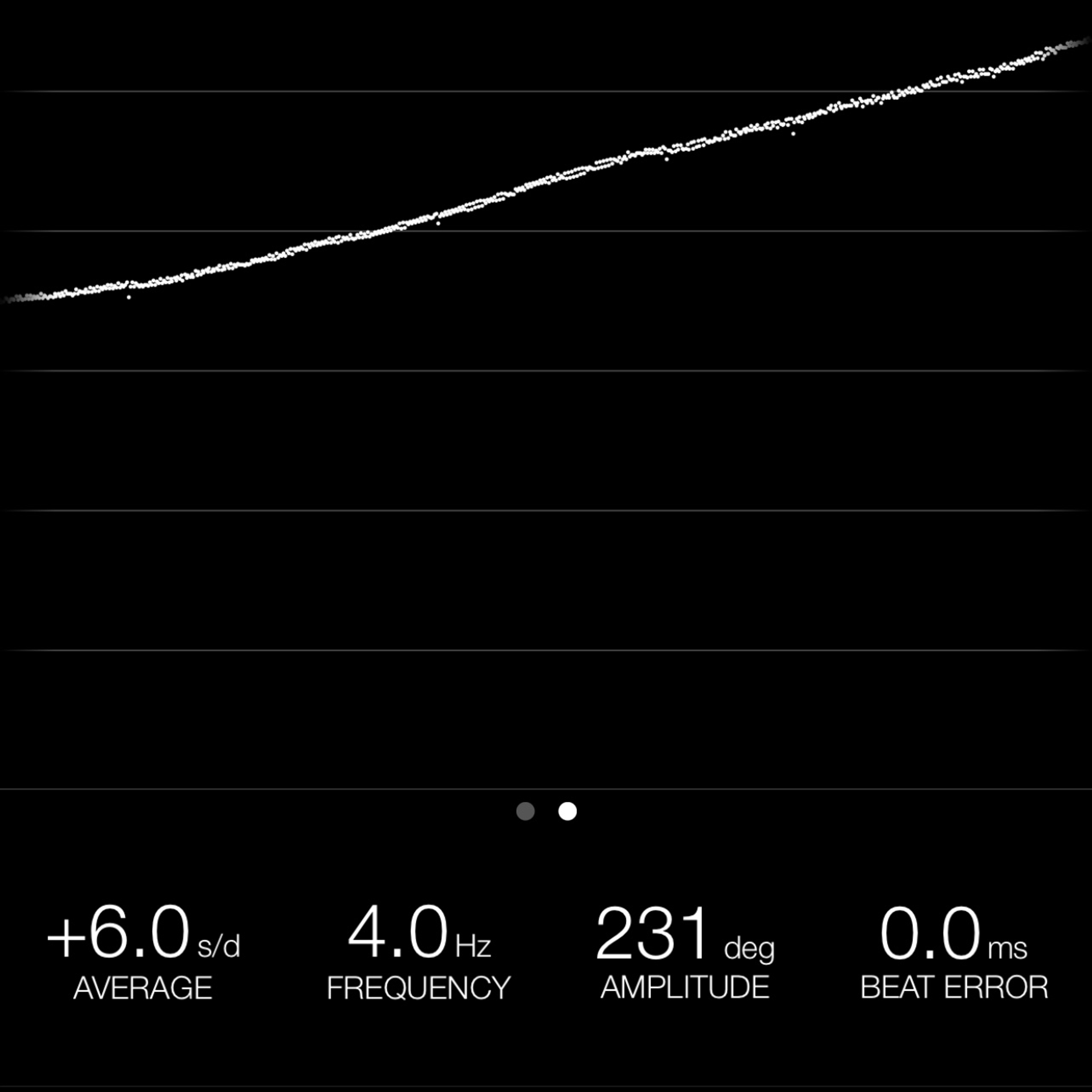 This reading was taken (crown down) with a ONEOF Accuracy Boutique Edition timing machine at time of cataloging. It is provided as a courtesy only, and shall not be construed as a warranty or guarantee of any kind. Please refer to our terms and conditions of sale for more information.