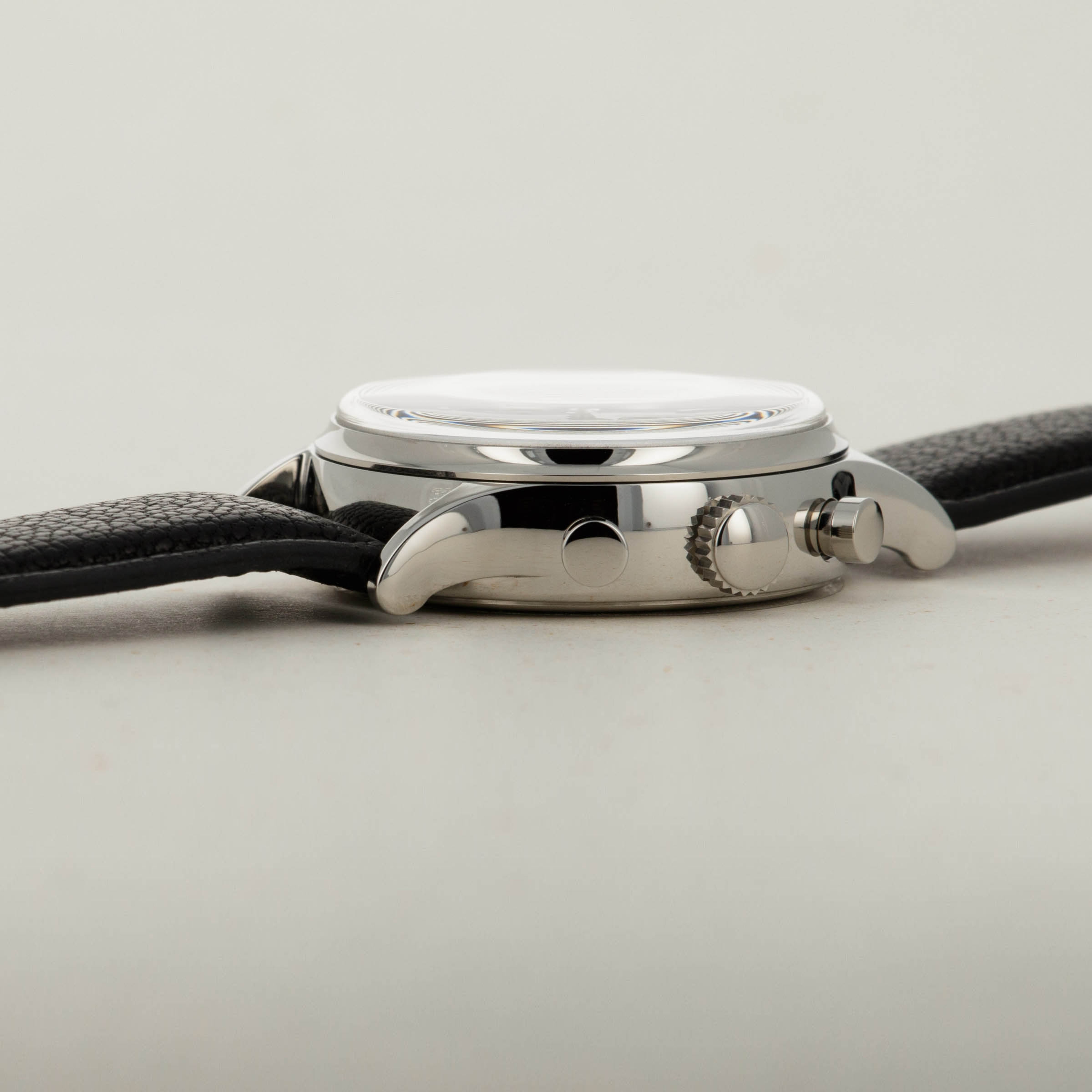 Inspired by the design eras of the past, the Chronograph 2's stainless steel physical construction is reminiscent of vintage watches of old with its heavily domed sapphire crystal, polished surfaces and pump pushers.