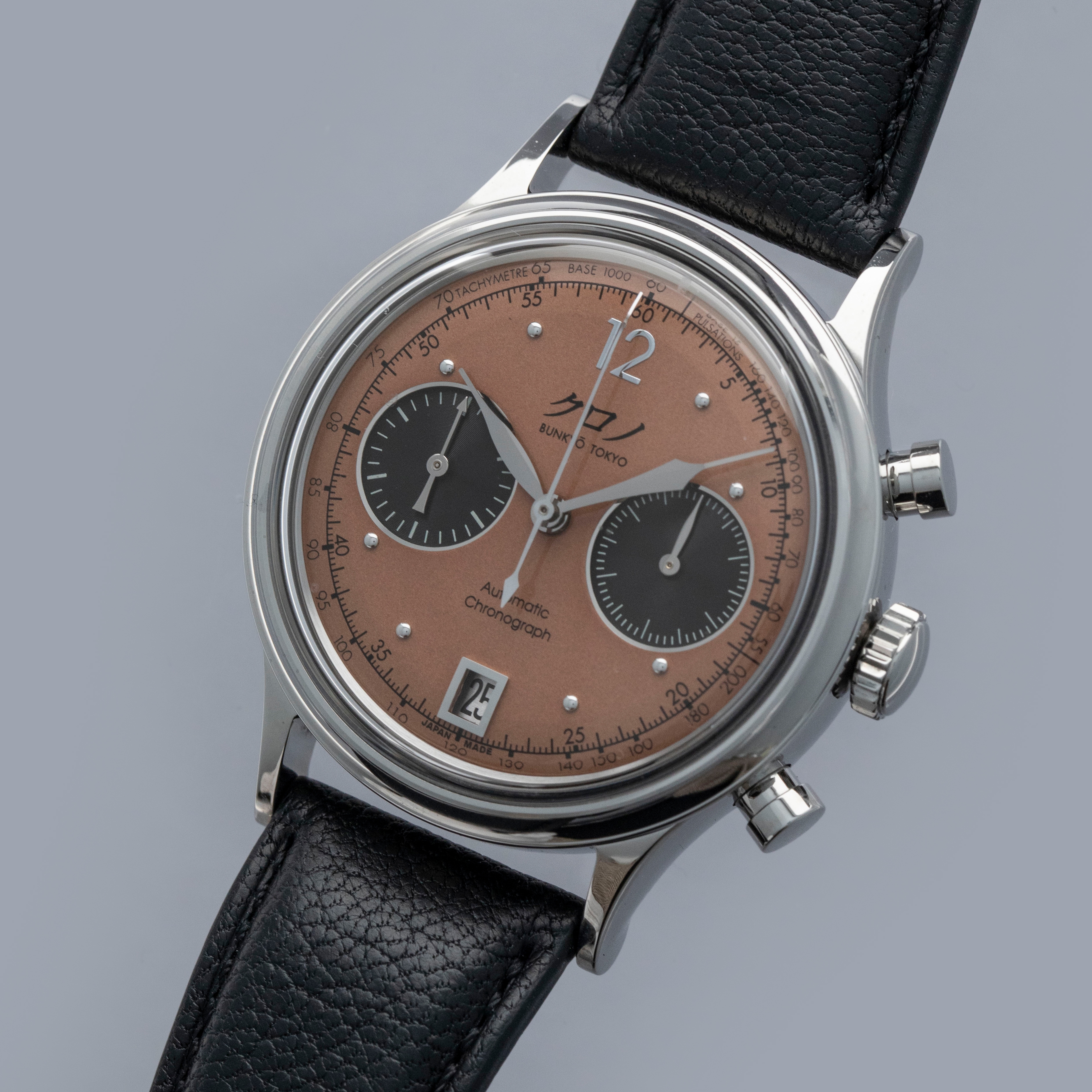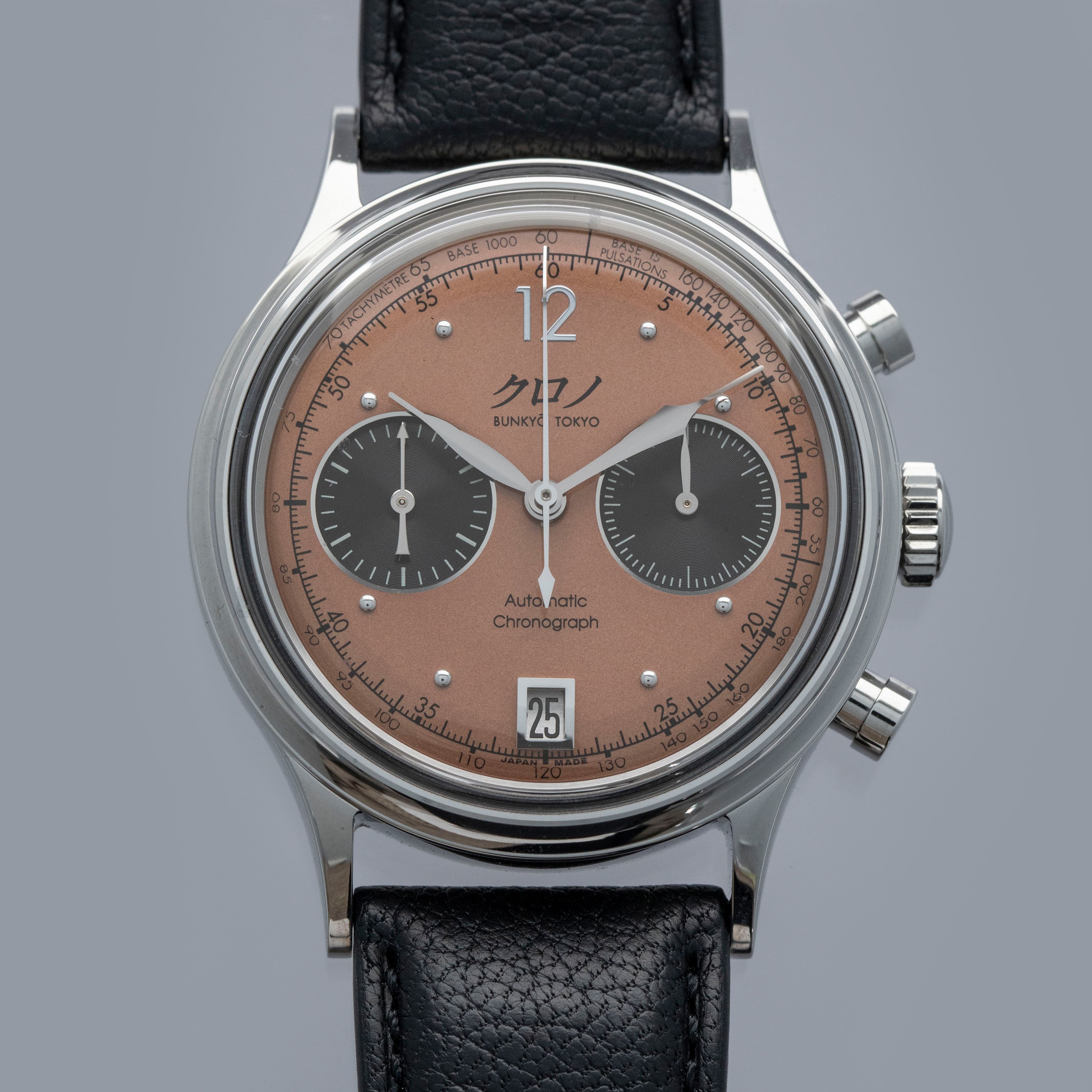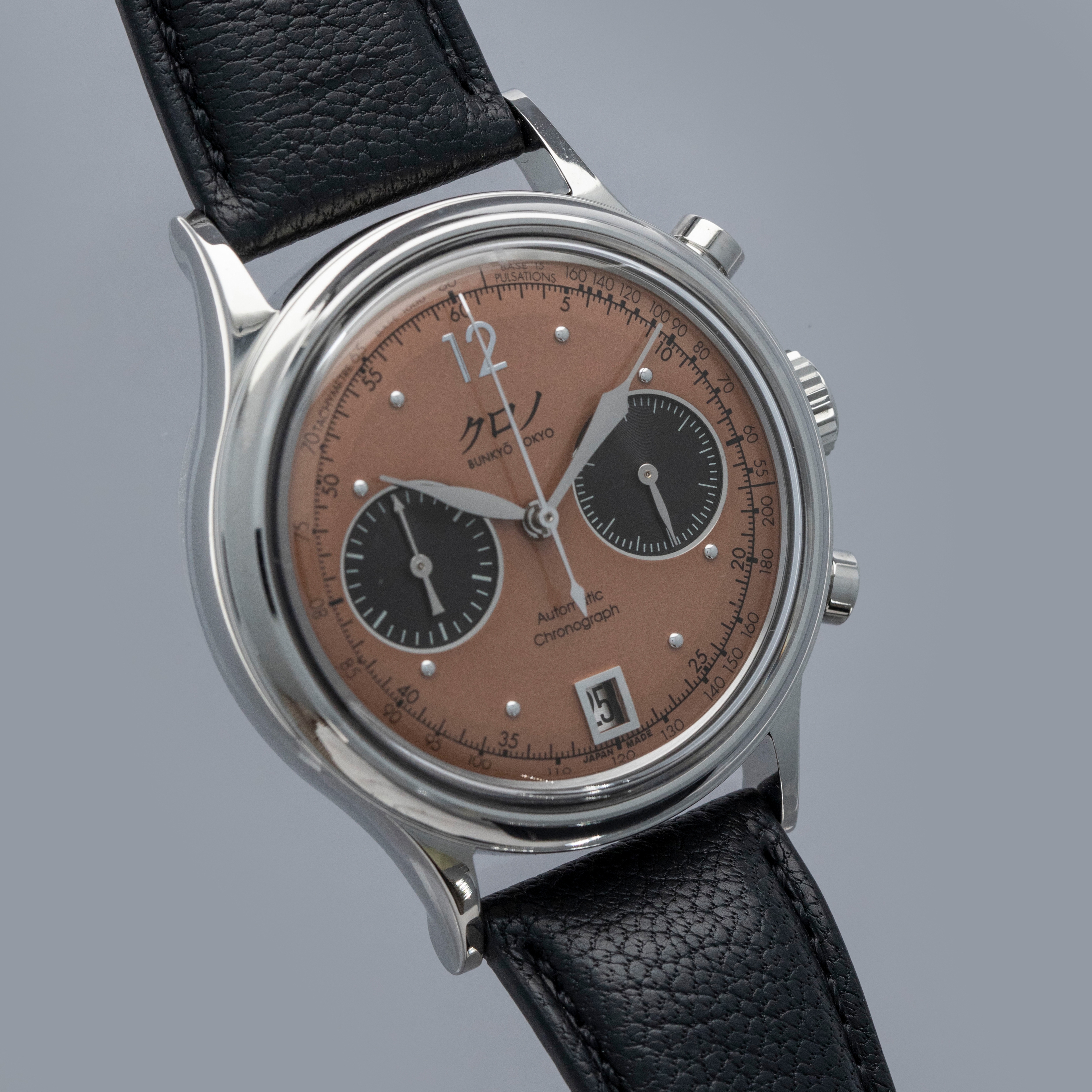 Founded in 2018 as a means for legendary Japanese watchmaker Hajime Asaoka to create serial production pieces, Kurono Tokyo stands as one of the most exciting microbrands in today's watchmaking industry. With Hajime's reputation as an exceptional watchmaker secured from decades of recognition for designing one-off timepieces in close collaboration with his clients, it was never in doubt that his serial production brand would take off. Launched in 2020 as a very real testament to that success, the Chronograph 1 was, as its name suggests, the brand's first chronograph model. Designed with art deco stylistic inspiration and Kurono's own standout details in mind, the Chronograph 1 was an immediate hit. Debuting with three dial variants, black on white (panda), white on black (reverse panda), and the "CHRONO Tokyo" dial, which was made exclusively for the Japanese market, it was later expanded upon with the Mark 2 in 2022 that we have here with a salmon dial that features black subdials and lacking the inscriptions and minute tracks that featured on the previous variants, for a cleaner uninterrupted look.