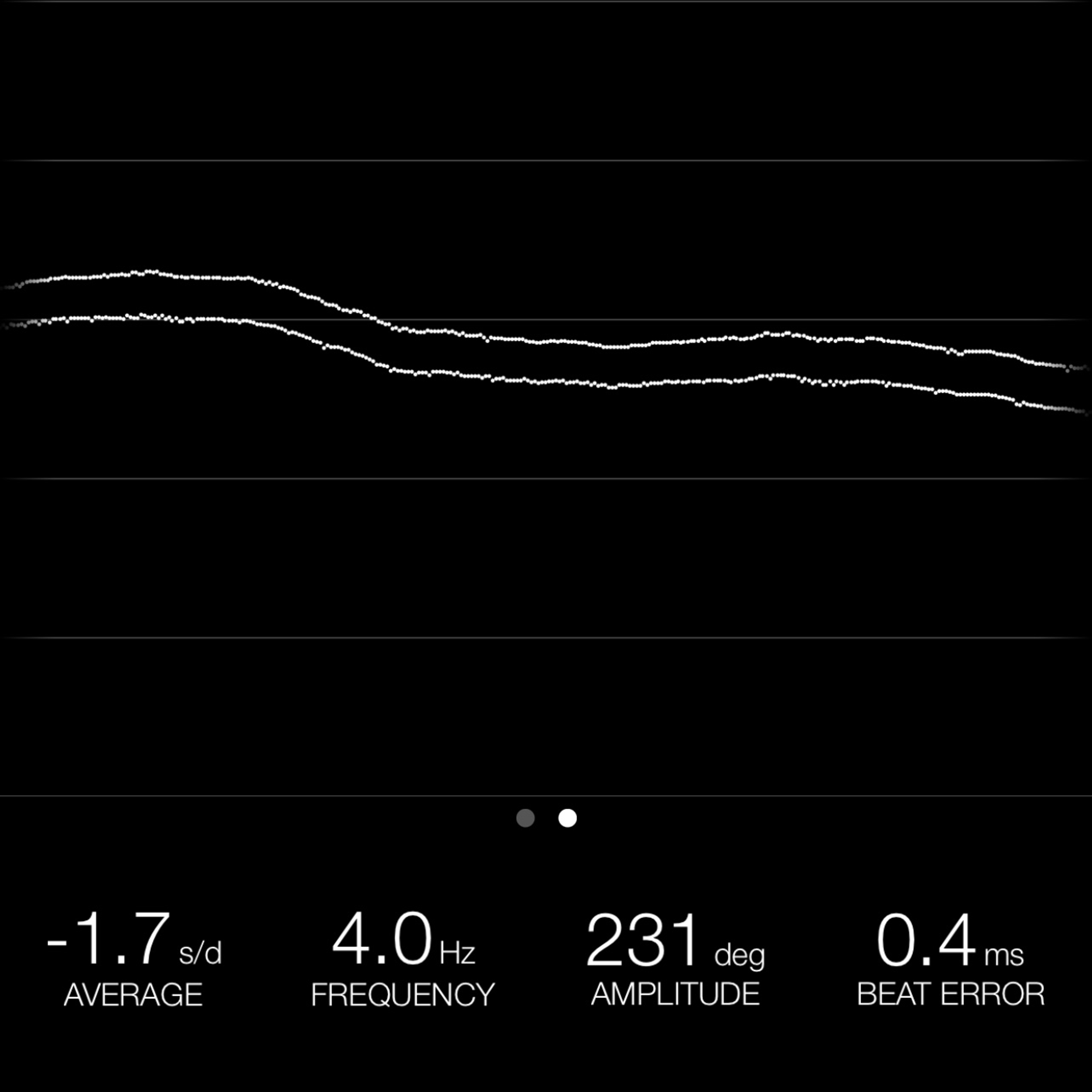 This reading was taken (crown down) with a ONEOF Accuracy Boutique Edition timing machine at time of cataloging. It is provided as a courtesy only, and shall not be construed as a warranty or guarantee of any kind. Please refer to our terms and conditions of sale for more information.