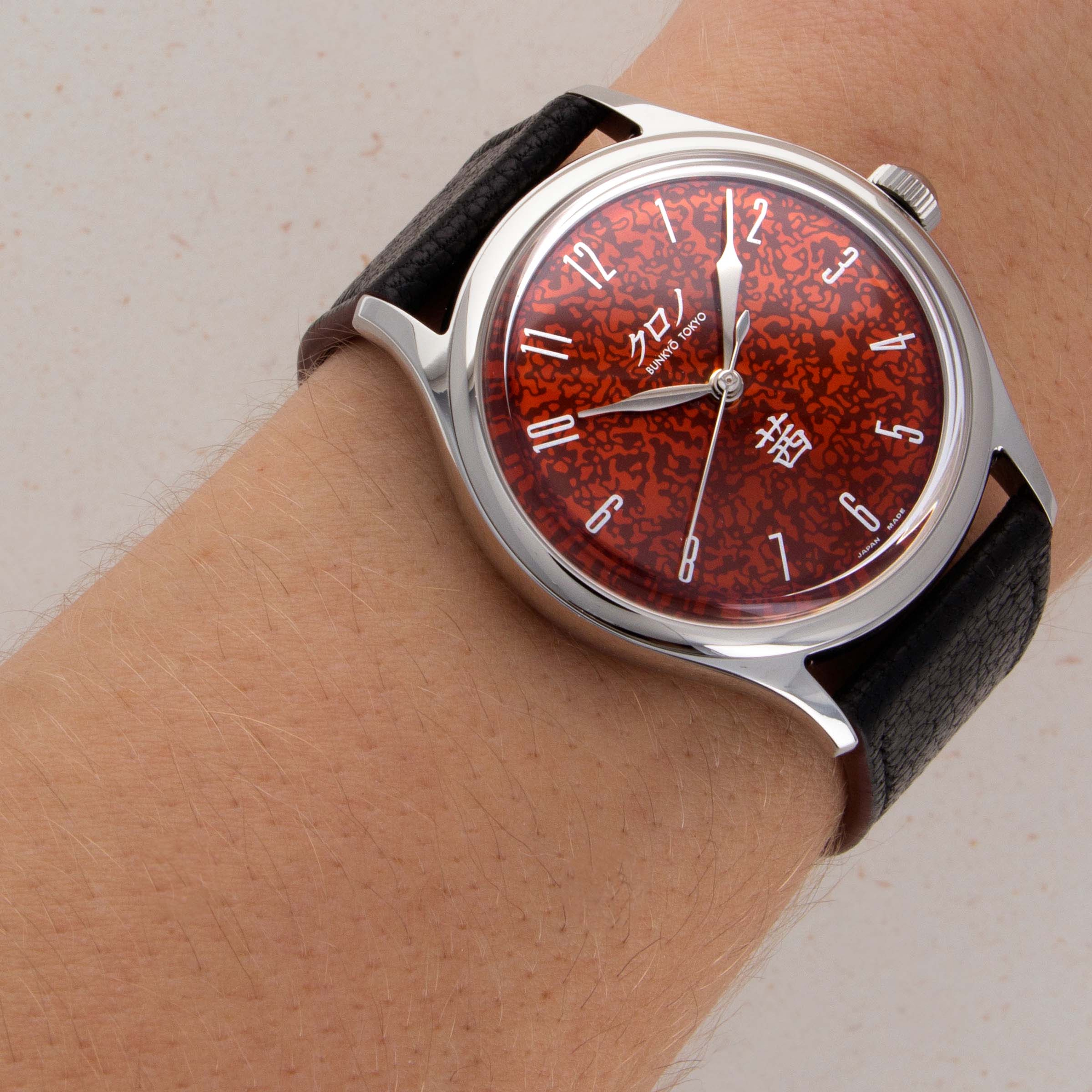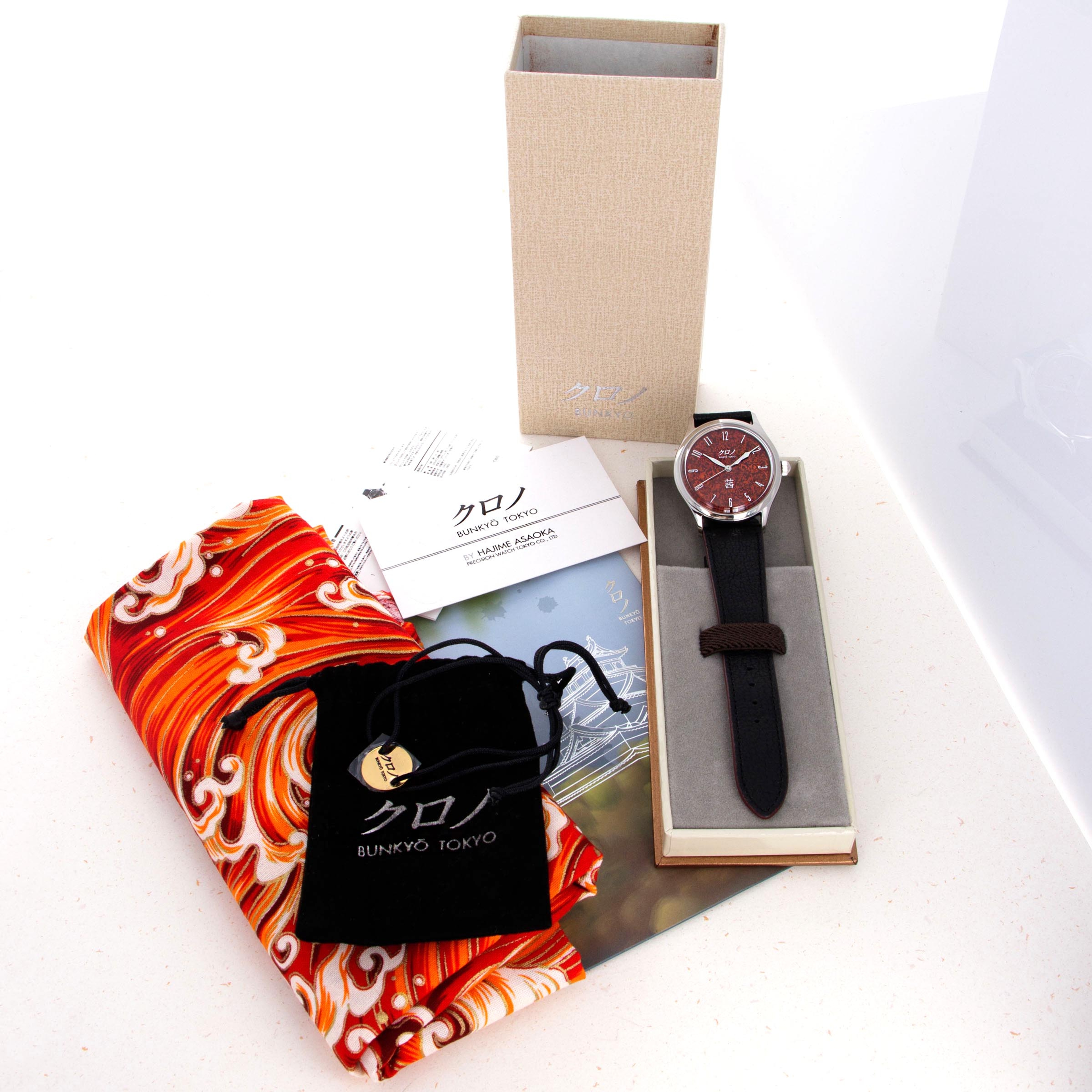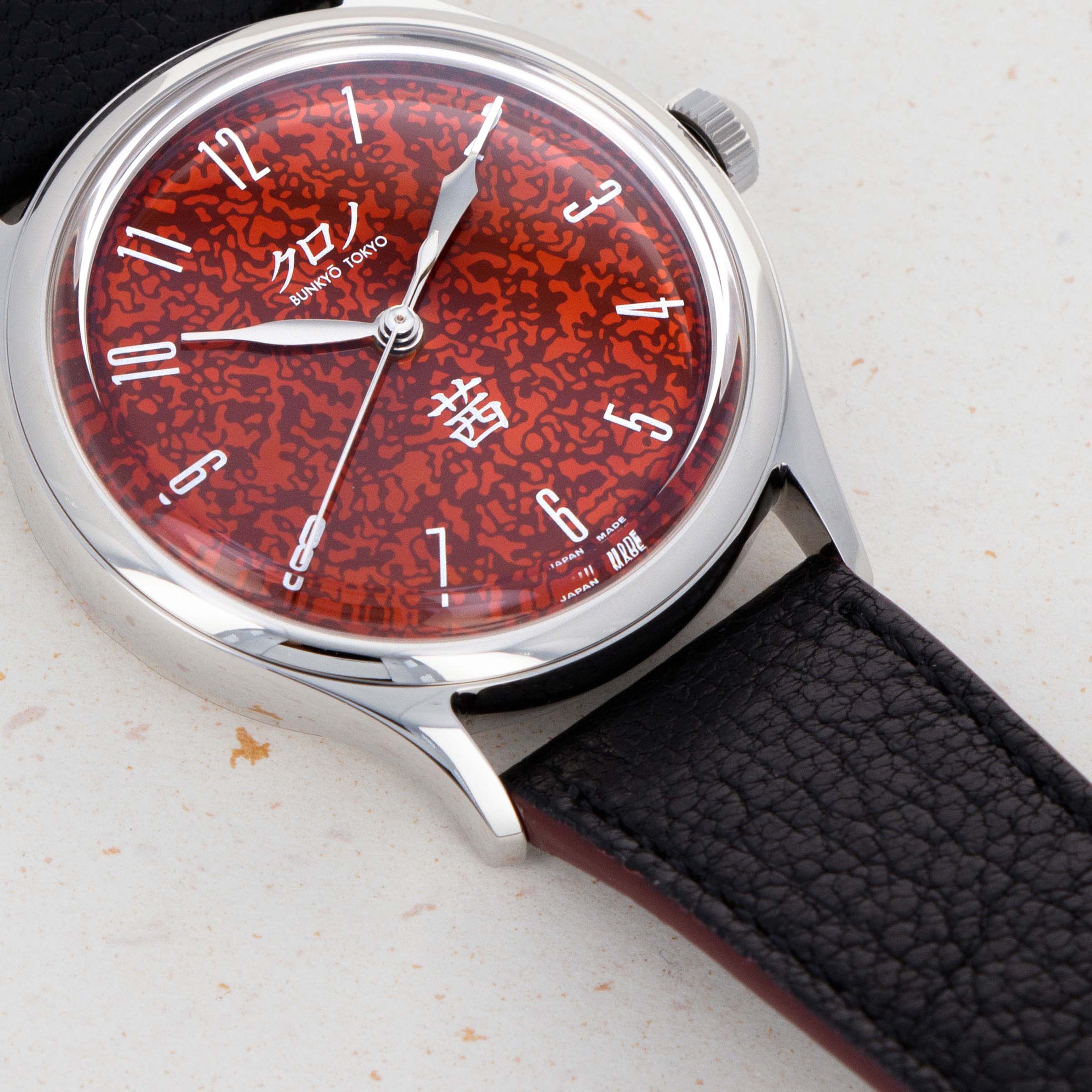 Founded in 2018 as a means for legendary Japanese watchmaker Hajime Asaoka to create serial production pieces, Kurono Tokyo stands as one of the most exciting microbrands in today's watchmaking industry. With Hajime's reputation as an exceptional watchmaker secured from decades of recognition for designing one-off timepieces in close collaboration with his clients, it was never in doubt that his serial production brand would take off. Launched in December 2020, the Grand Akane was debuted as Kurono Tokyo’s first artisanal-level timepiece. Featuring a 37mm stainless steel case with an entirely polished surface, where the Grand Akane really stands out from the rest of Kurono Tokyo’s offerings is its incredible Urushi dial. Featuring a ‘Hamon,’ or blade pattern, that is finished with the traditional Japanese chemical treatment before being sealed with an additional layer of suki-urushi (transparent lacquer), the Grand Akane’s dial sports an incredible fiery red and orange color that can completely change depending on the source and strength of the light beating down on it. With just 200 pieces produced, the Grand Akane is simultaneously one of Kurono Tokyo’s rarest and most sought-after timepieces.
