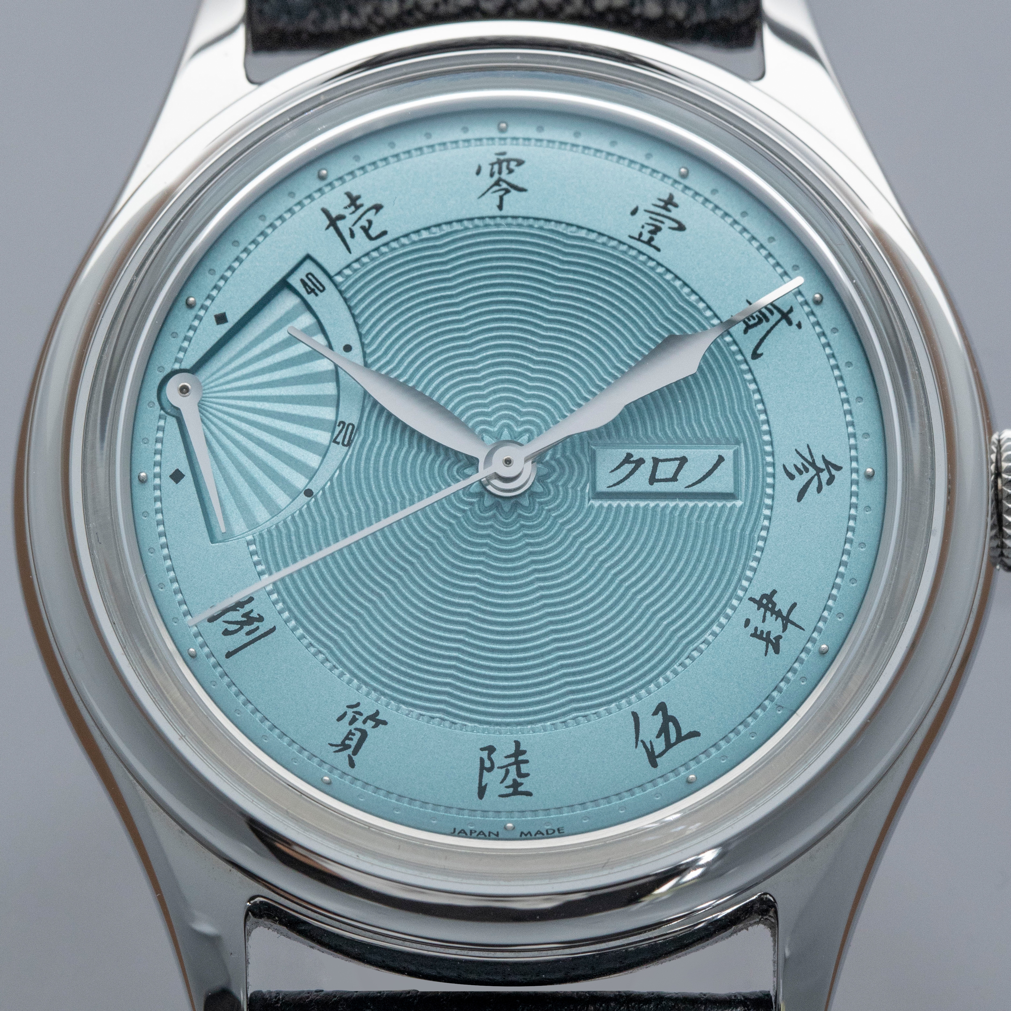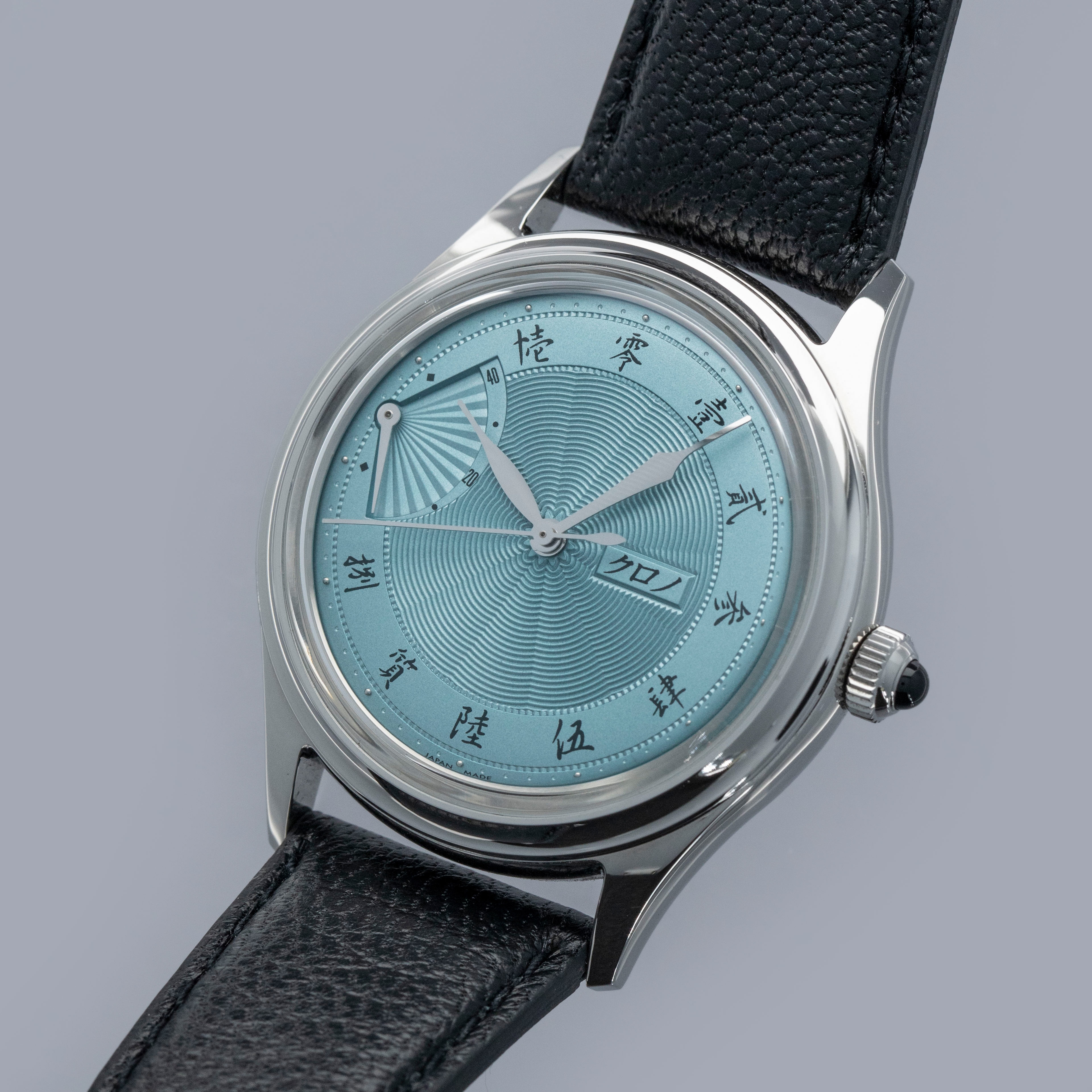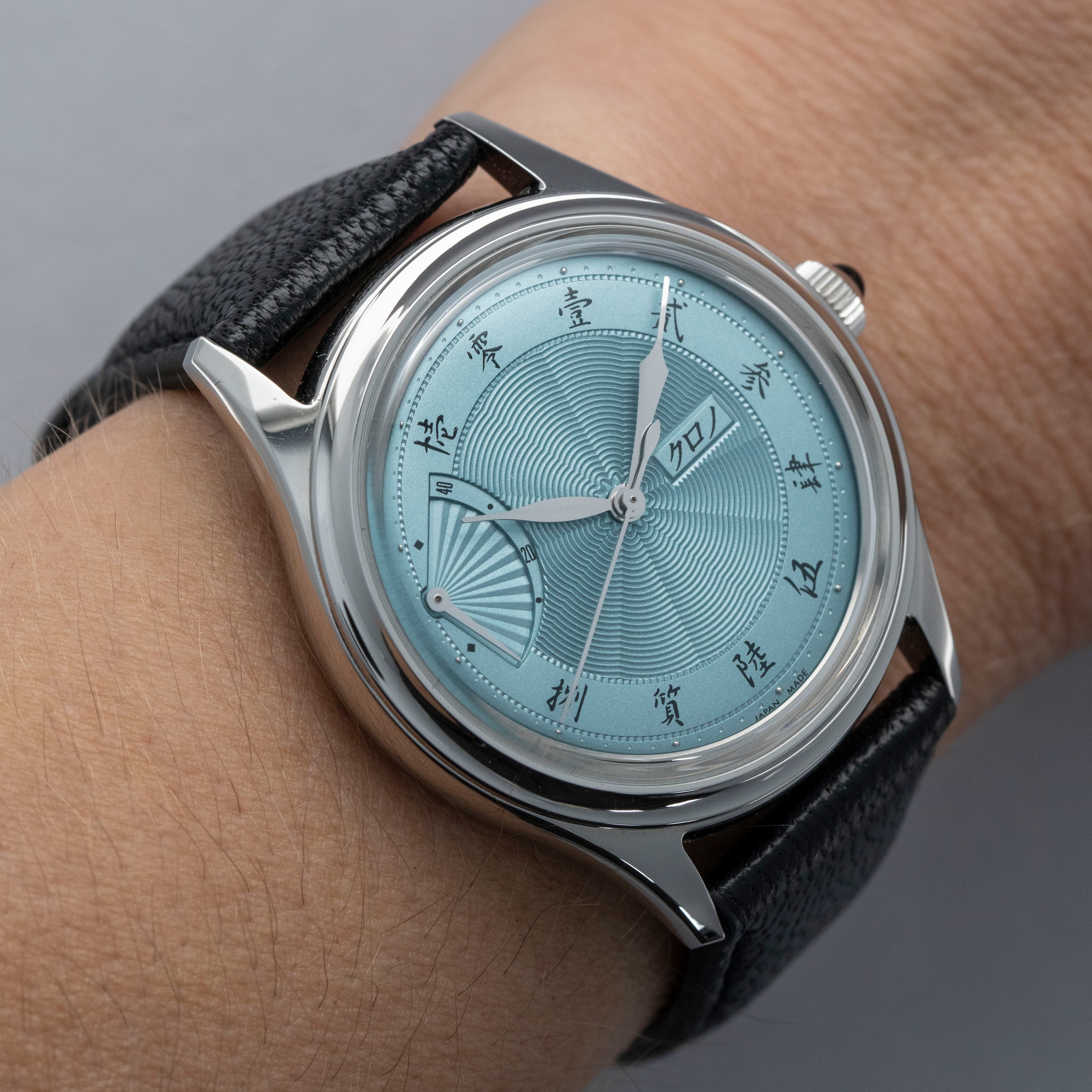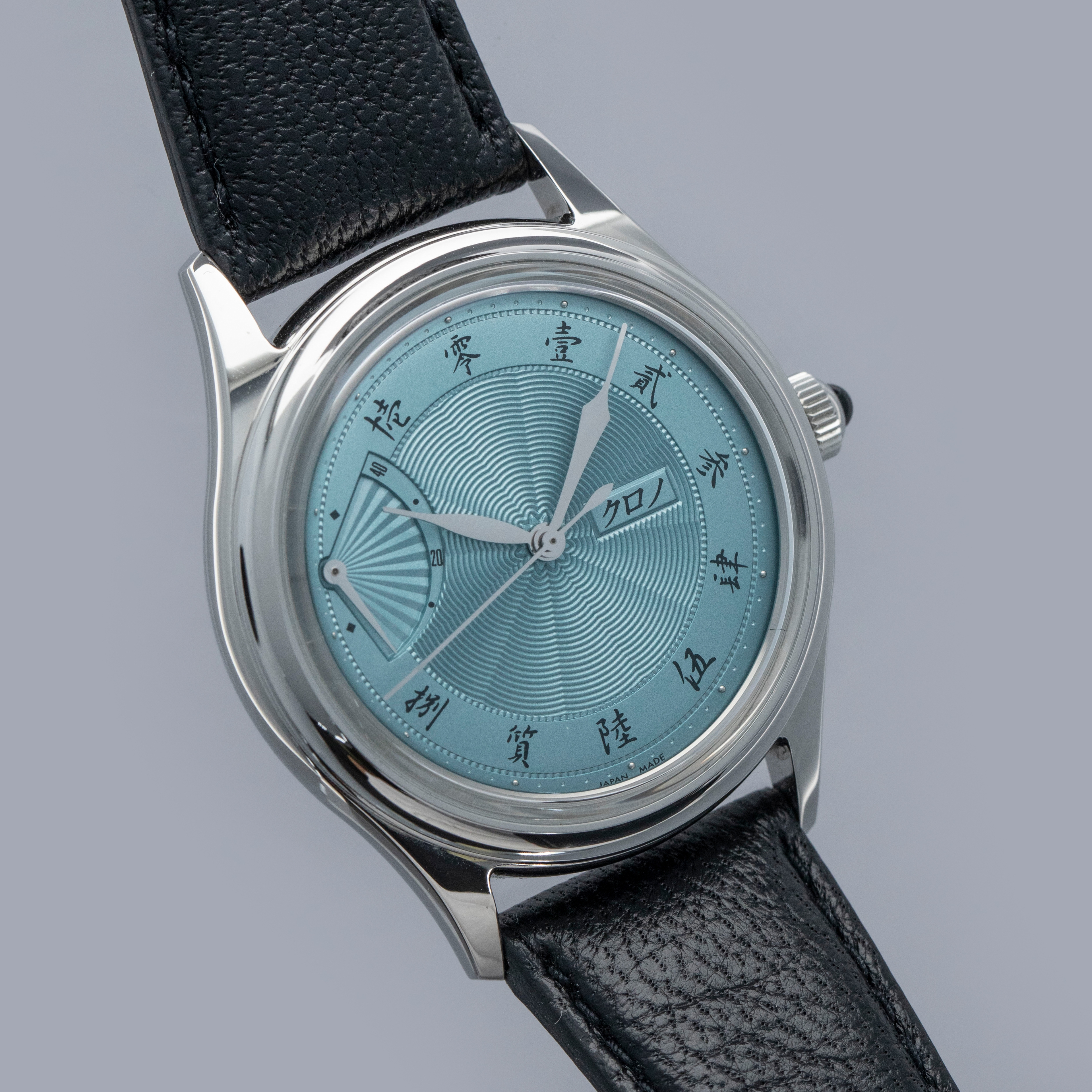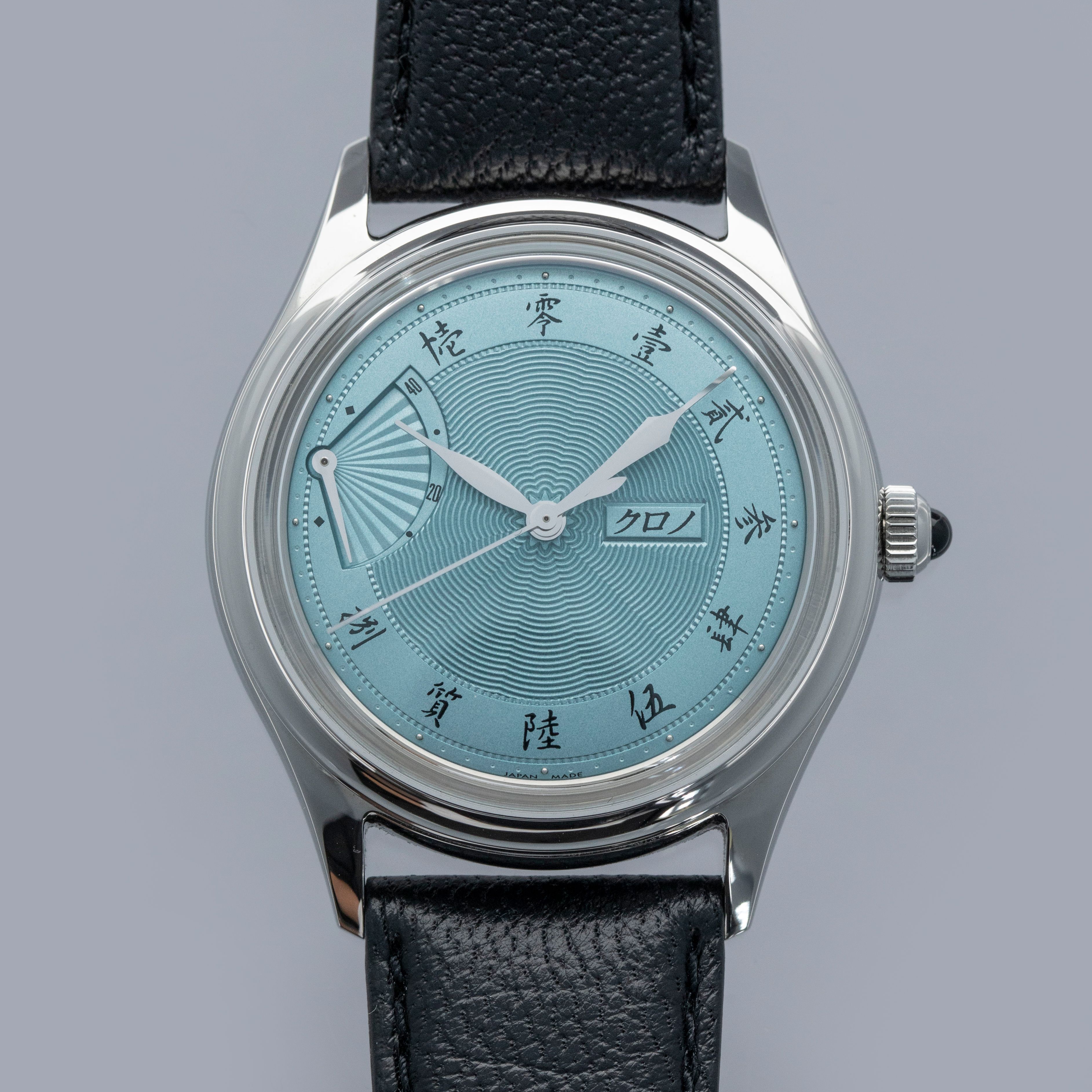 Celebrating Asaoka's 60th diamond jubilee and powered by end-of-life movements, the Jubileee Sensu is a special watch inside and out, as highlighted by its stunning ice blue dial and wonderful onyx cabochon.