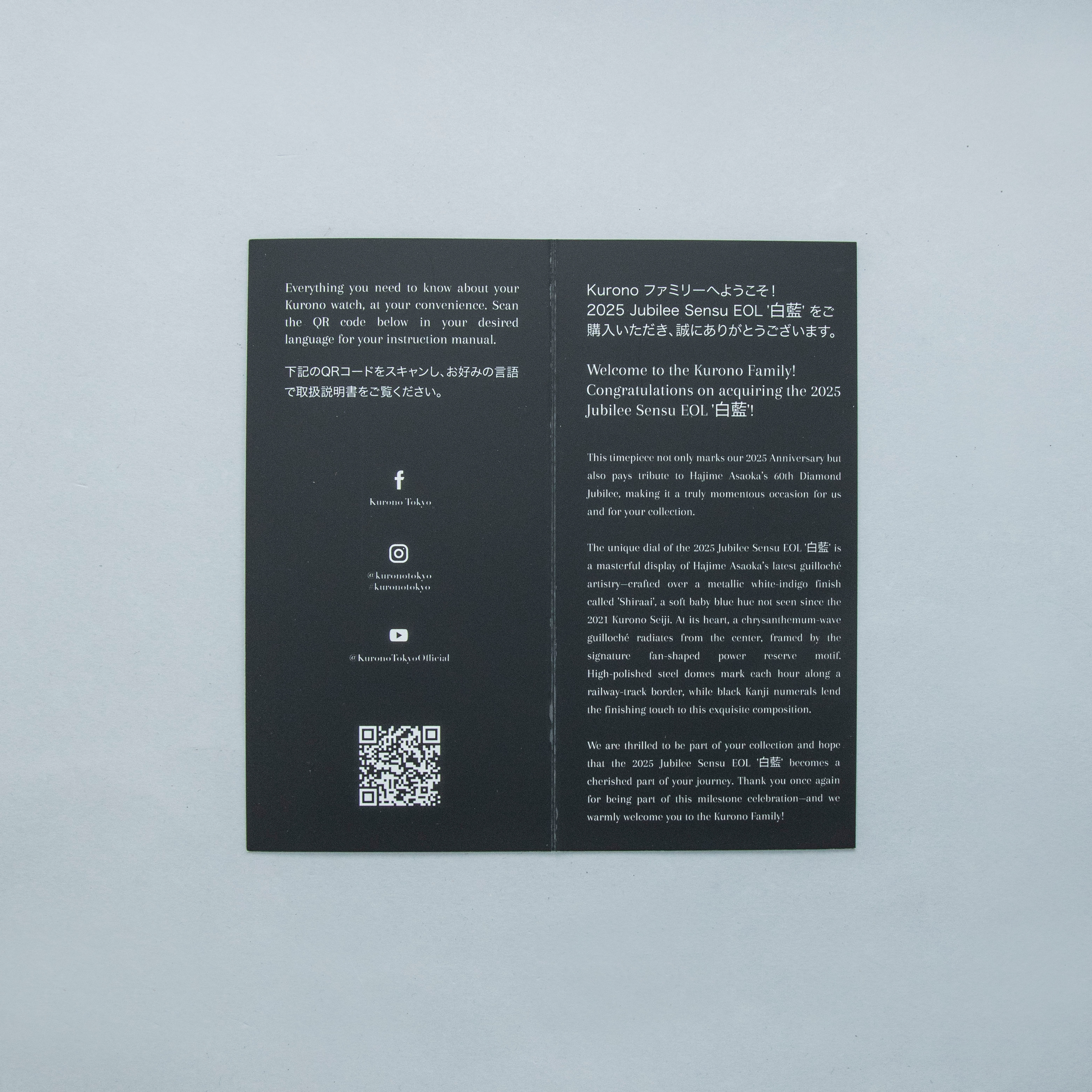Founded in 2019 as a means for legendary Japanese watchmaker Hajime Asaoka to create serial production pieces, Kurono Tokyo stands as one of the most exciting microbrands in today's watchmaking industry. With his reputation as an exceptional watchmaker secured from decades of recognition, Hajime Asaoka was famed for designing once-off timepieces in close collaboration with his clients. However, with demand growing fast, he decided to launch his own microbrand and create timepieces that would cater to those that wanted affordable watches that feature his stunning design language at a fraction of the cost. Launched in 2025 to celebrate Asaoka’s 60th Diamond Jubilee, the model we have here is the Kurono Tokyo Jubilee Sensu EOL. Featuring a distinctly wearable 38mm stainless steel case and powered by an automatic End-of-life cal. 9133 movement that is no longer produced, this timepiece feeds into Kurono Tokyo’s ability to enable collectors to enjoy Hajime’s Japanese-inspired design language with far fewer roadblocks than his typical one-off pieces that he earned his reputation with. Boasting a bright metallic blue colour named '白藍' (Shiraai), the Jubilee Sensu's display combines its color with a chrysanthemum-like wave guilloché pattern radiating outward from the centre of the dial with the iconic 'Sensu' (Japanese folding fan) guilloché at the power-reserve indicator to create something truly special on the wrist.