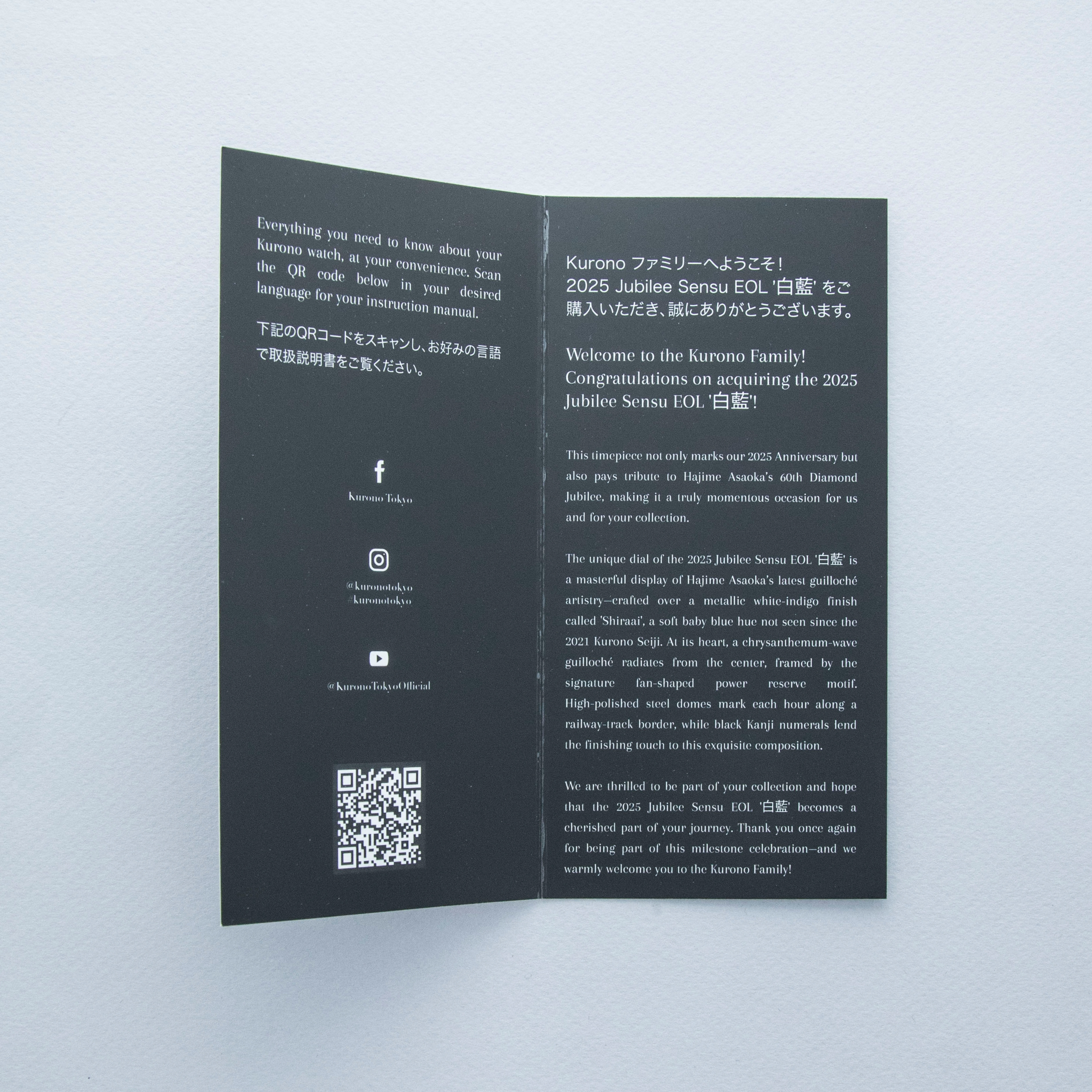 Founded in 2019 as a means for legendary Japanese watchmaker Hajime Asaoka to create serial production pieces, Kurono Tokyo stands as one of the most exciting microbrands in today's watchmaking industry. With his reputation as an exceptional watchmaker secured from decades of recognition, Hajime Asaoka was famed for designing once-off timepieces in close collaboration with his clients. However, with demand growing fast, he decided to launch his own microbrand and create timepieces that would cater to those that wanted affordable watches that feature his stunning design language at a fraction of the cost. Launched in 2025 to celebrate Asaoka’s 60th Diamond Jubilee, the model we have here is the Kurono Tokyo Jubilee Sensu EOL. Featuring a distinctly wearable 38mm stainless steel case and powered by an automatic End-of-life cal. 9133 movement that is no longer produced, this timepiece feeds into Kurono Tokyo’s ability to enable collectors to enjoy Hajime’s Japanese-inspired design language with far fewer roadblocks than his typical one-off pieces that he earned his reputation with. Boasting a bright metallic blue colour named '白藍' (Shiraai), the Jubilee Sensu's display combines its color with a chrysanthemum-like wave guilloché pattern radiating outward from the centre of the dial with the iconic 'Sensu' (Japanese folding fan) guilloché at the power-reserve indicator to create something truly special on the wrist.