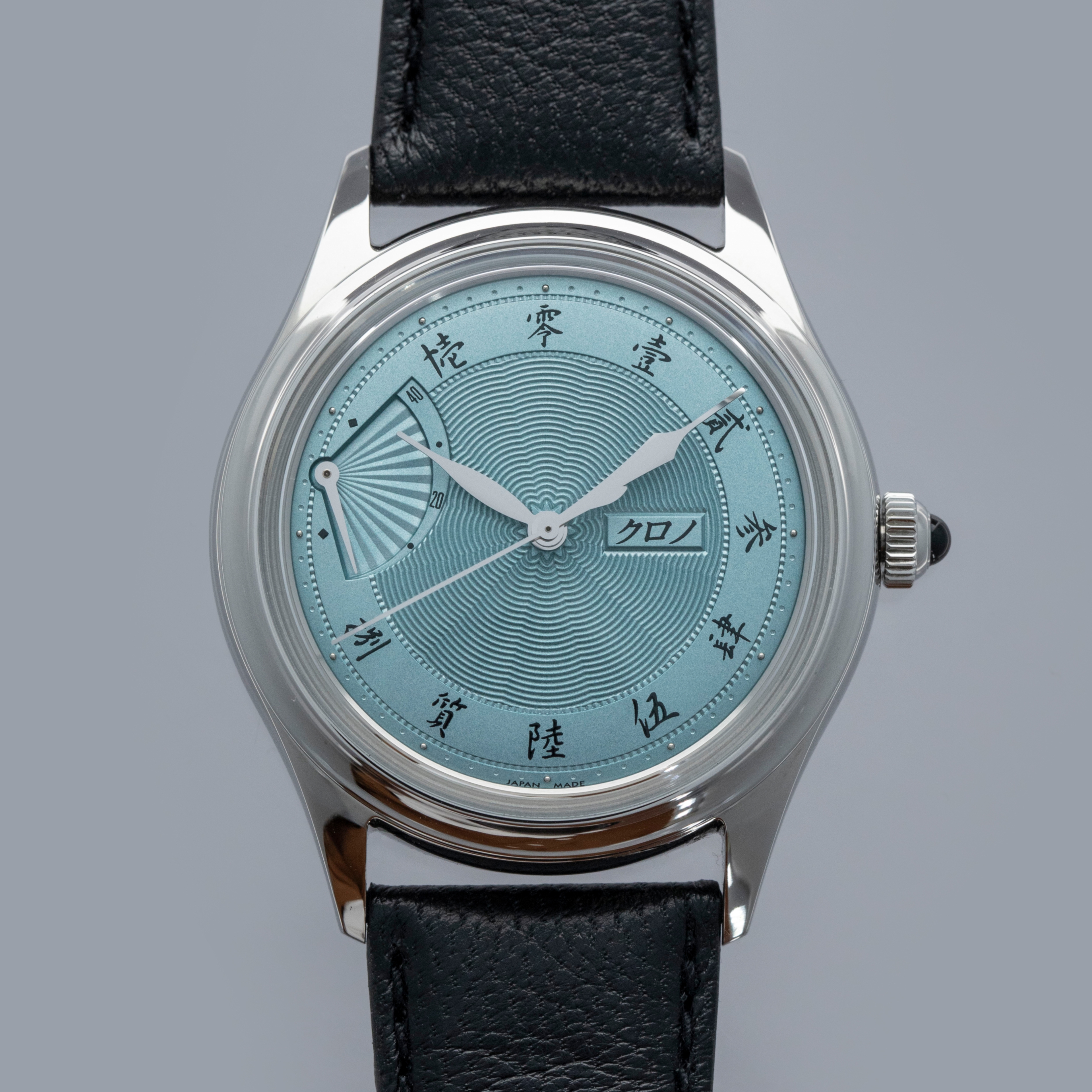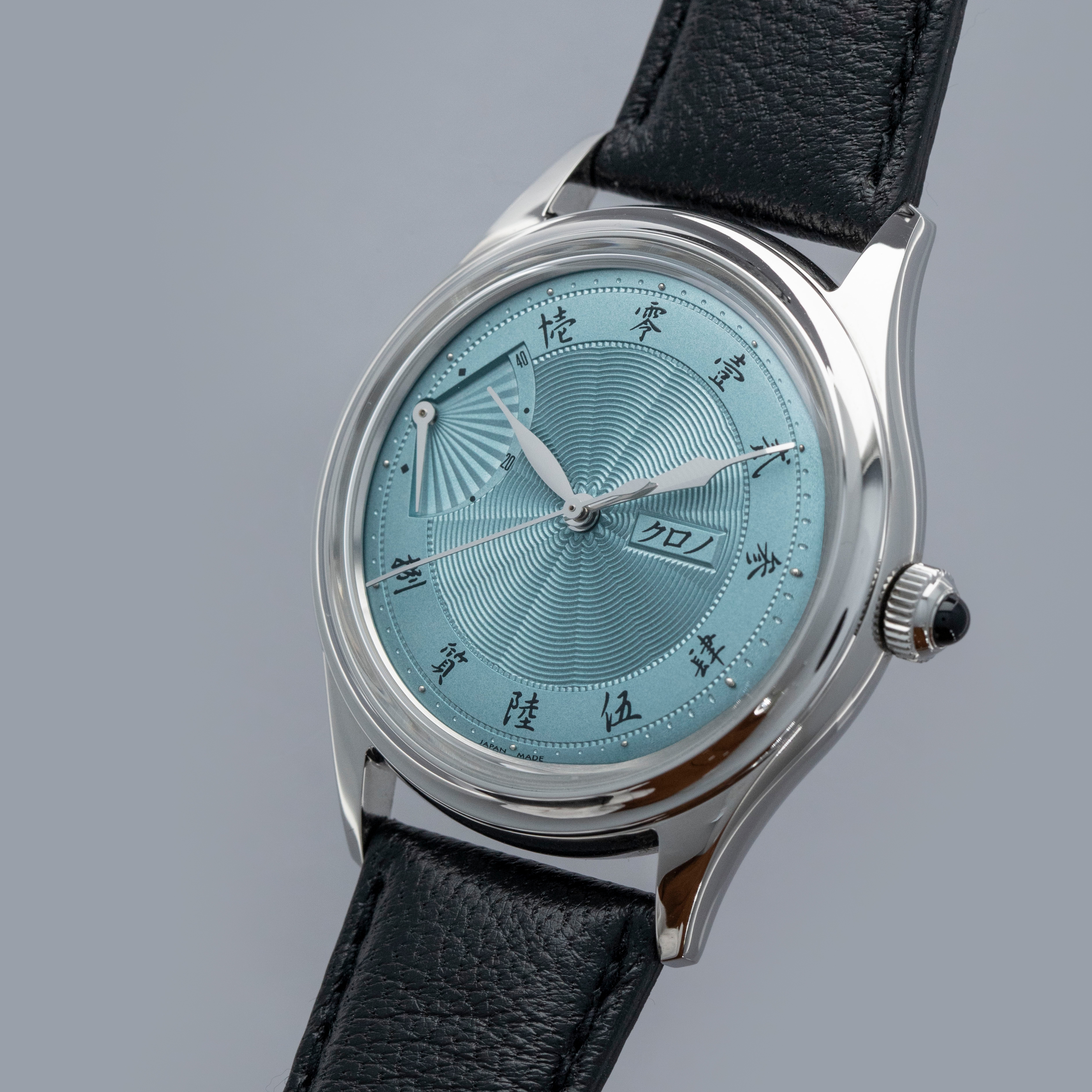 Celebrating Asaoka's 60th diamond jubilee and powered by end-of-life movements, the Jubileee Sensu is a special watch inside and out, as highlighted by its stunning ice blue dial and wonderful onyx cabochon.