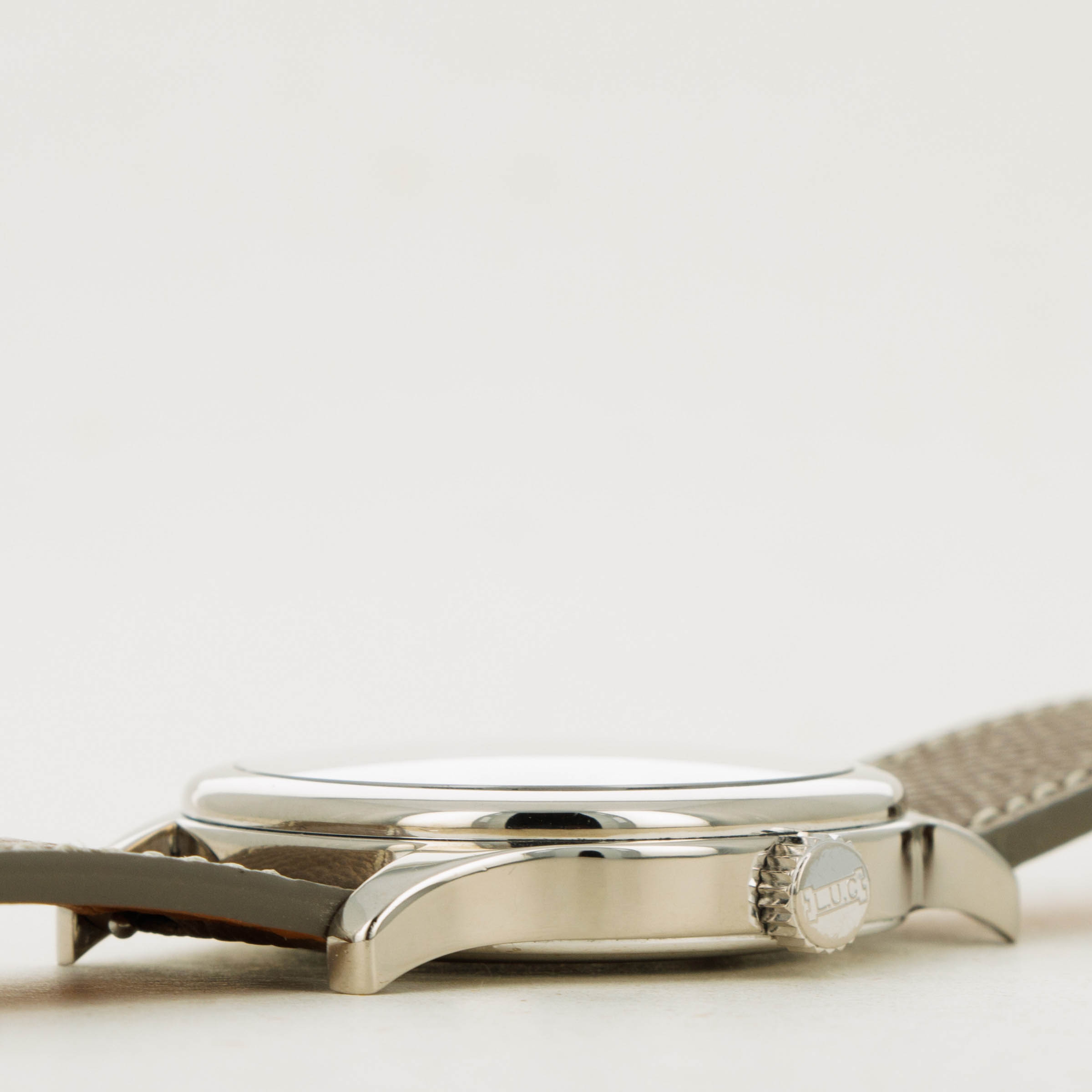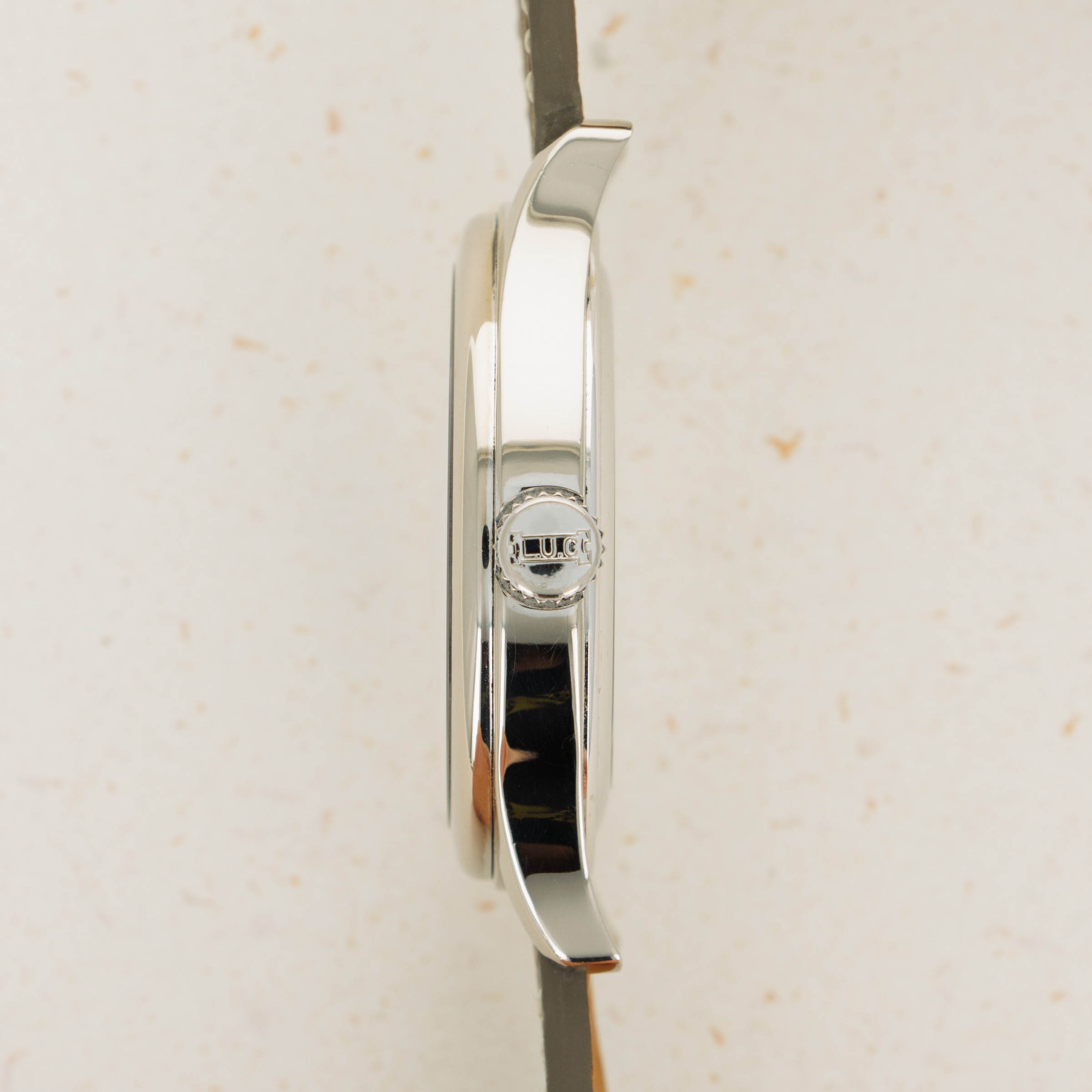 Measuring 38mm in diameter, the L.U.C. GMT is a wonderfully wearable timepiece with classical details in its stepped domed bezel, swooping lugs and hefty 18kt gold construction.
