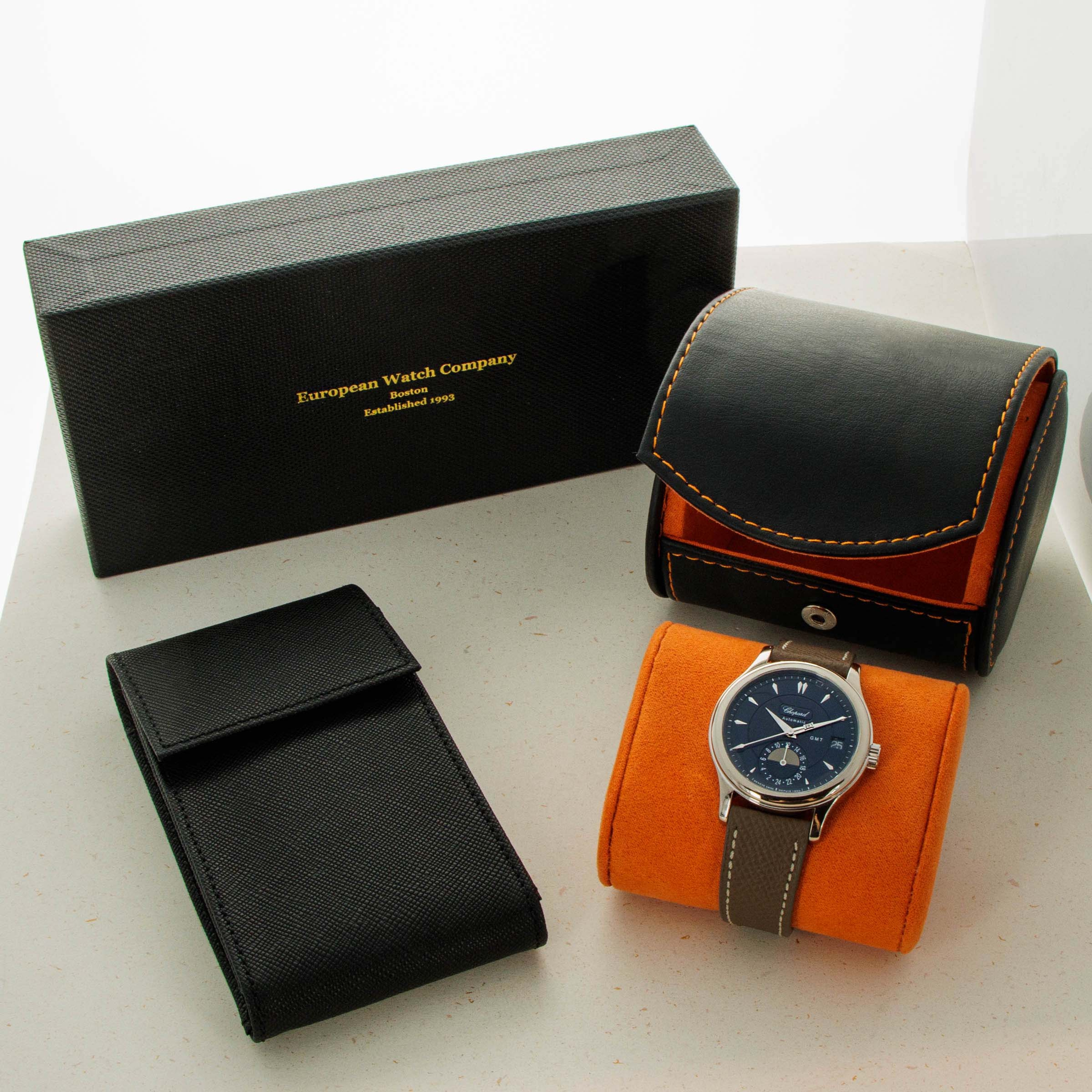 Watch with generic box and travel case