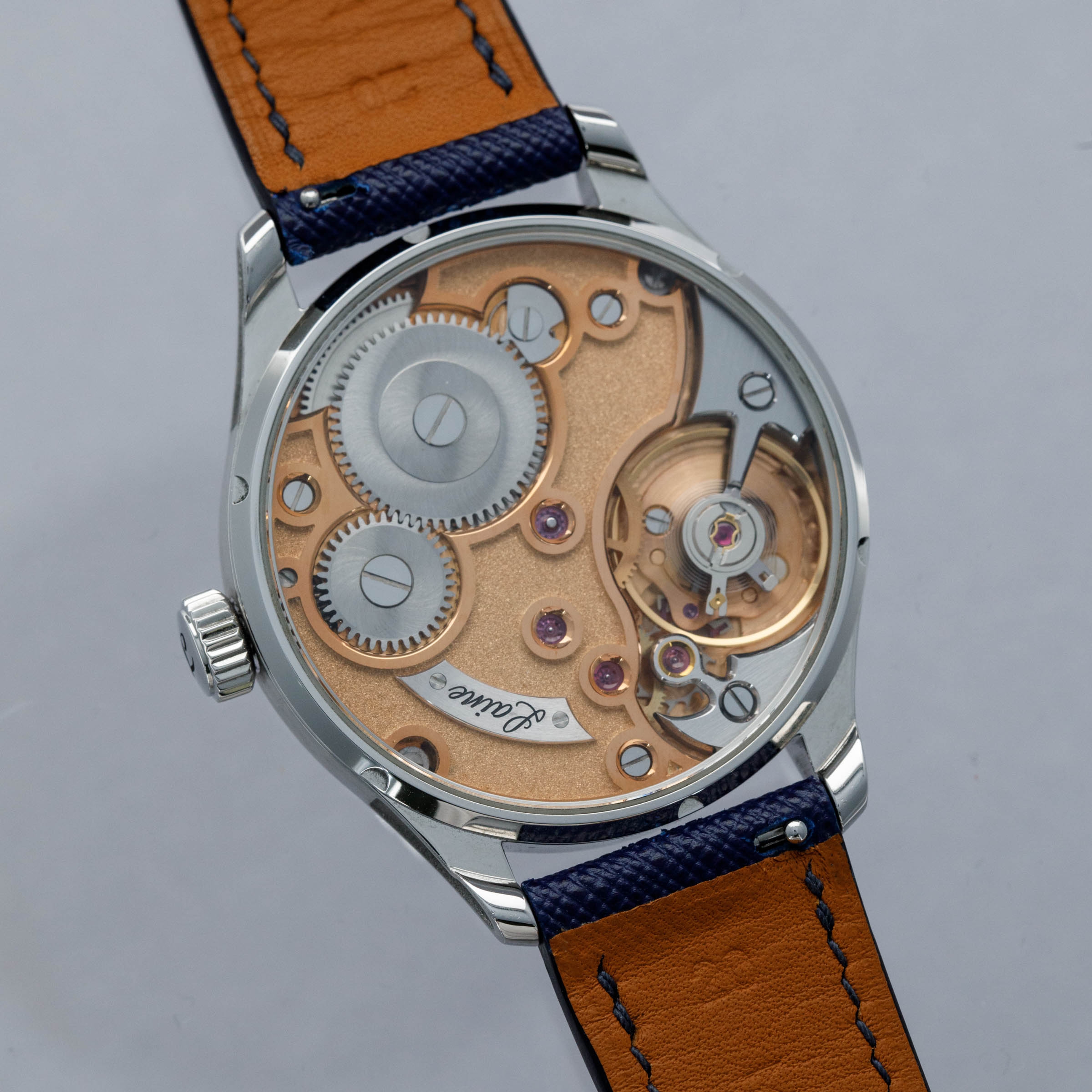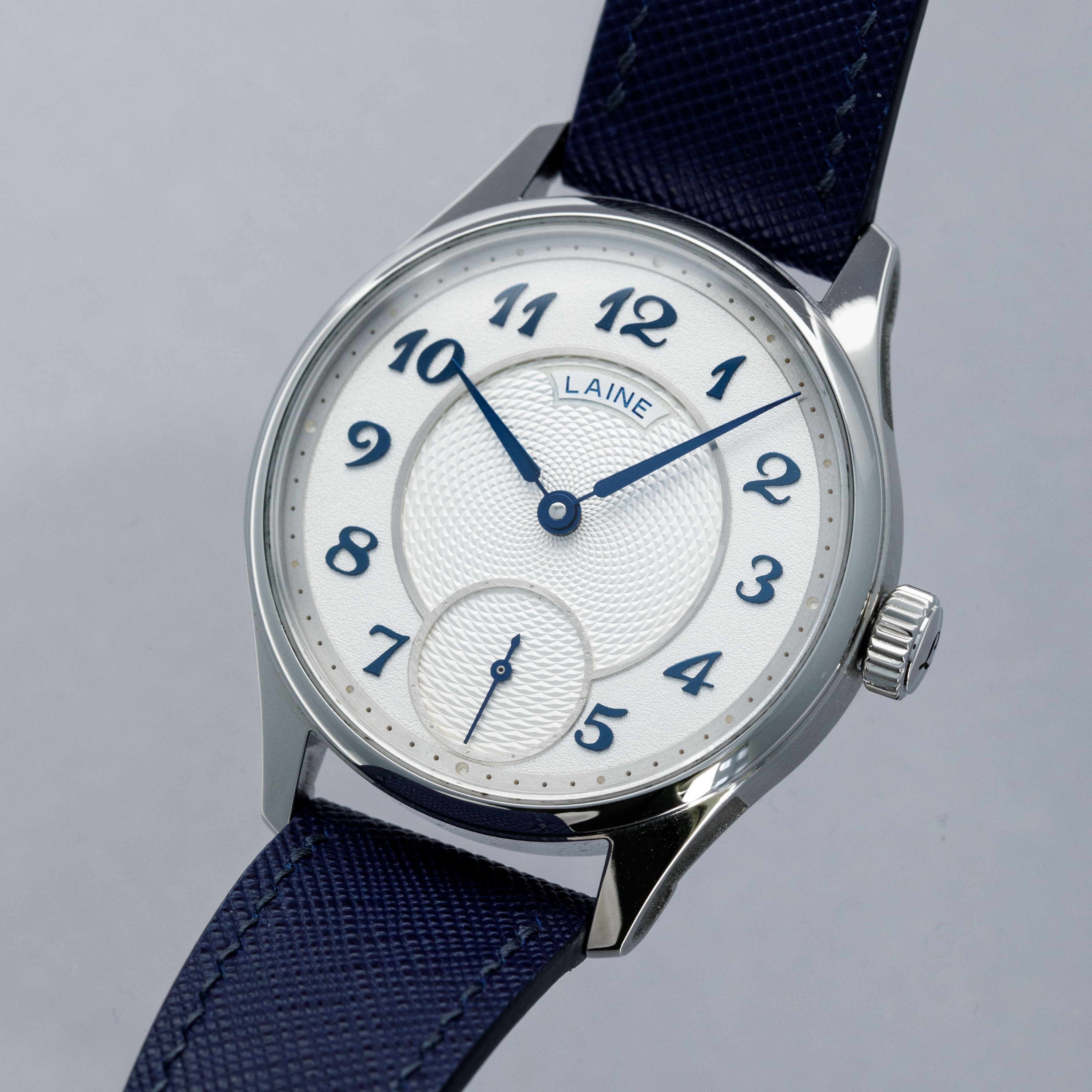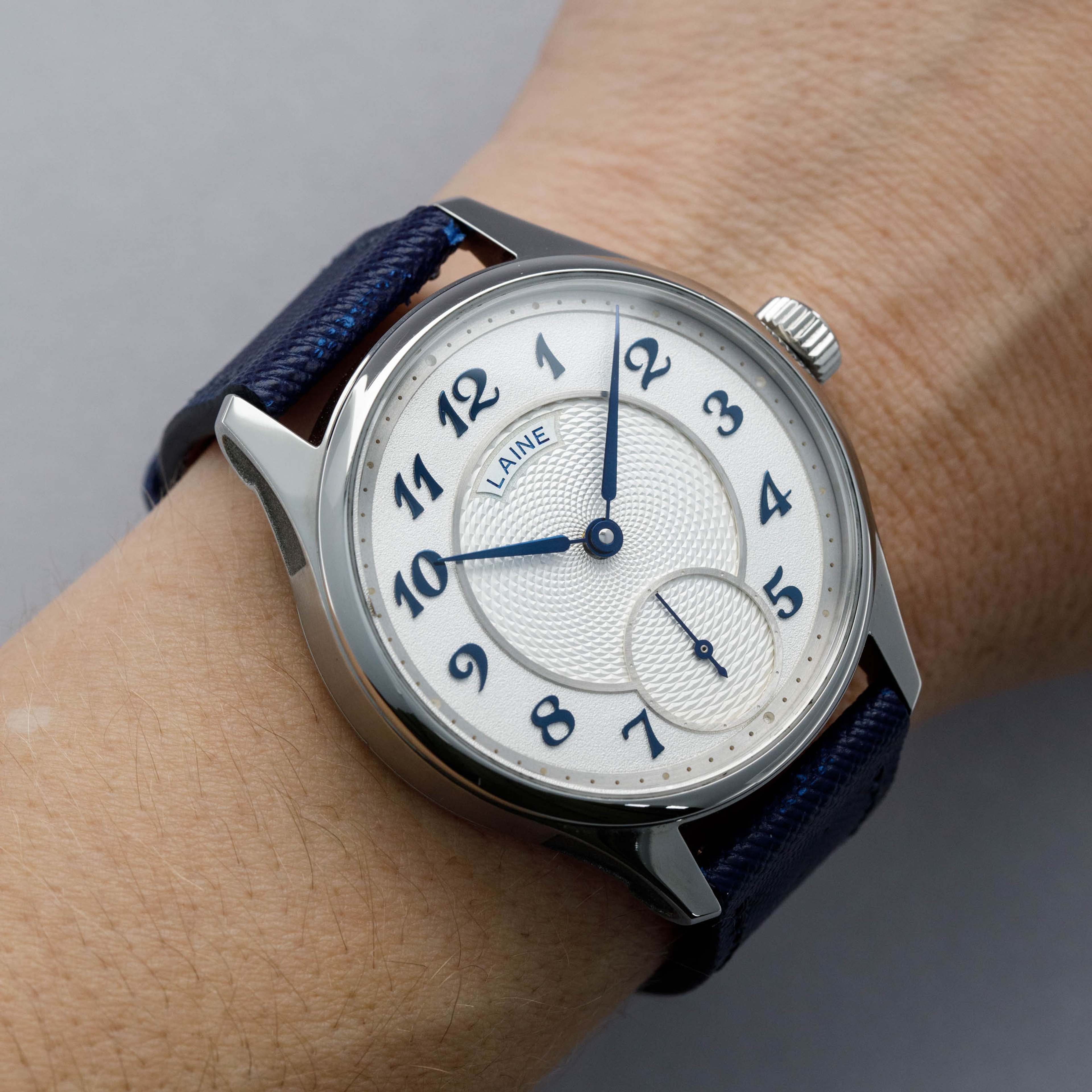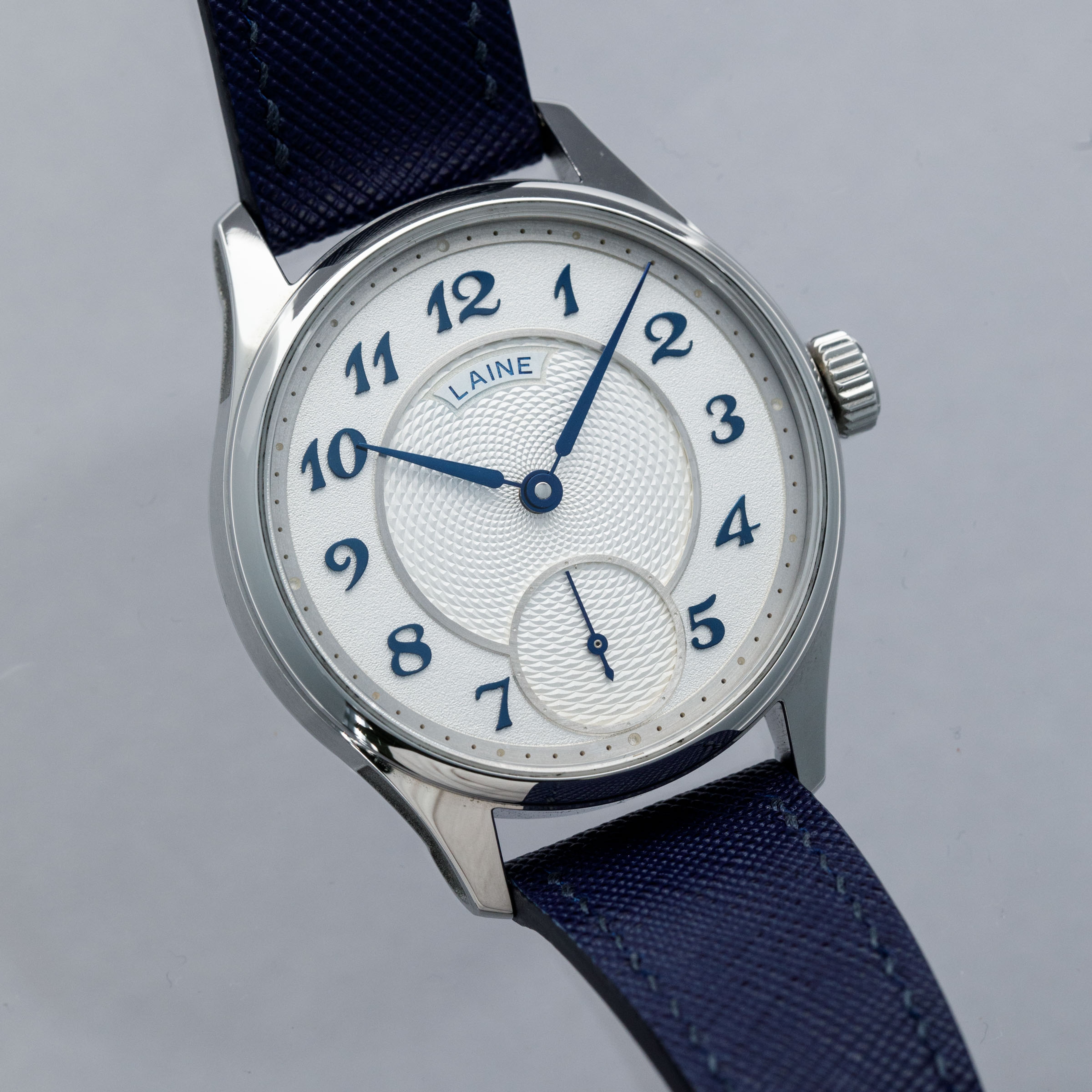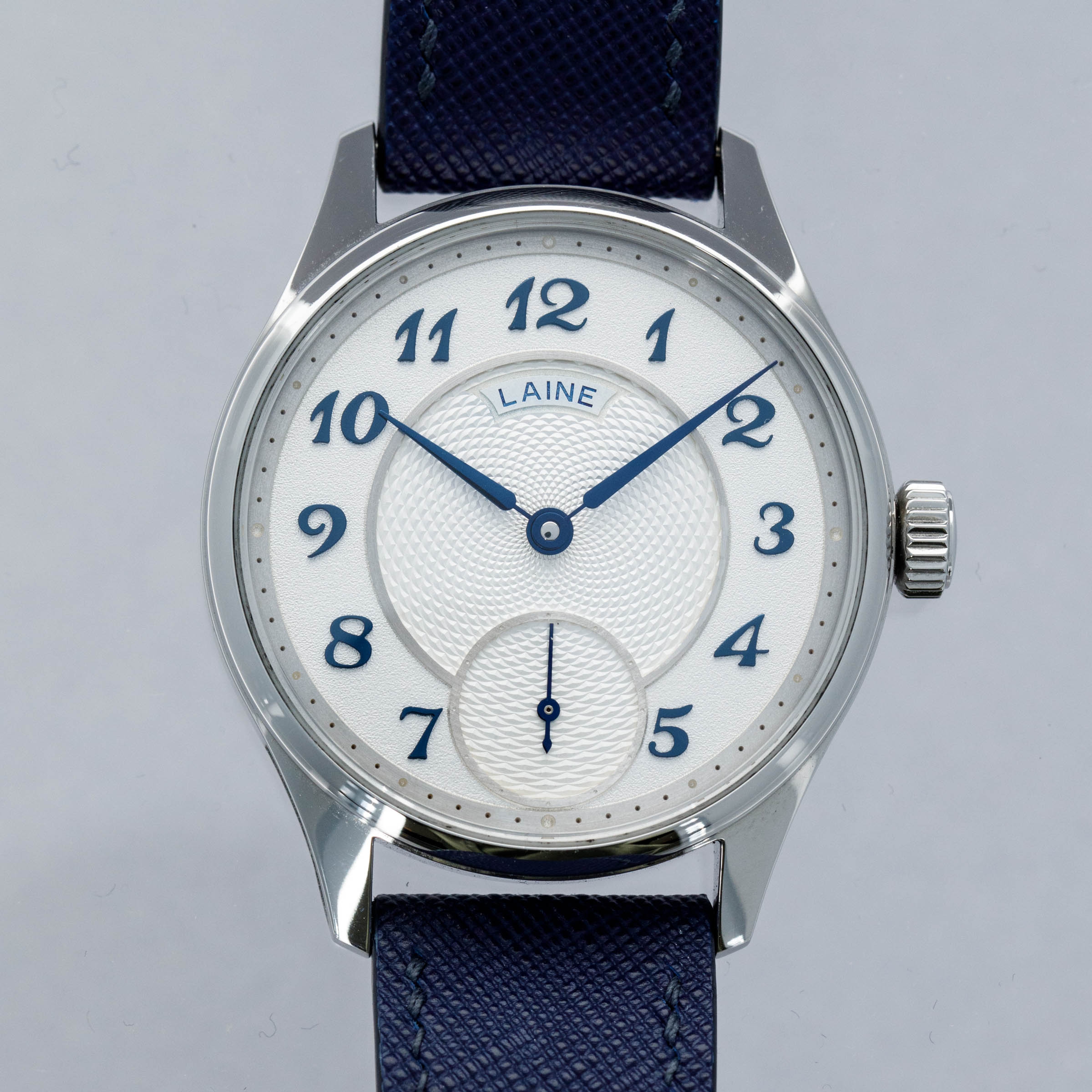 A Finnish watchmaker based in Le Locle, Torsti Laine has made a name for himself by creating timepieces with some of the most immaculate dials in all of independent watchmaking. In 2014 he received the A. Lange & Sohne annual prize for Excellence in Watchmaking and since gone on to start his own eponymous watchmaker creating stunning classical watches with hand-finishing dials and decorations on the movements, in accordance with each client’s specific order. Launched as the next generation of the Gelidus collection, the G3 features a two-piece dial that allows the use of different materials, colors and finishing when constructing the dial. As such, the example we have here features a bright white dial with two different textures. Its center portion features Laine's "Grain de riz" engraving, and its peripheral section features their Moonfrosting texture with a silver brushed chapter ring along the periphery, blued Breguet numerals and hands, and a silver ring encircling the inner flammé portion. An immaculate expression of hand-finishing, the G3 also features a hand-finished movement with deep anglage and countersinking for its screws and rubies alongside sandblasting throughout and brightly polished mechanics. An artisanal timepiece inside and out, it is no wonder that Laine has grown to their current level of popularity with a lengthy waiting list and a deep level of appreciation within the watchmaking community.