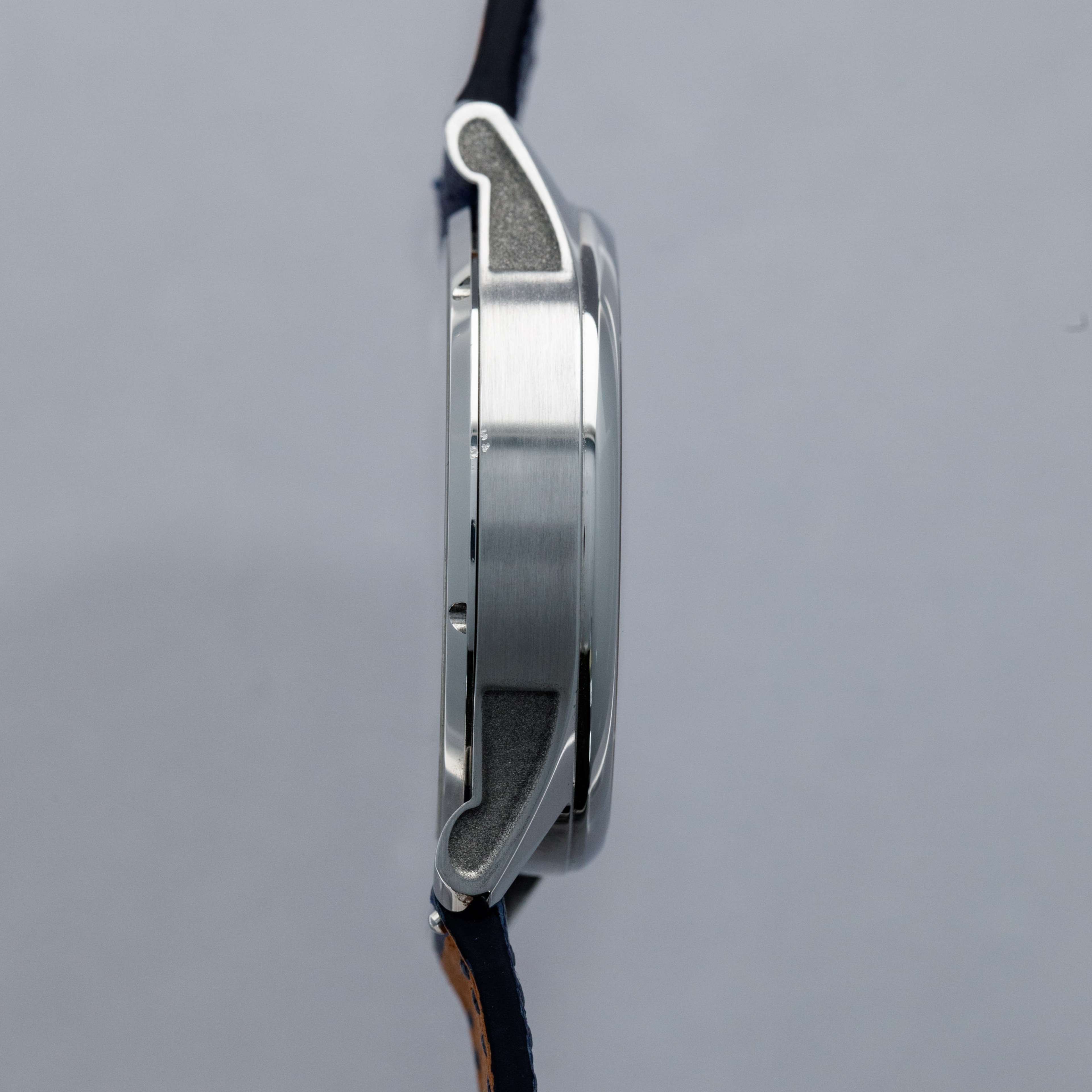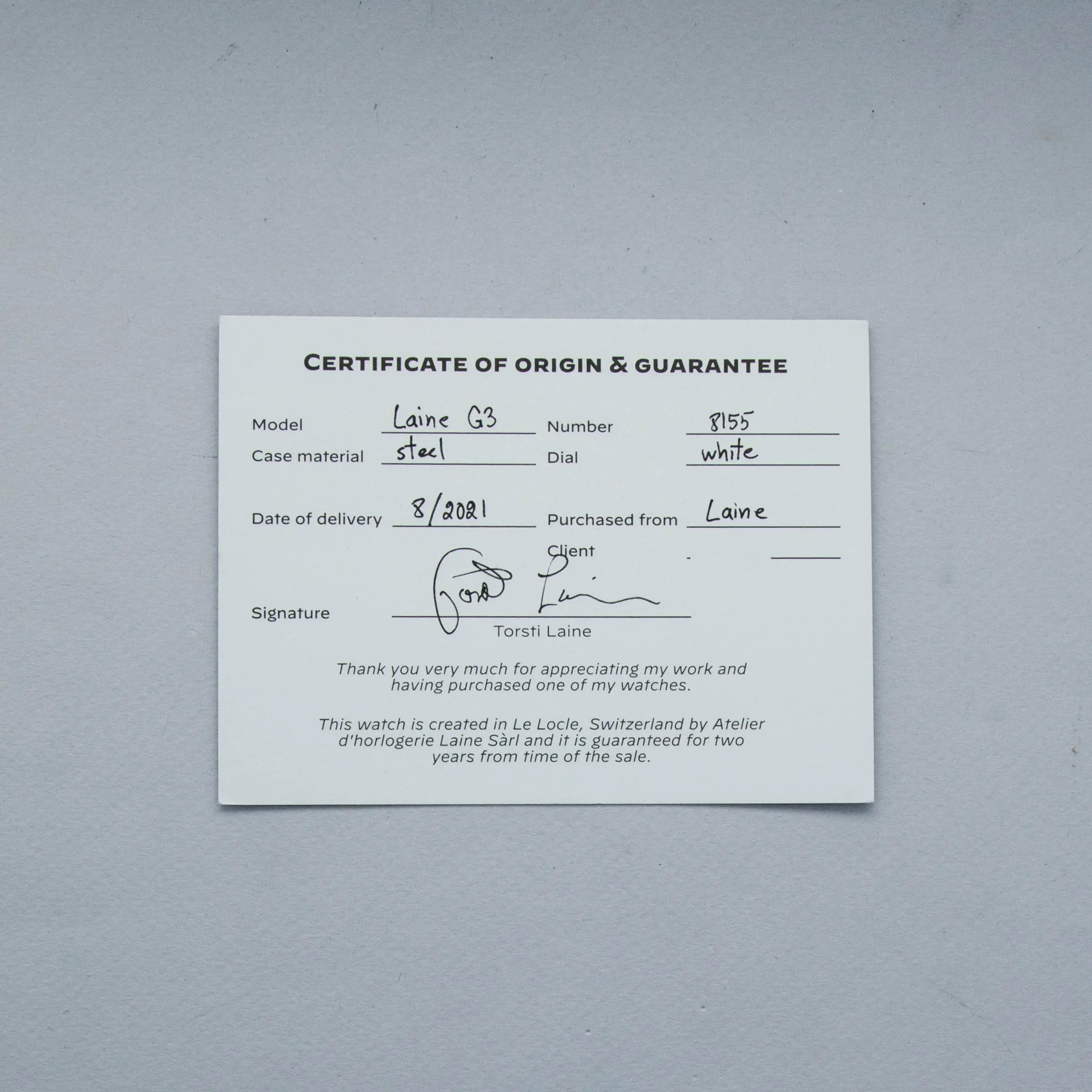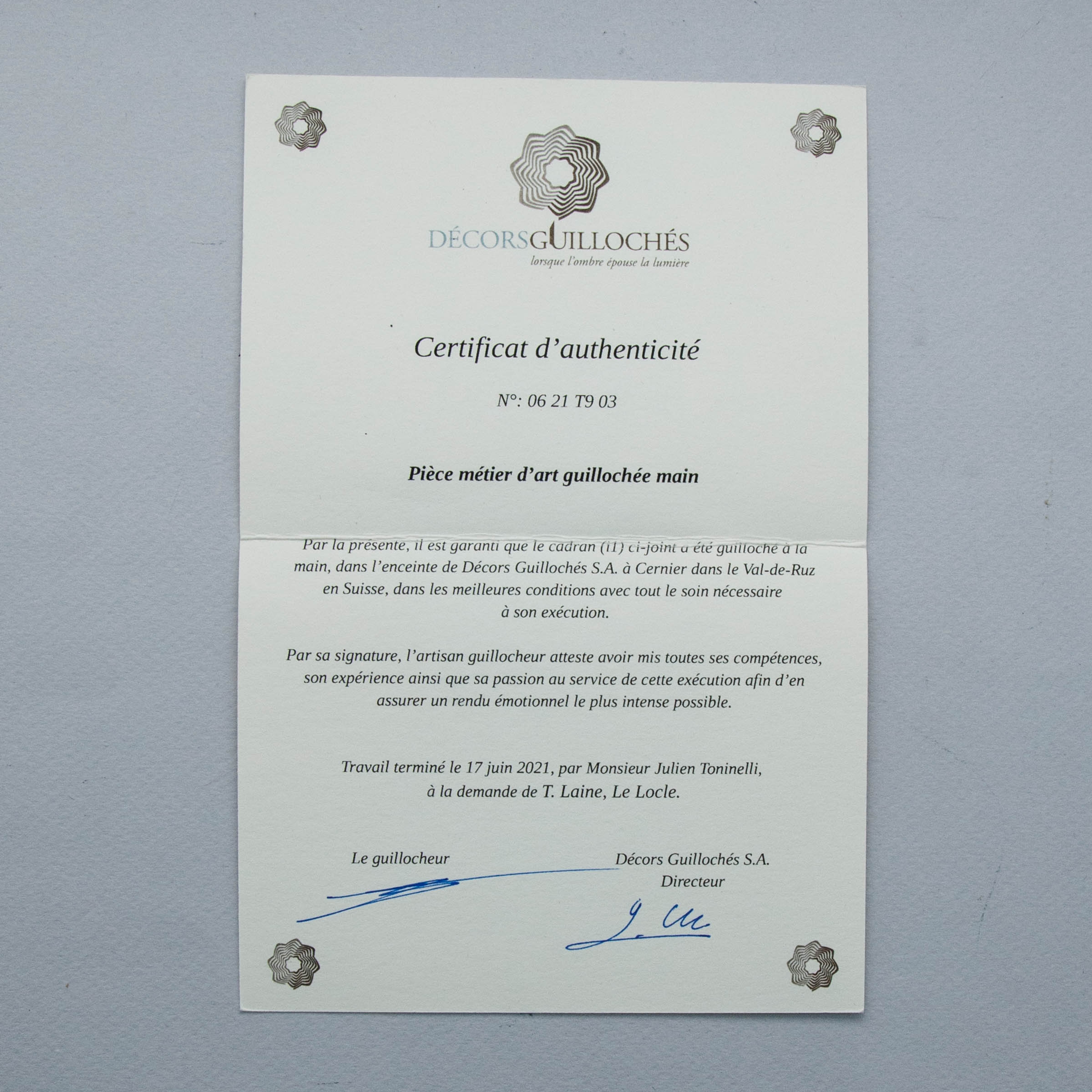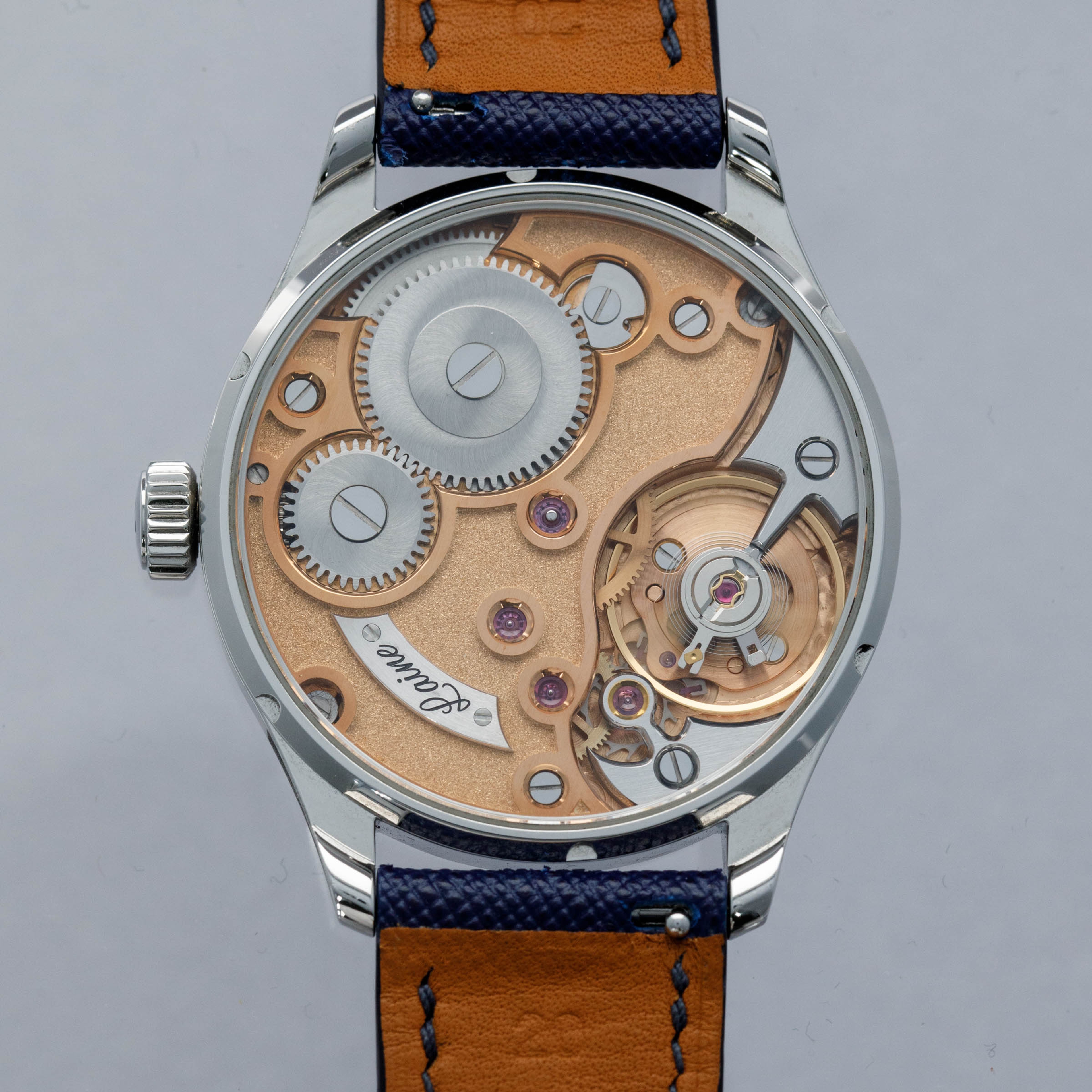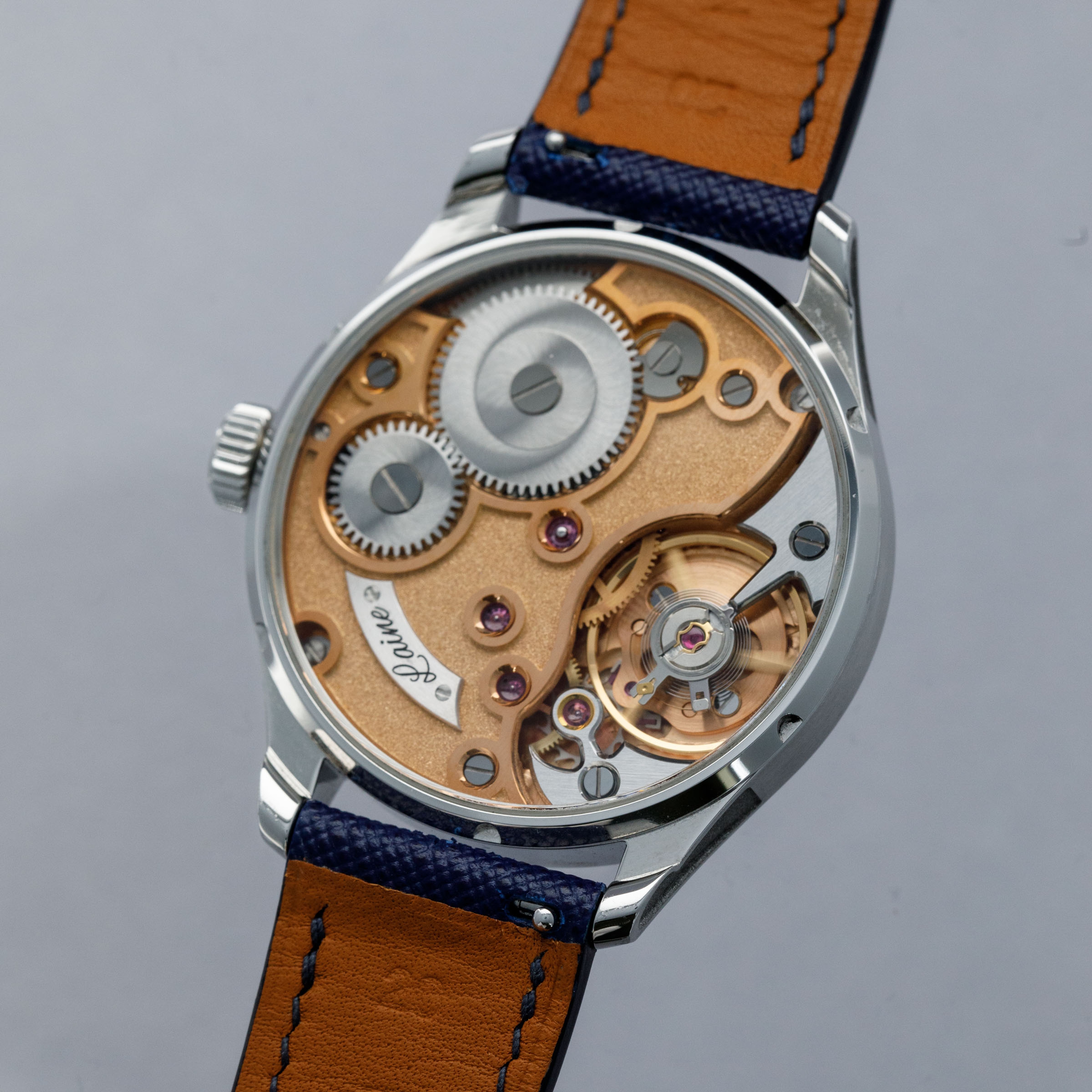 A Finnish watchmaker based in Le Locle, Torsti Laine has made a name for himself by creating timepieces with some of the most immaculate dials in all of independent watchmaking. In 2014 he received the A. Lange & Sohne annual prize for Excellence in Watchmaking and since gone on to start his own eponymous watchmaker creating stunning classical watches with hand-finishing dials and decorations on the movements, in accordance with each client’s specific order. Launched as the next generation of the Gelidus collection, the G3 features a two-piece dial that allows the use of different materials, colors and finishing when constructing the dial. As such, the example we have here features a bright white dial with two different textures. Its center portion features Laine's "Grain de riz" engraving, and its peripheral section features their Moonfrosting texture with a silver brushed chapter ring along the periphery, blued Breguet numerals and hands, and a silver ring encircling the inner flammé portion. An immaculate expression of hand-finishing, the G3 also features a hand-finished movement with deep anglage and countersinking for its screws and rubies alongside sandblasting throughout and brightly polished mechanics. An artisanal timepiece inside and out, it is no wonder that Laine has grown to their current level of popularity with a lengthy waiting list and a deep level of appreciation within the watchmaking community.