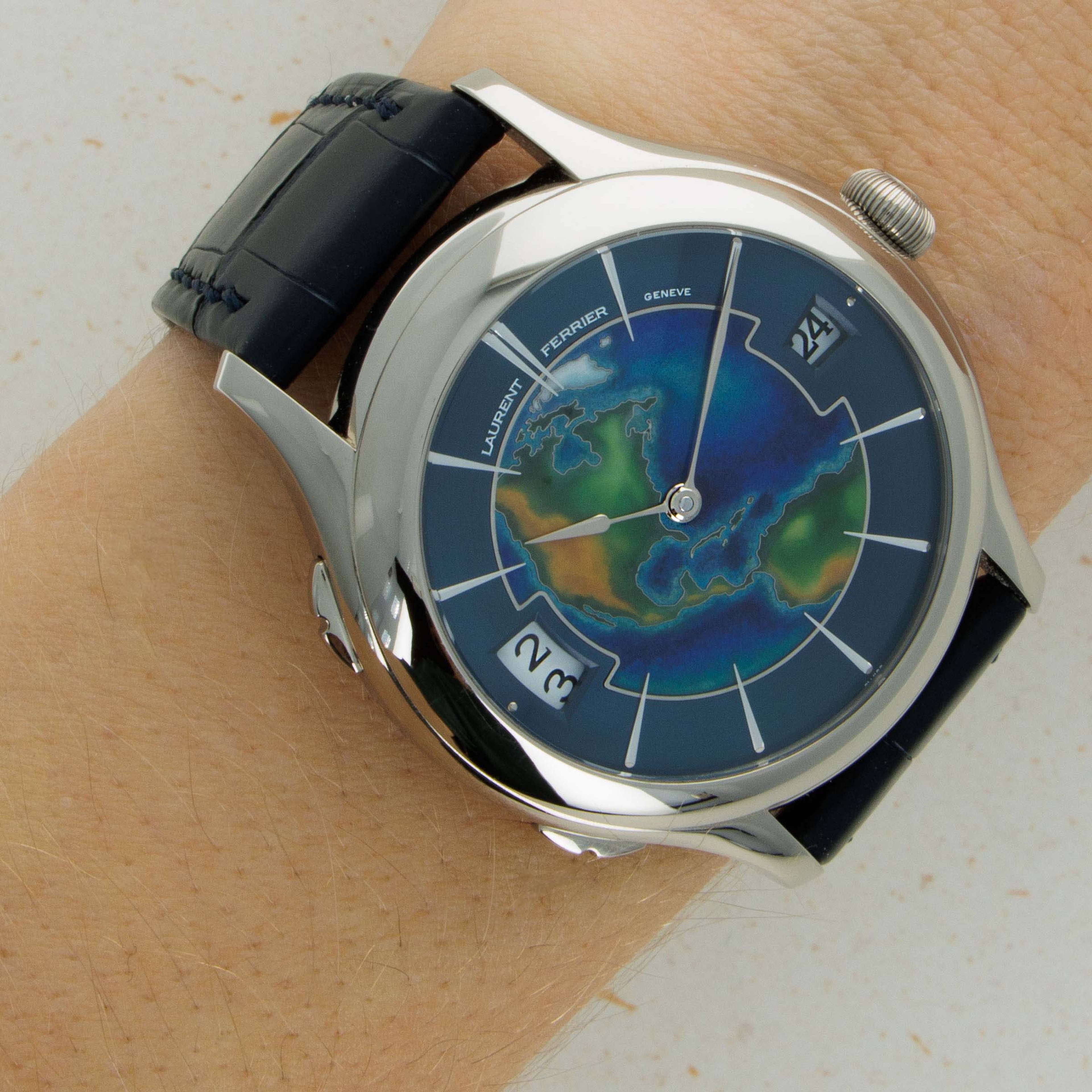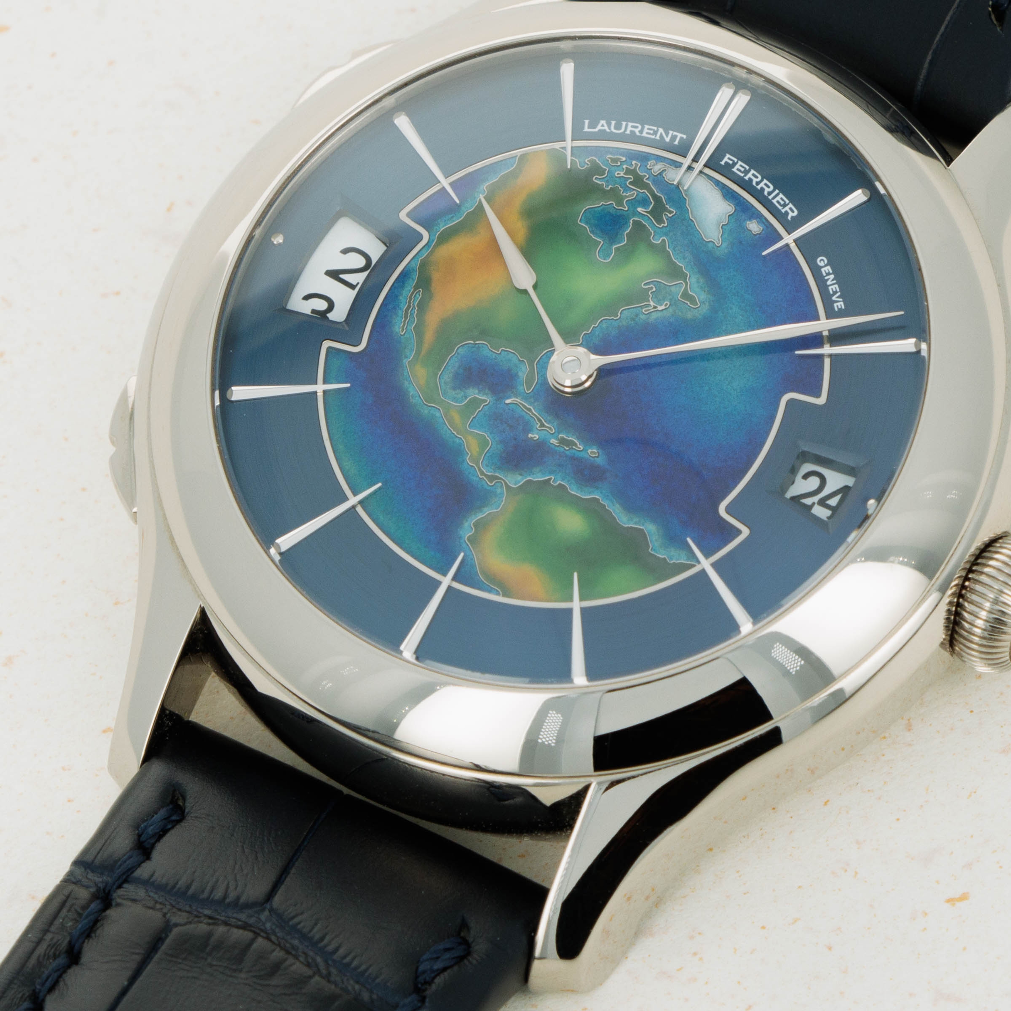 There are plenty of high-end watchmakers who create truly stunning pieces of art, but some of the more obscure watchmakers take that level of artistry and add to it in truly mind-blowing ways. One of those watchmakers is Laurent Ferrier. Founded in 2009, Laurent Ferrier produces around 150-200 pieces a year and has grown to become the holy grail of high-end super exclusive watchmaking, with the Galet World Traveller that we have here showcasing everything they have come to stand for. Made of 18kt white gold, its 41mm construction is incredibly luxurious, but in its own understated way with a completely polished surface spanning its domed bezel, sloping lugs, and curvy mid-case. Powered by the automatic cal. LF203.1 it showcases a level of finishing behind its exhibition caseback that is truly spectacular and a beautiful finished solid-gold micro-rotor. However, beyond all of that, the Galet World Traveller we have here is the limited edition Cloisonne Americas variant, limited to just eight pieces. As its name suggests, what makes the Galet World Traveller Cloisonne Americas so special is its cloisonné champlevé enamel dial. Made using an incredibly tedious process, Laurent Ferrier took an 18kt white gold dial and hollowed it out to create the map of Norther America in such a way that they could individually fill in the hollowed-out areas with color to create the beautiful array of greens, yellows, blues and oranges that span its gorgeous dial. An incredibly tricky thing to do correctly as its date and travel-time apertures increase the likelihood of the dial cracking during the manufacturing process, the Galet World Traveller Cloisonne Americas is a masterpiece that only a watchmaker like Laurent Ferrier could create.