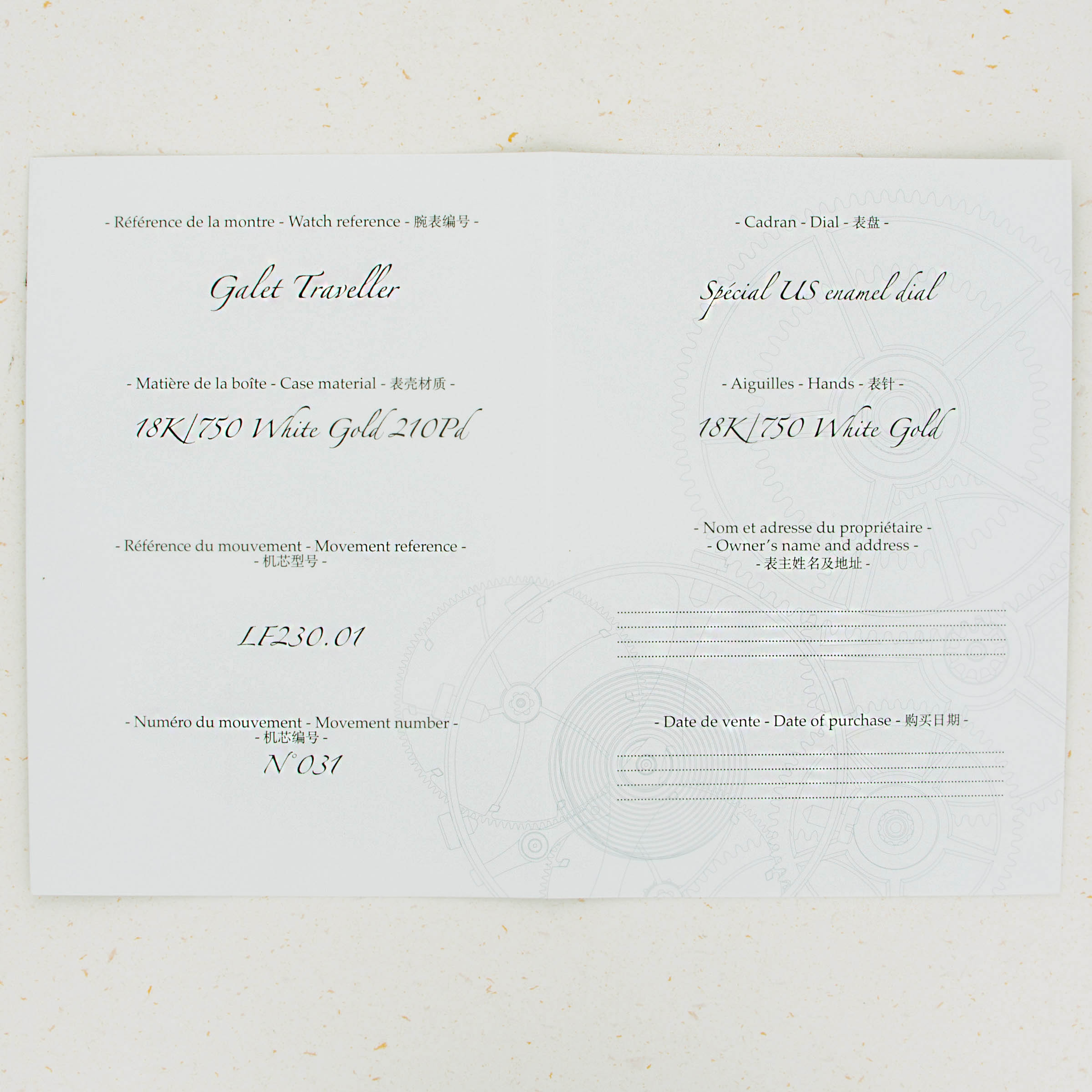 A painstakingly tedious process, the dial is made using cloisonné champlevé enamel which means the dial has to be hollowed out so that each color can be added individually and layered to achieve the various tones of blue, green and yellow that span the dial. Additionally, the dial had to be made in such a way that the apertures for the date and travel-time would not cause cracks to appear during the firing process.