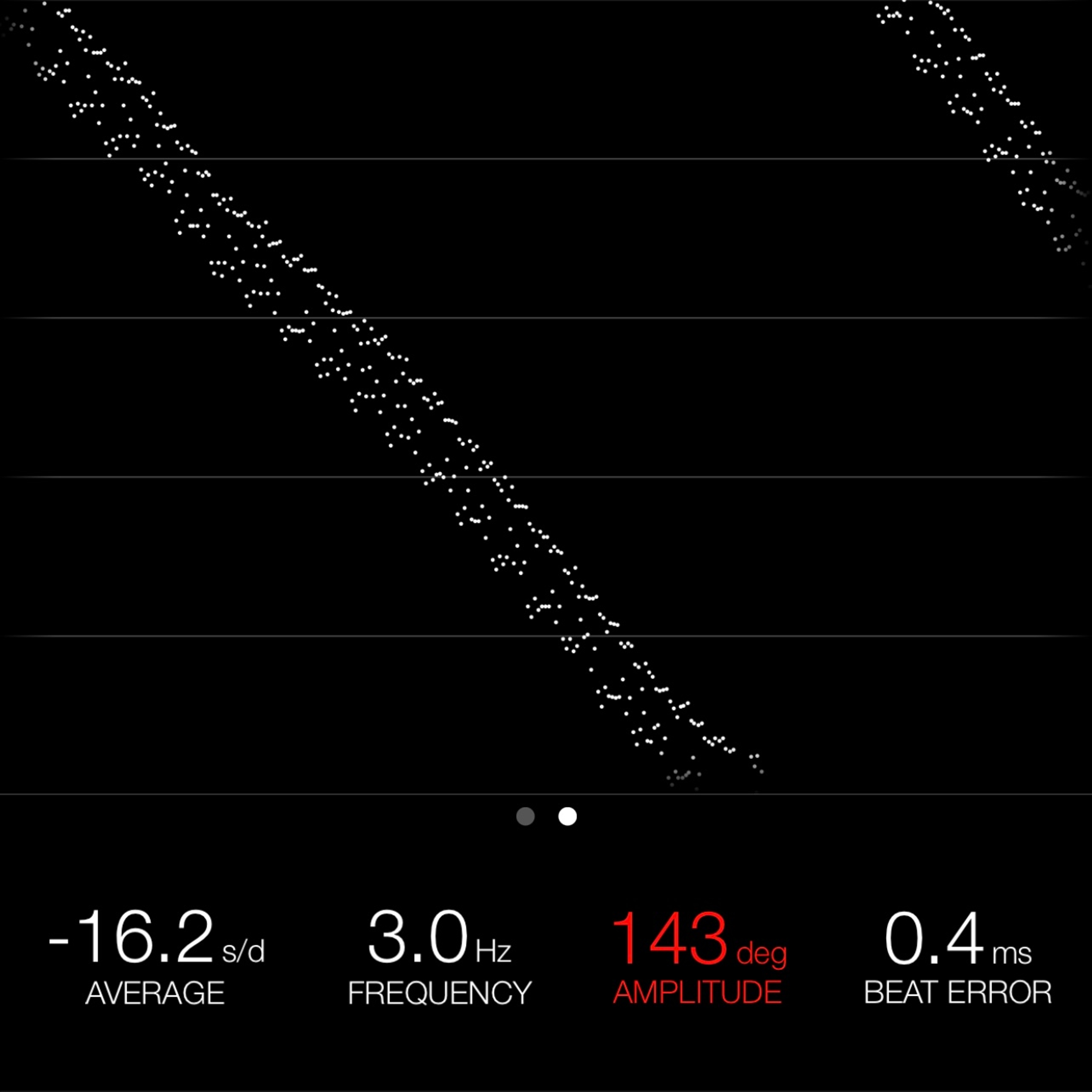This reading was taken (crown down) with a ONEOF Accuracy Boutique Edition timing machine at time of cataloging. It is provided as a courtesy only, and shall not be construed as a warranty or guarantee of any kind. Please refer to our terms and conditions of sale for more information.