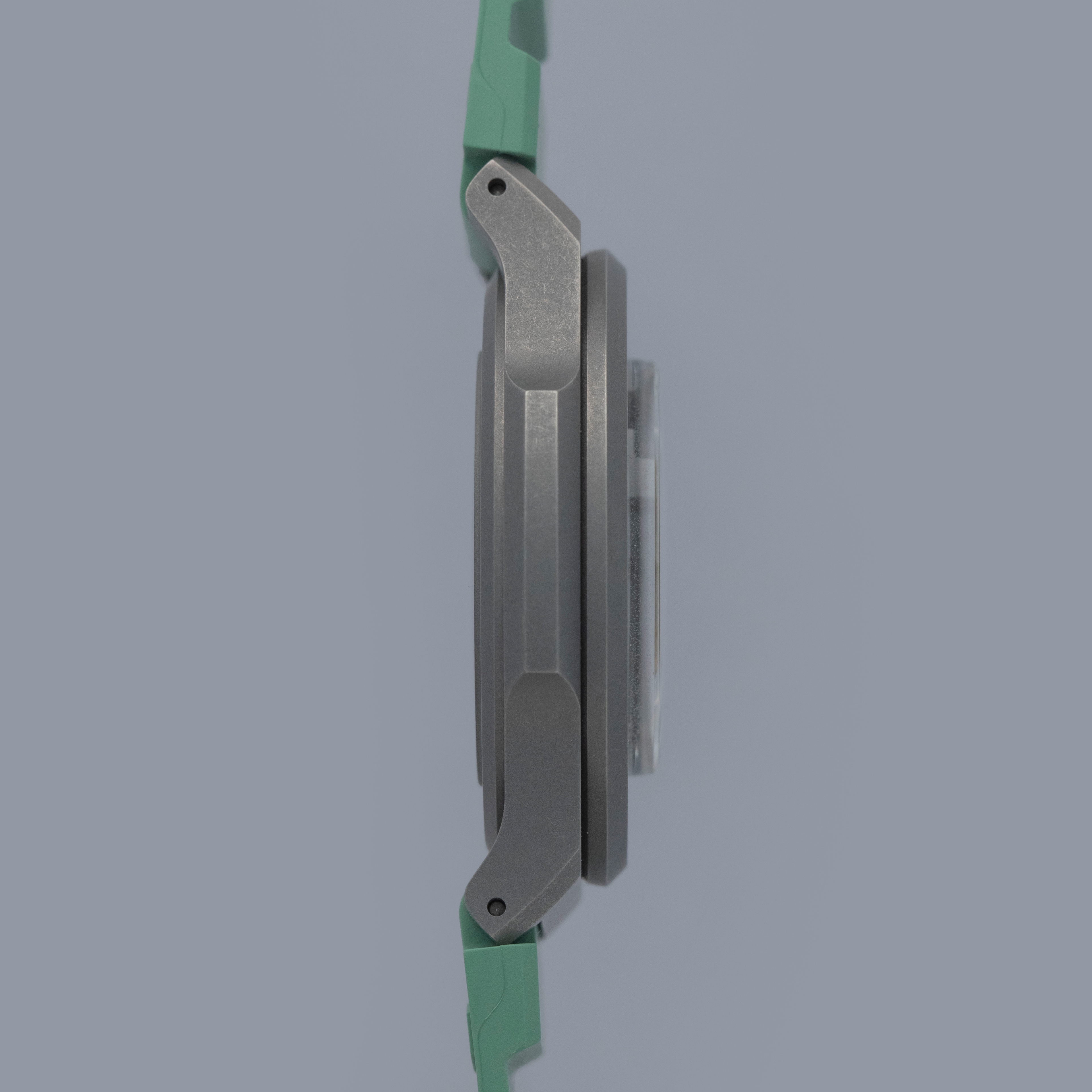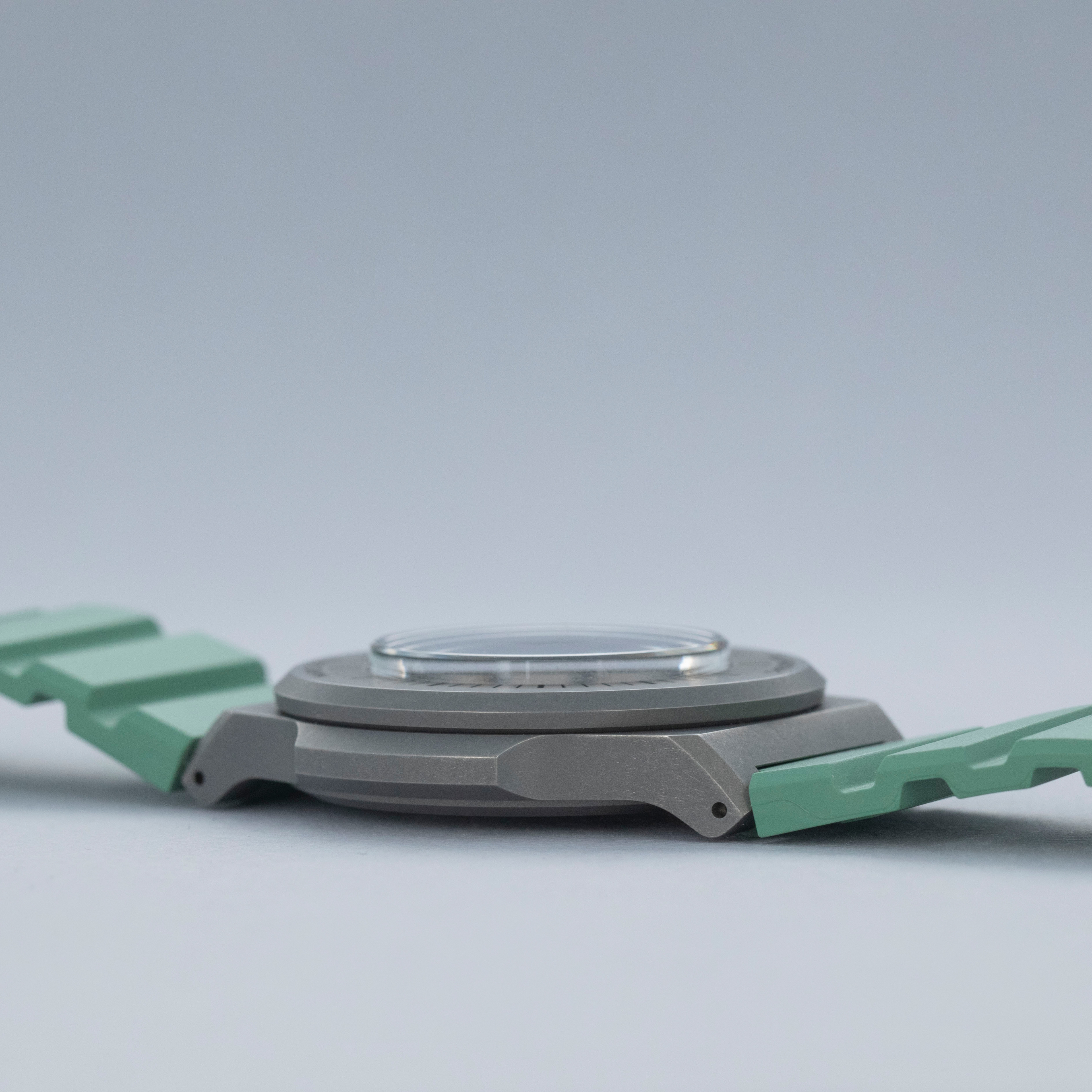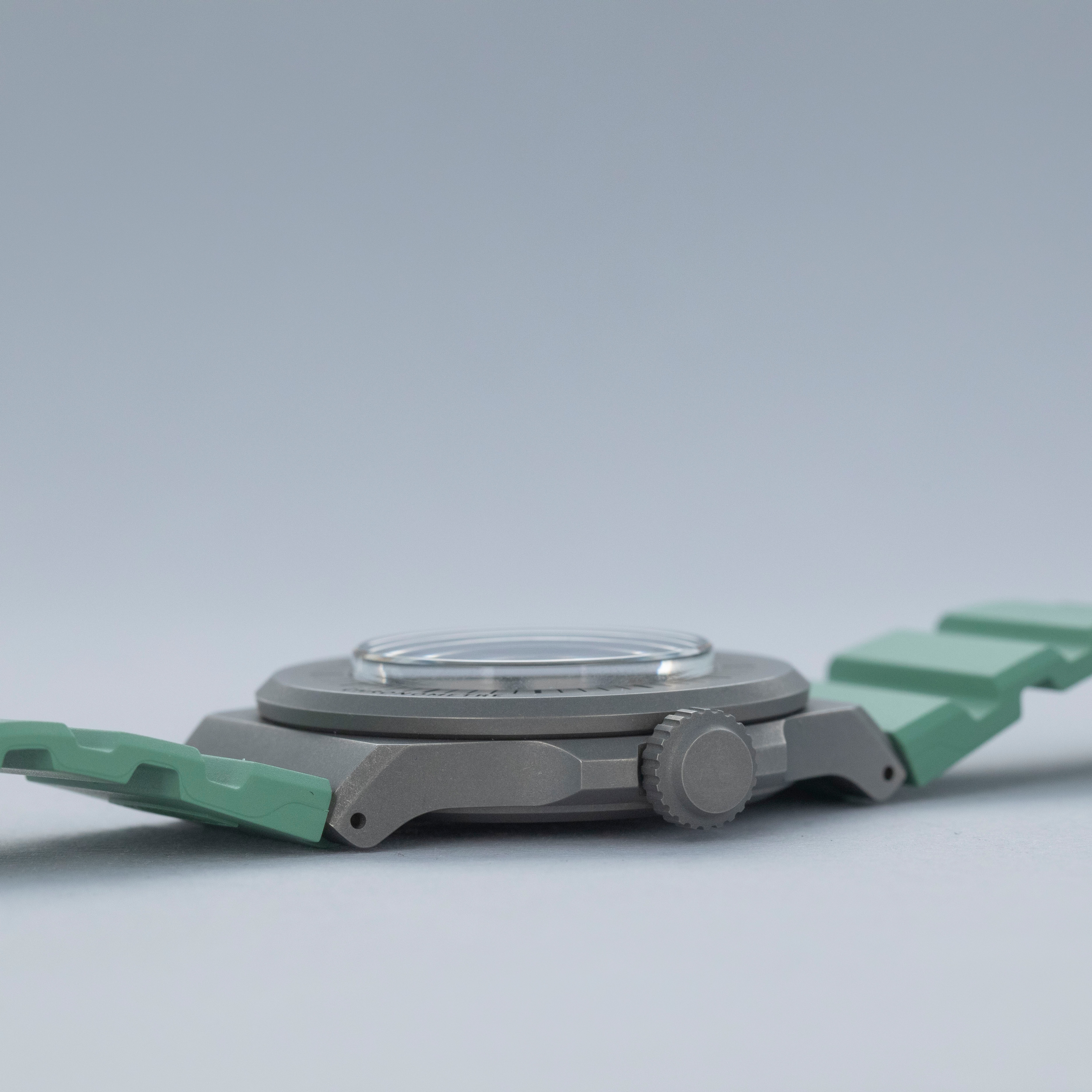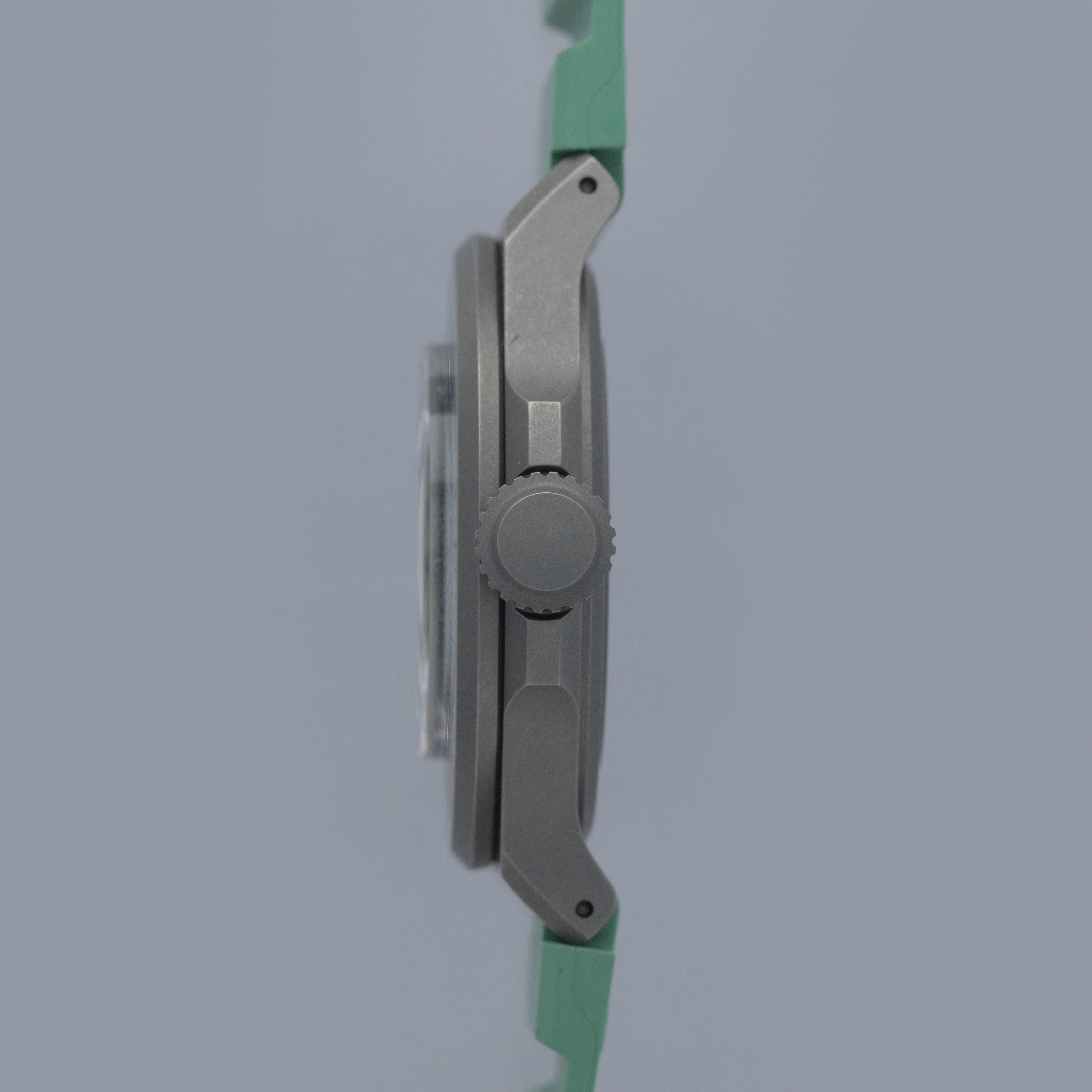 Made of grade 23 titanium, the Marine Type 3's 38mm case construction is dark in color, and serves as the perfect background for its bright dial and green rubber strap.