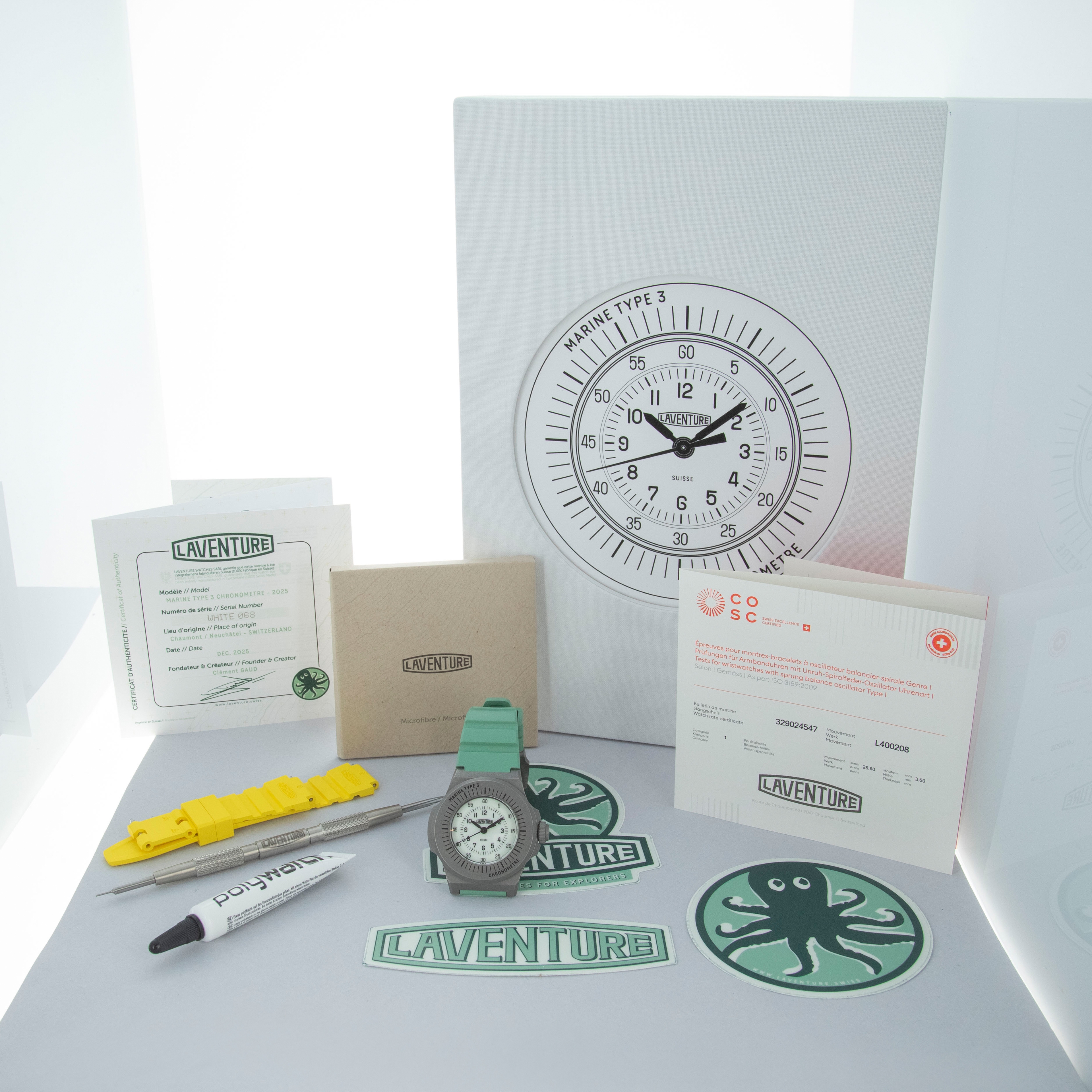 Box and Papers, Spare Strap, Polywatch Tube