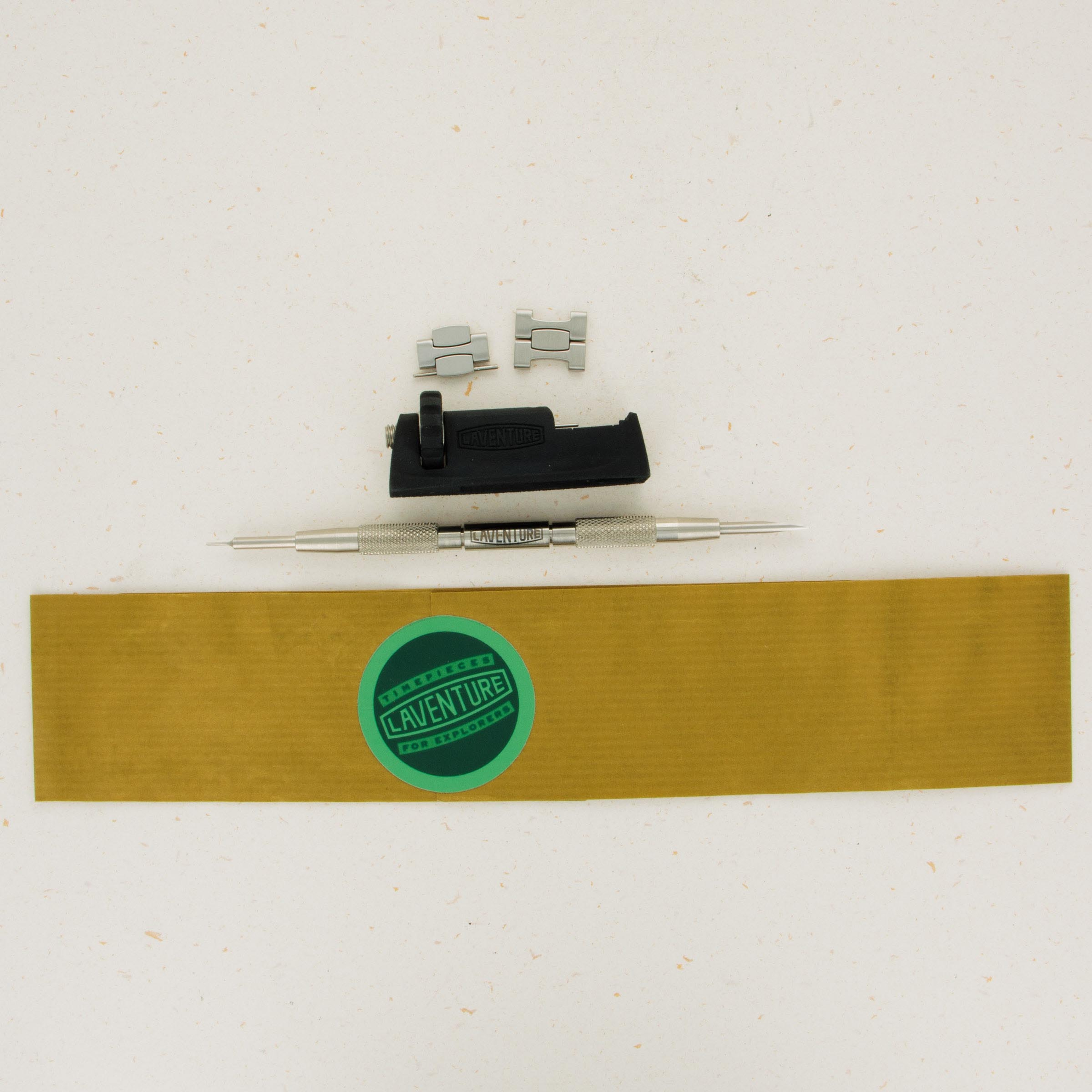 Watch, box, papers, sticker set, booklets, bracelet resizing tool, spring bar tool