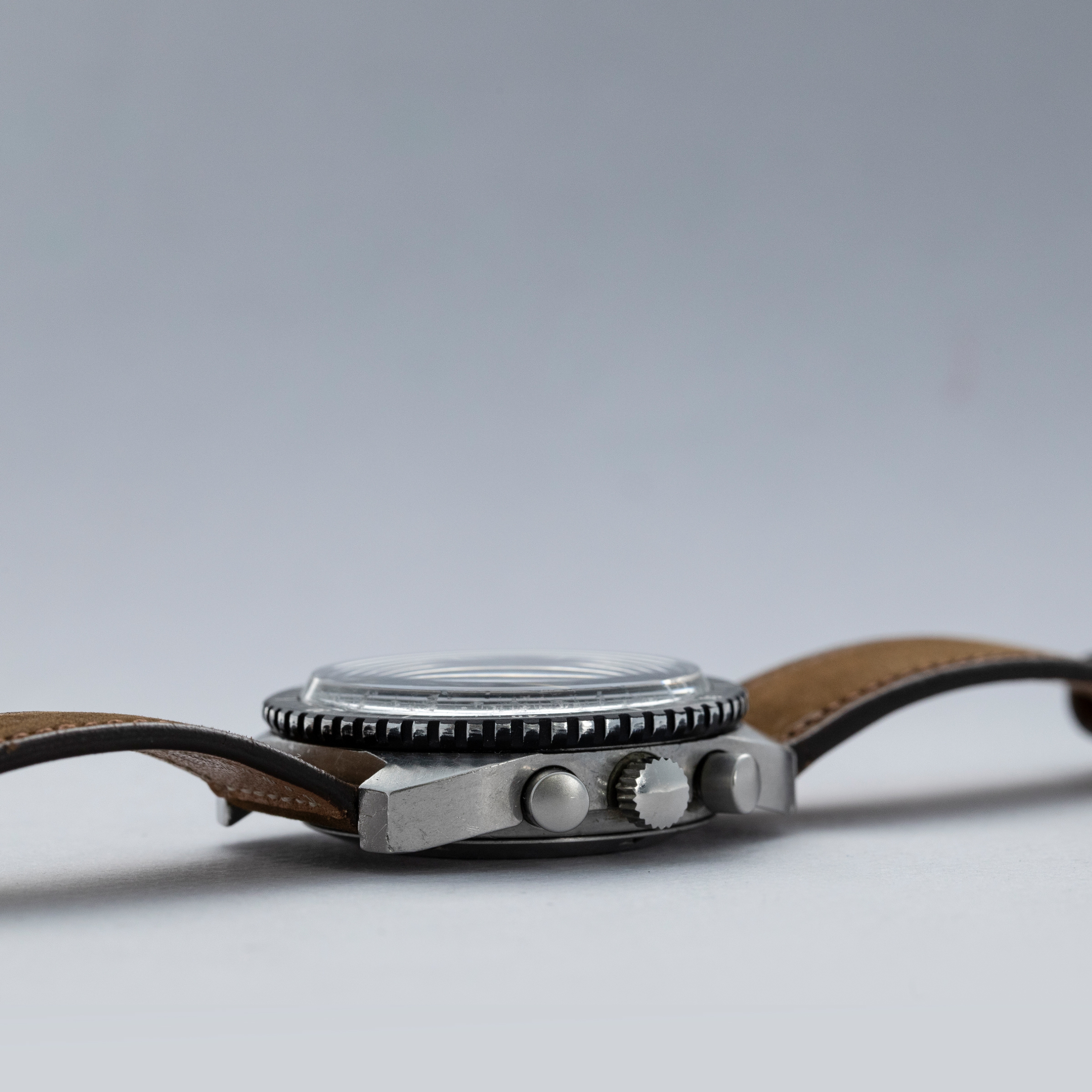 While they might be best known for their movements, Lemania also produced their own watches over the years, with one of their models being this chronograph that we have here. Produced for the South African Airforce (the SAAF) in the early 1980s with around 800 units being produced, the ref. 5012 (named after its automatic cal. 5012 movement), is a rare and intriguing chronograph that points at a time when mechanical tool watches were still functional pieces of kit issued to members of the military. While the watch served the SAAF for several years, they were eventually replaced by quartz Seiko chronographs. SAAF pilots were then given the choice of buying the Lemania ref. 5012 for around the equivalent of $5, which many of them did, only to then turn them in for their Seiko replacements. In finding this out, the SAAF destroyed the remaining ref. 5012’s that were in stock, or were turned in, and so very few of the 800 examples originally produced still remain today, making it a rare and unique piece of horological history. With four central hands, two for the time and two for its chronograph functions, the ref. 5012 features a single running seconds subdial at 9 o’clock, and a date aperture at 3 o’clock. A large watch at 41mm in diameter, the ref. 5012 benefits from short thick lugs to wear close to the wrist, making it a watch that both wears large, but also wears with a rather elegant poise.