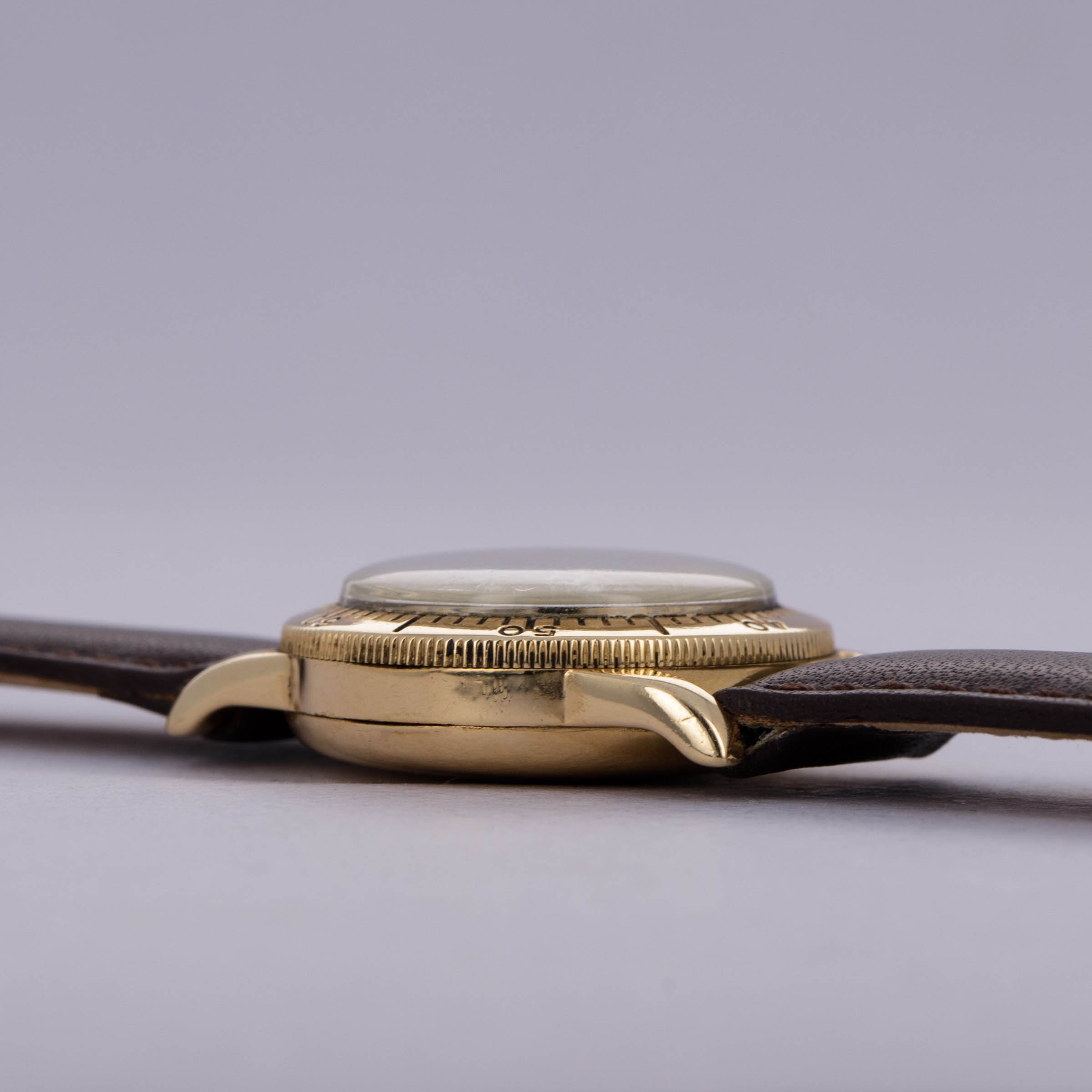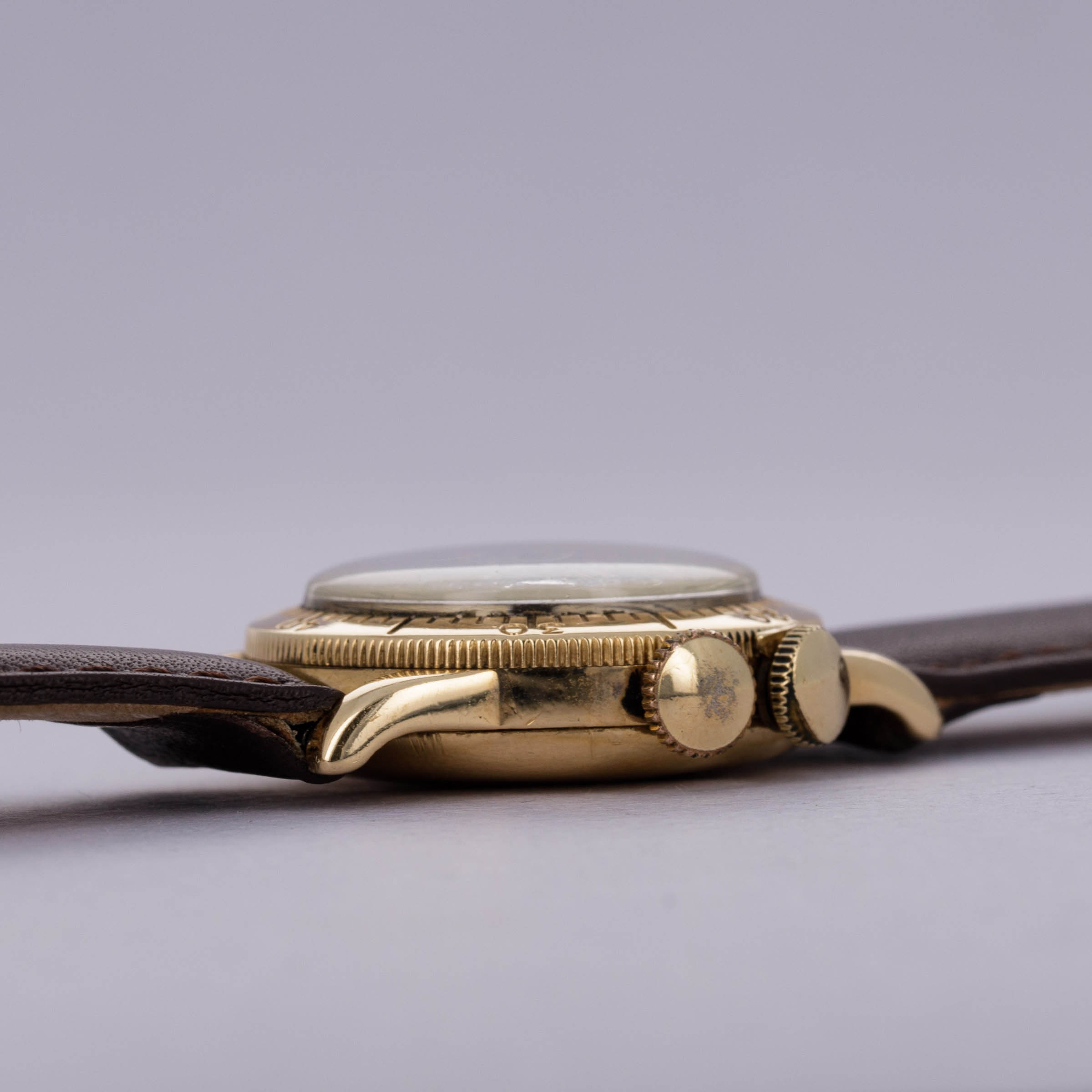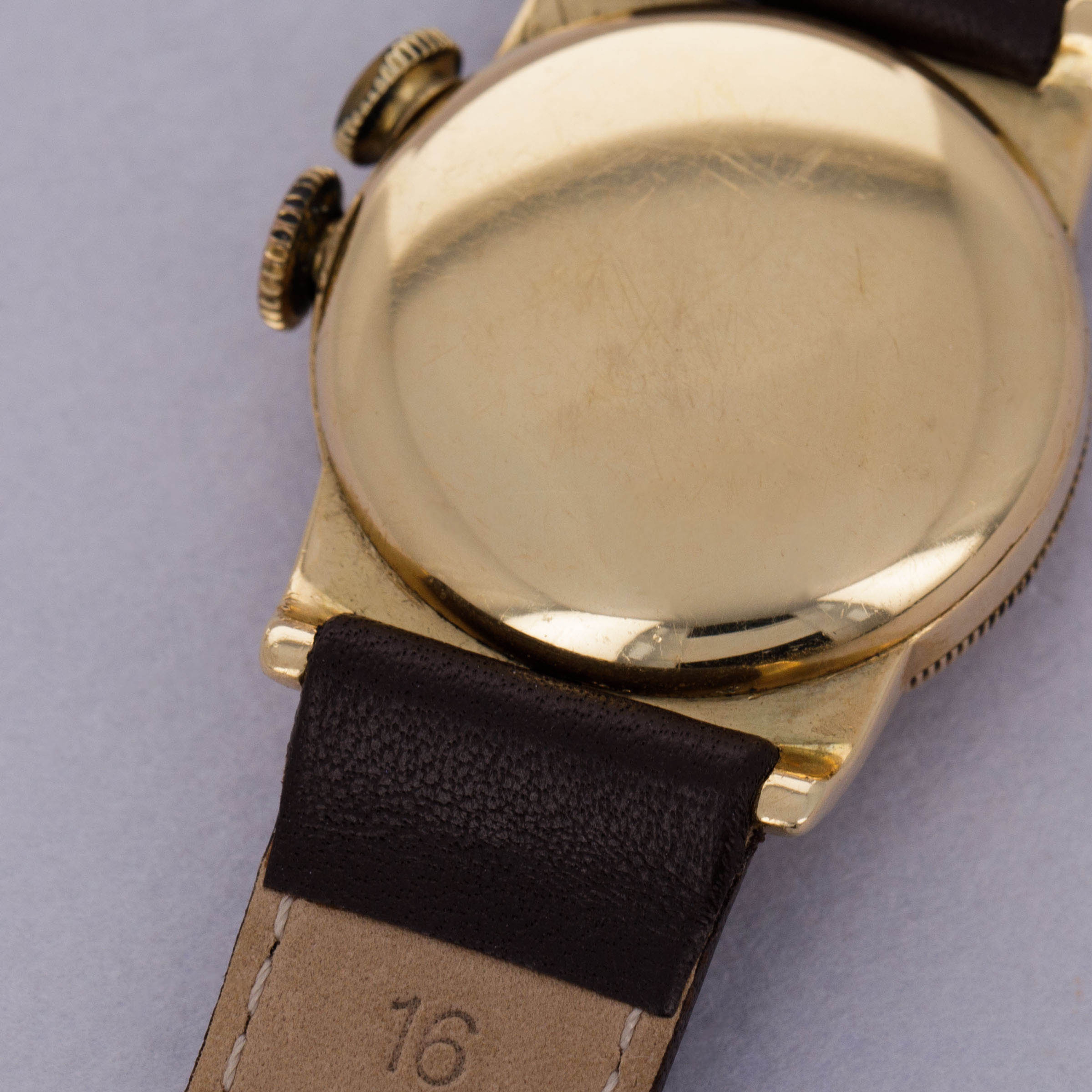 Watch is in good overall condition. 14kt YG case is in good condition, with heavy surface wear visible on the case. Dial is an early refinish and is heavily crazed and worn. Hands are relumed. Please note timekeeping is very poor and a service is needed.