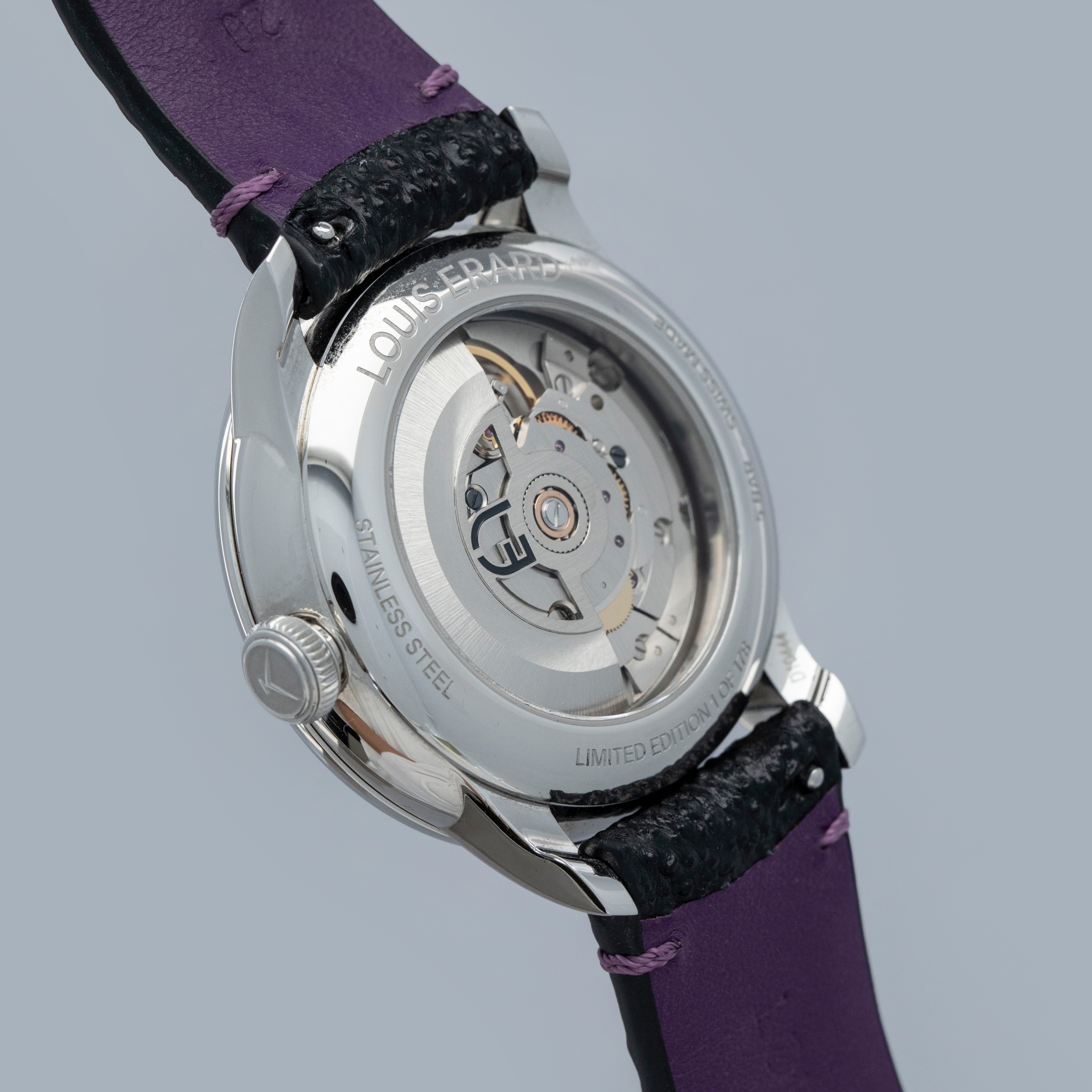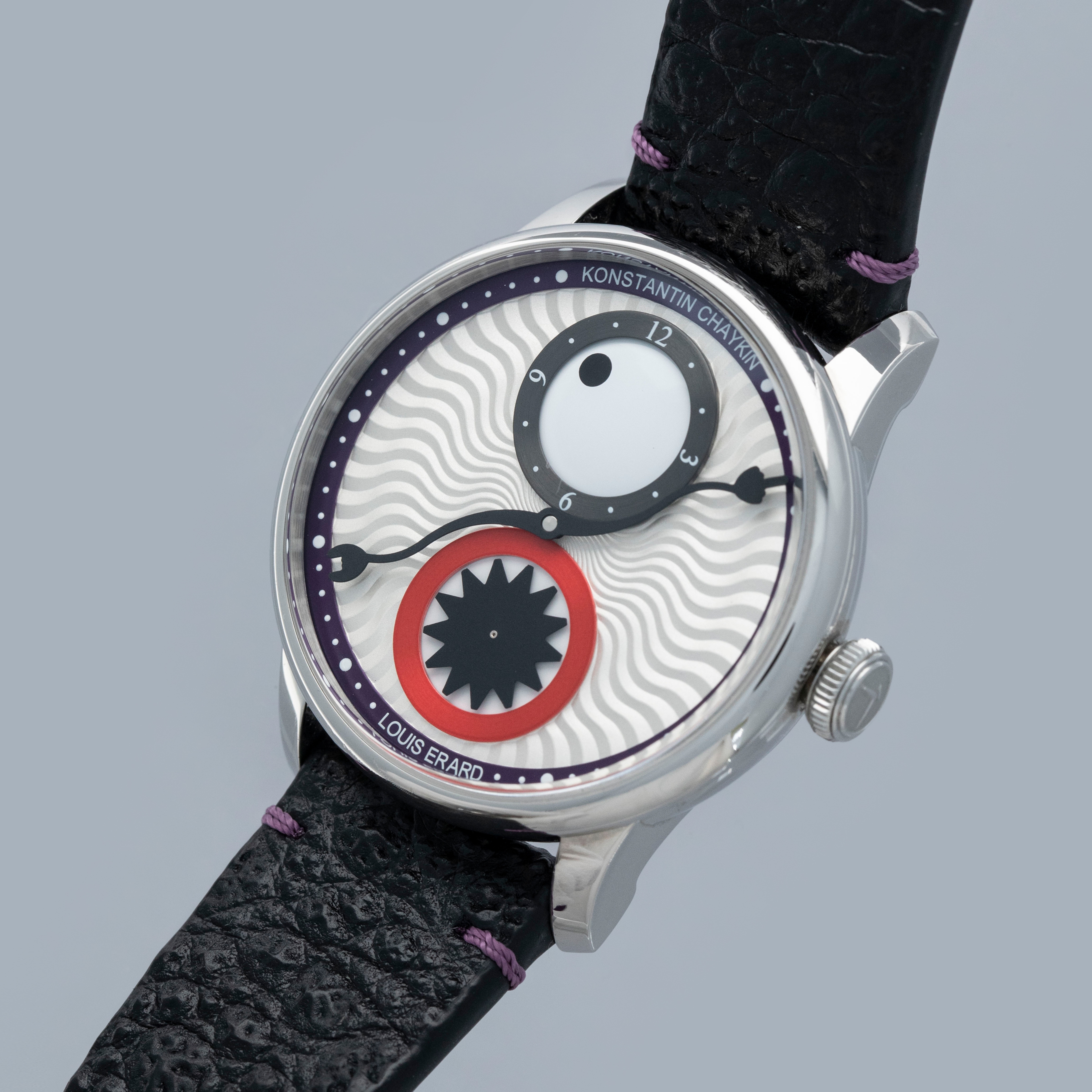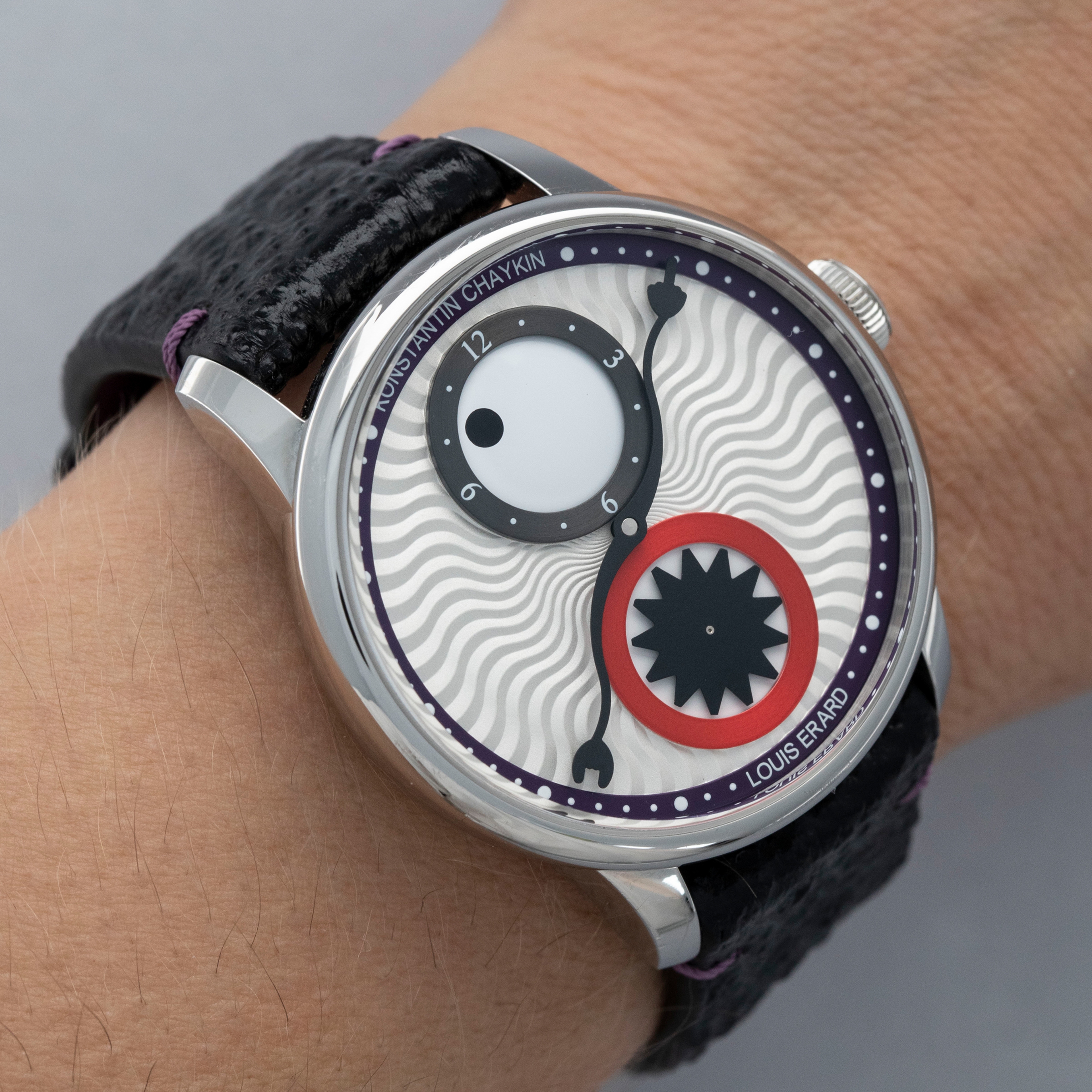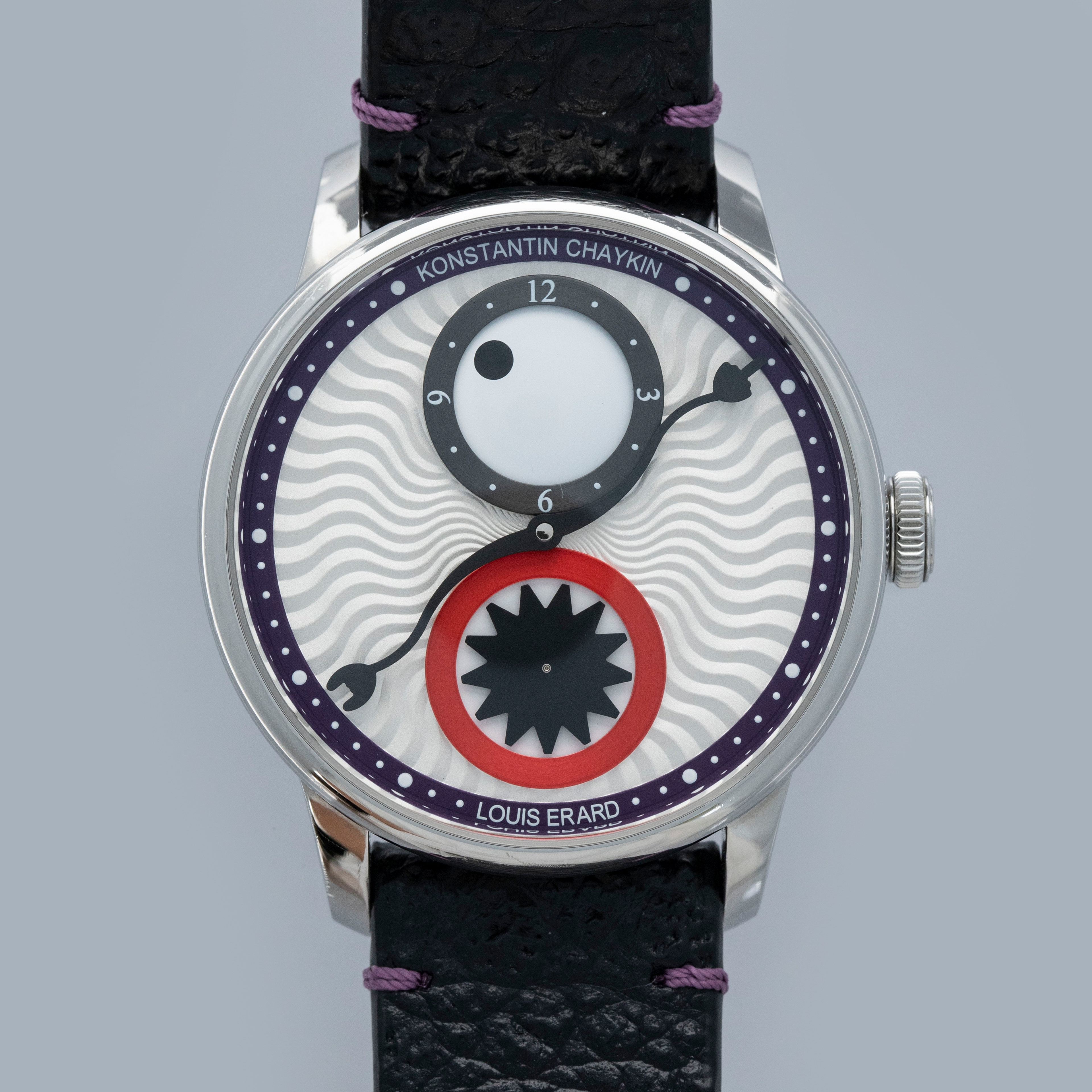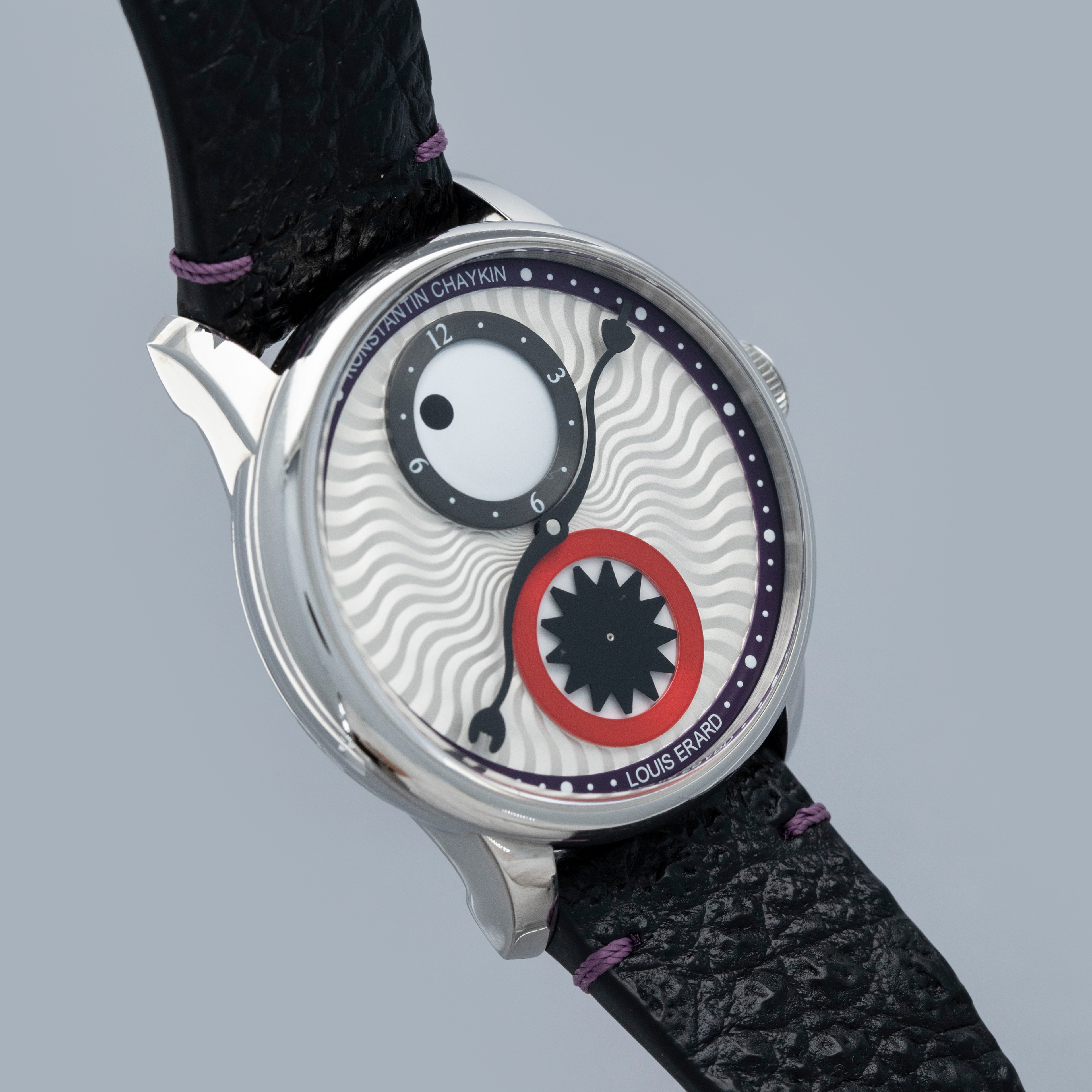 Founded in 1929, Louis Erard is a brand full of heritage and history who has sold watches under their own name from 1931 onwards. Like so many brands who have made a comeback to the modern era, Louis Erard was acquired in the 1990s and was eventually relaunched in 2003. Now established as a unique independent brand with a their own design language and well-priced high-quality offerings, Louis Erard has built up a passionate customer base that continues to grow on the back of their incredible offerings, much like the Konstantin Chaykin collaboration we have here, the Le Régulateur Time Eater. Released in 2023 as Louis Erard's first collaboration with Konstantin Chaykin, the Le Régulateur Time Eater was designed by Konstantin Chaykin as a reworked version of Louis Erard's Excellence Régulateur and made in Louis Erard's watchmaking workshop in the Jura mountains. With Konstantin Chaykin’s character-inspired design language shining through its cyclops-clad display, the Le Régulateur Time Eater combines a uniquely distinctive design language with a heritage-inspired DNA. Offered as a limited edition of just 178 pieces, the Time Eater features a silver dial with a cyclops monster that uses the hour subdial at 12 o’clcok for its eye and the running seconds subdial at 6 o’clock for its mouth. Boasting a wavy engraved texture across its silver dial and a purple chapter ring, the Time Eater’s display is colorful as well as aesthetically interesting. Powered by the same automatic Sellita cal. SW266-1 movement as the stock version of the Excellence Régulateur that it is based on, the Le Régulateur Time Eater is a familiar watch on the wrist for Louis Erard's collectors, however it is a slightly smaller diameter at 39mm instead of the usual 42mm, giving it even more comfortable proportions that any collector who enjoys a regulator clock or timepiece will appreciate.