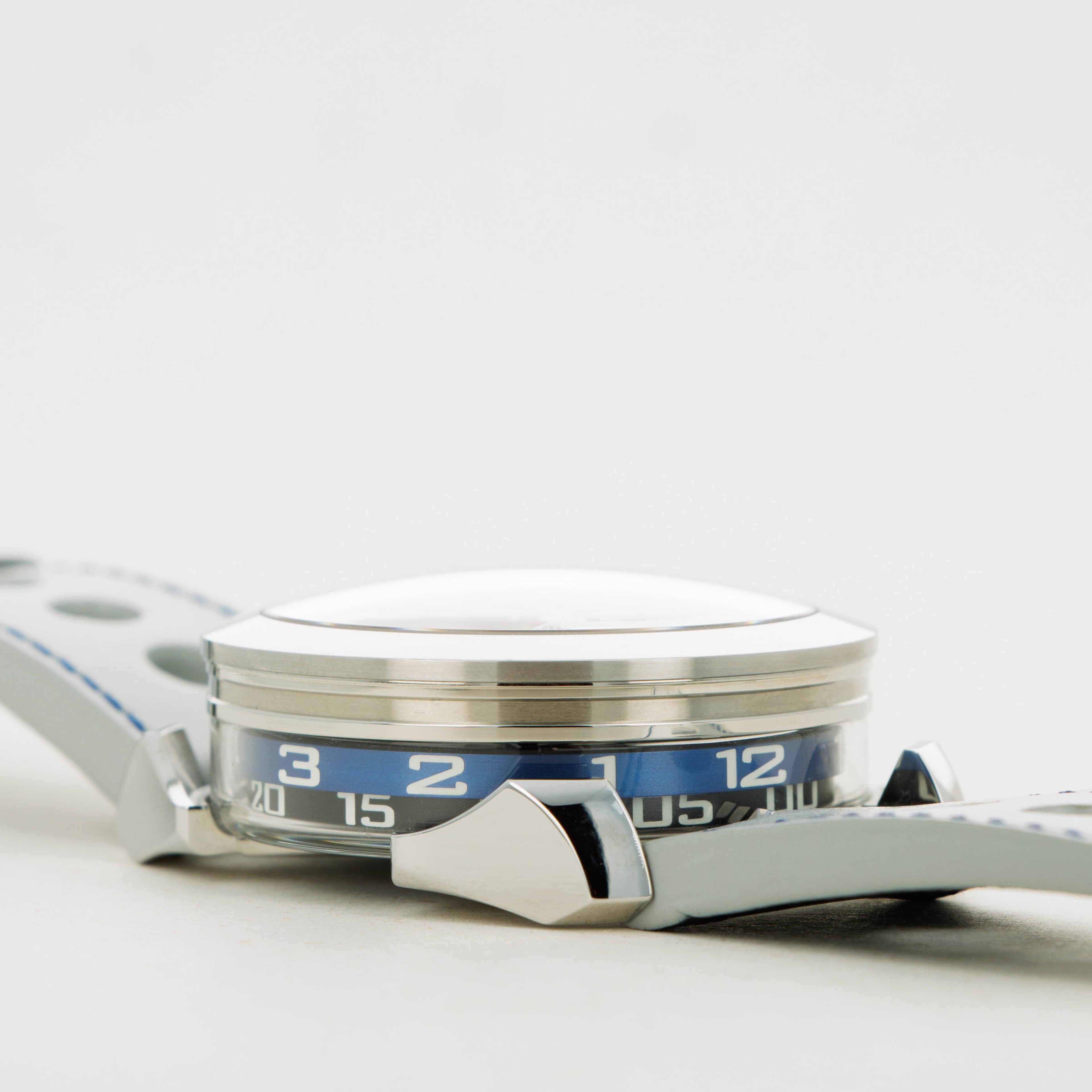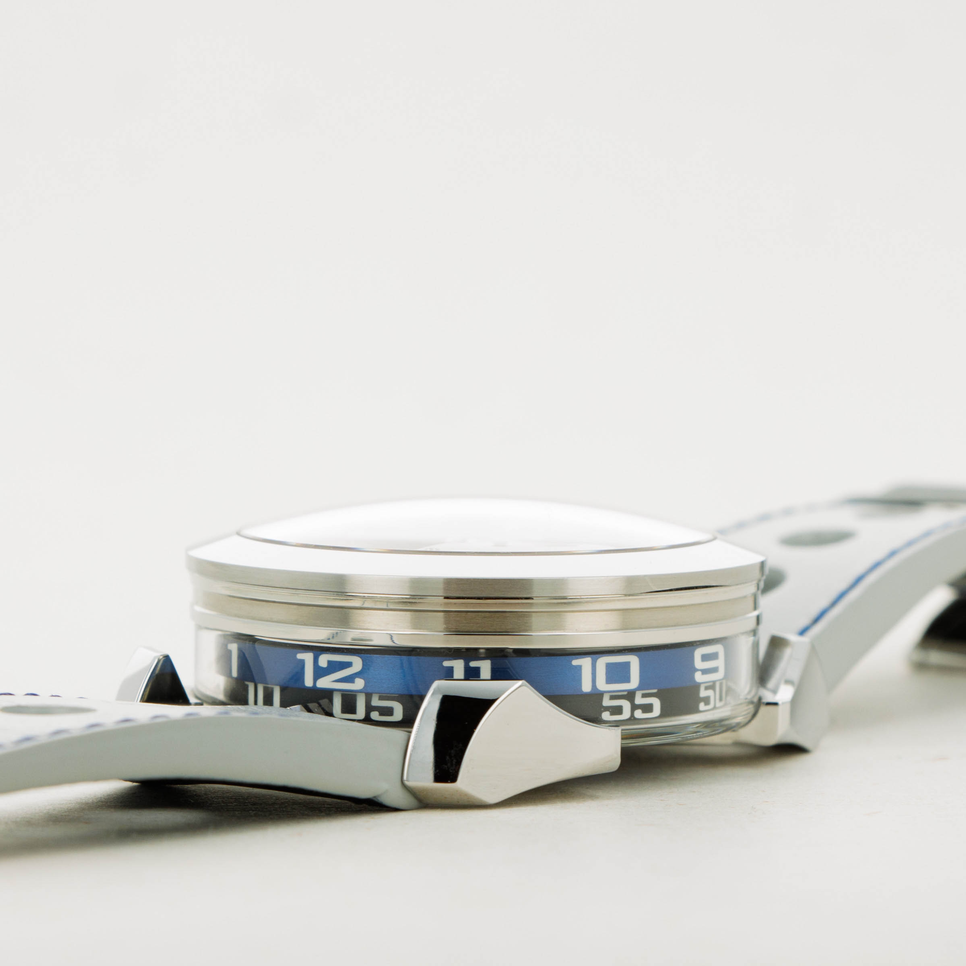 While tall at 18.8mm, it is a practical element of the M.A.D. 1's display with its unique lateral time indication using two aluminum rings that rotate around its stainless steel case to display the hours and minutes.