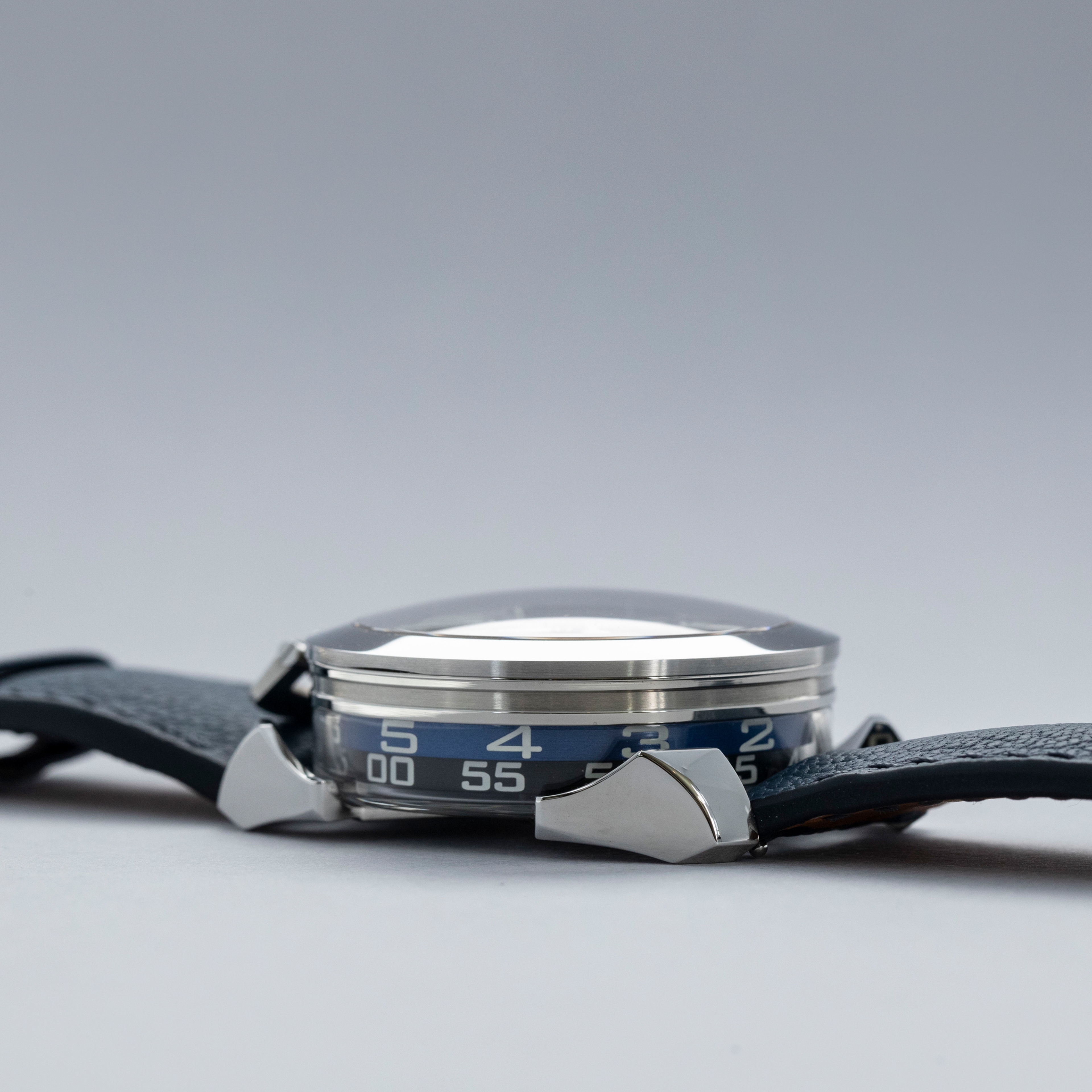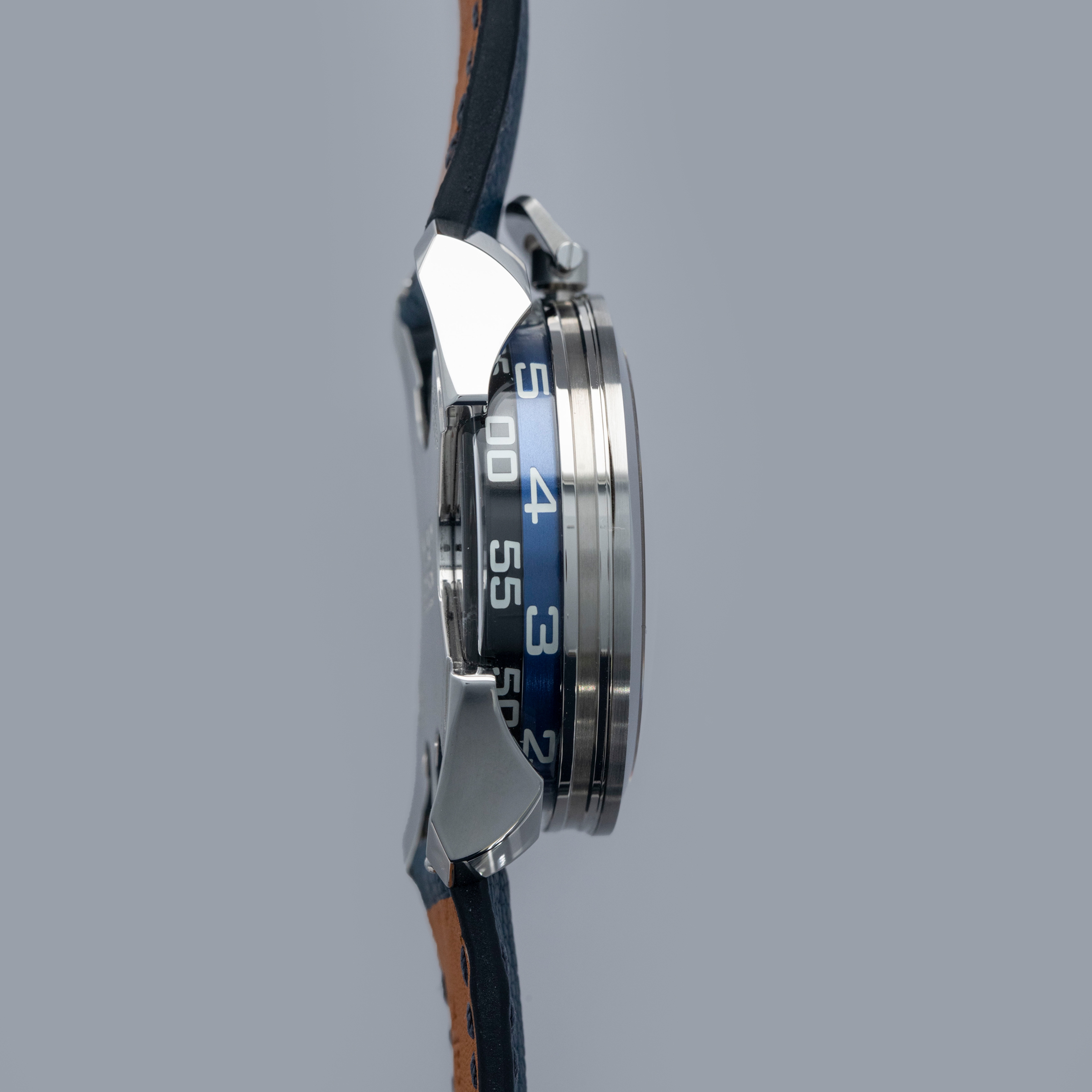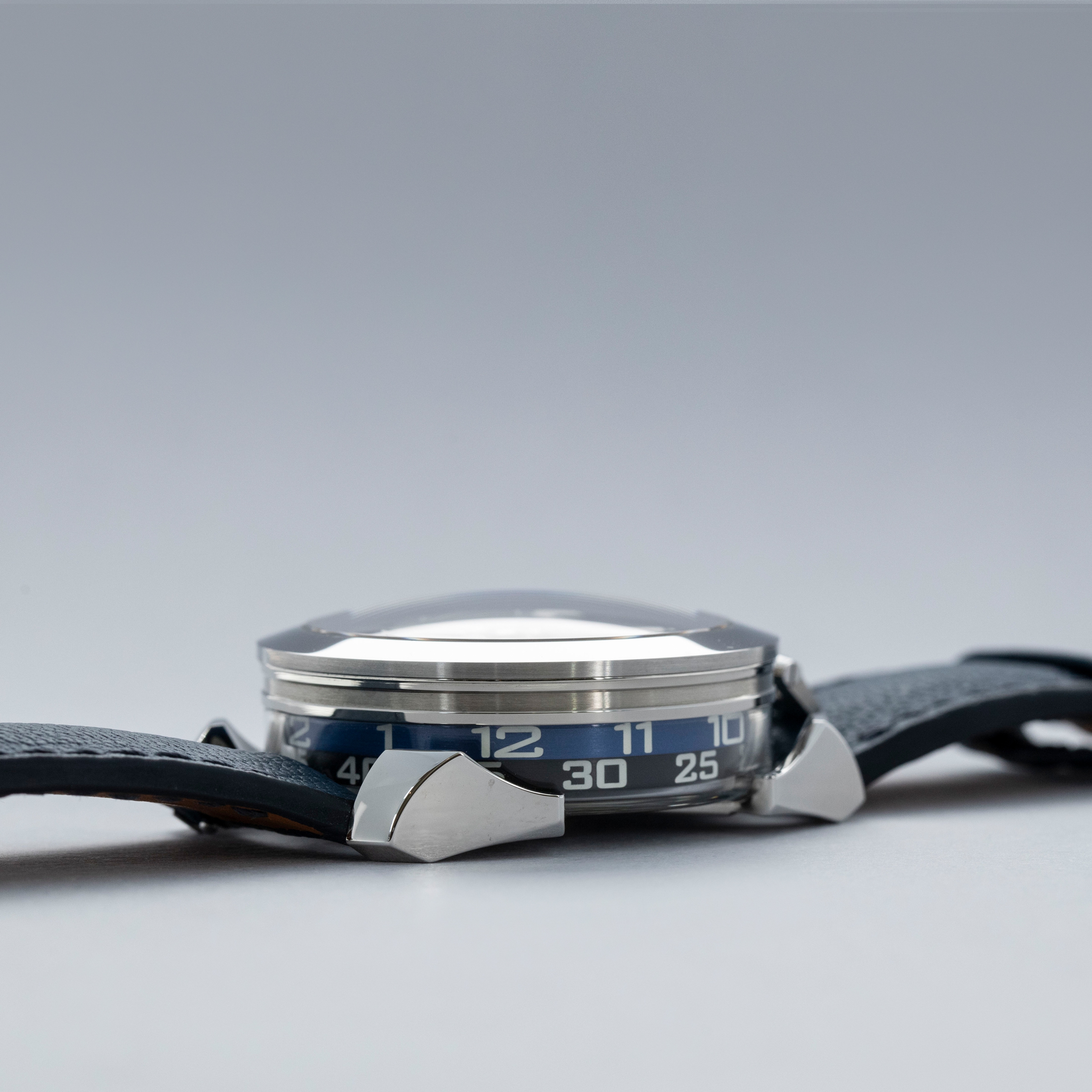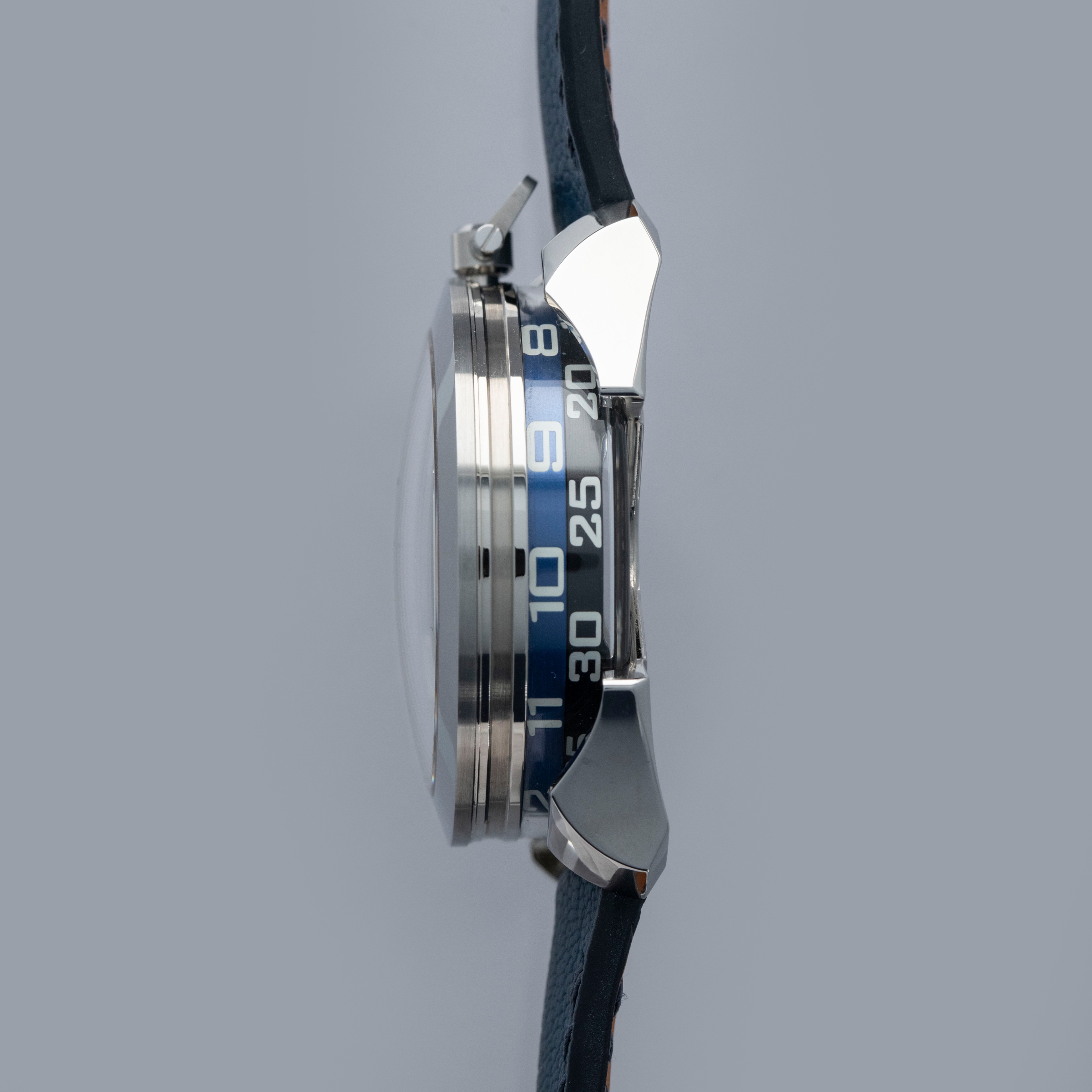 Famed for his flamboyant and eccentric designs, Maximilian Busser of MB&F is perhaps one of the best-known watchmaking CEOs in the world of horology. While his incredibly keen eye for detail has helped establish MB&F at the zenith of watchmaking, it is no surprise that collectors around the world, who he calls the Tribe, have been drawn to his charismatic devotion to his collectors. Powered by this devotion, Max began designing a new timepiece in 2020 that would blend his incredibly unique design language with a price tag that would be far more palatable than what MB&F timepieces are usually accompanied by. Offered only to a small selection of MB&F’s most-valued collectors and friends, the M.A.D. Edition 1 is the result of that design process. Powered by a heavily modified automatic Miyota cal. 821A, the M.A.D. Edition 1 features a lateral time display and a titanium and tungsten triple-blade winding rotor that sits atop its case and spins incredibly fast above a blue aluminum ring. This is then matched by the blue aluminum ring that rotates around the case as the hour display, which features a grey minute ring beneath it which rotates the very same way. An incredibly personal piece of design from Max’s perspective and an incredibly cool-looking and rare timepiece from the wider-watch community’s perspective, the M.A.D. 1 is as rare a timepiece as it is unique, and this is the perfect opportunity to add one to your collection.