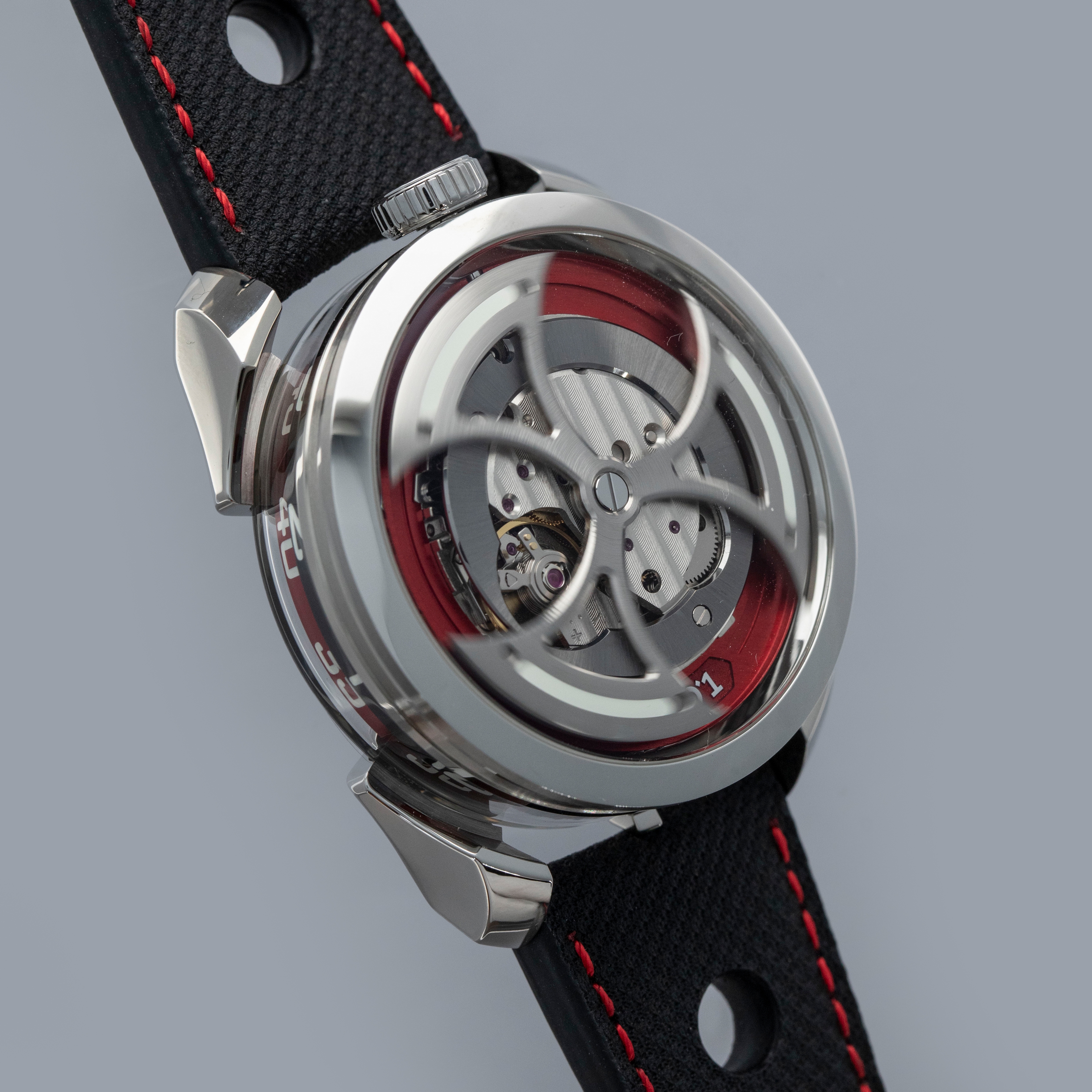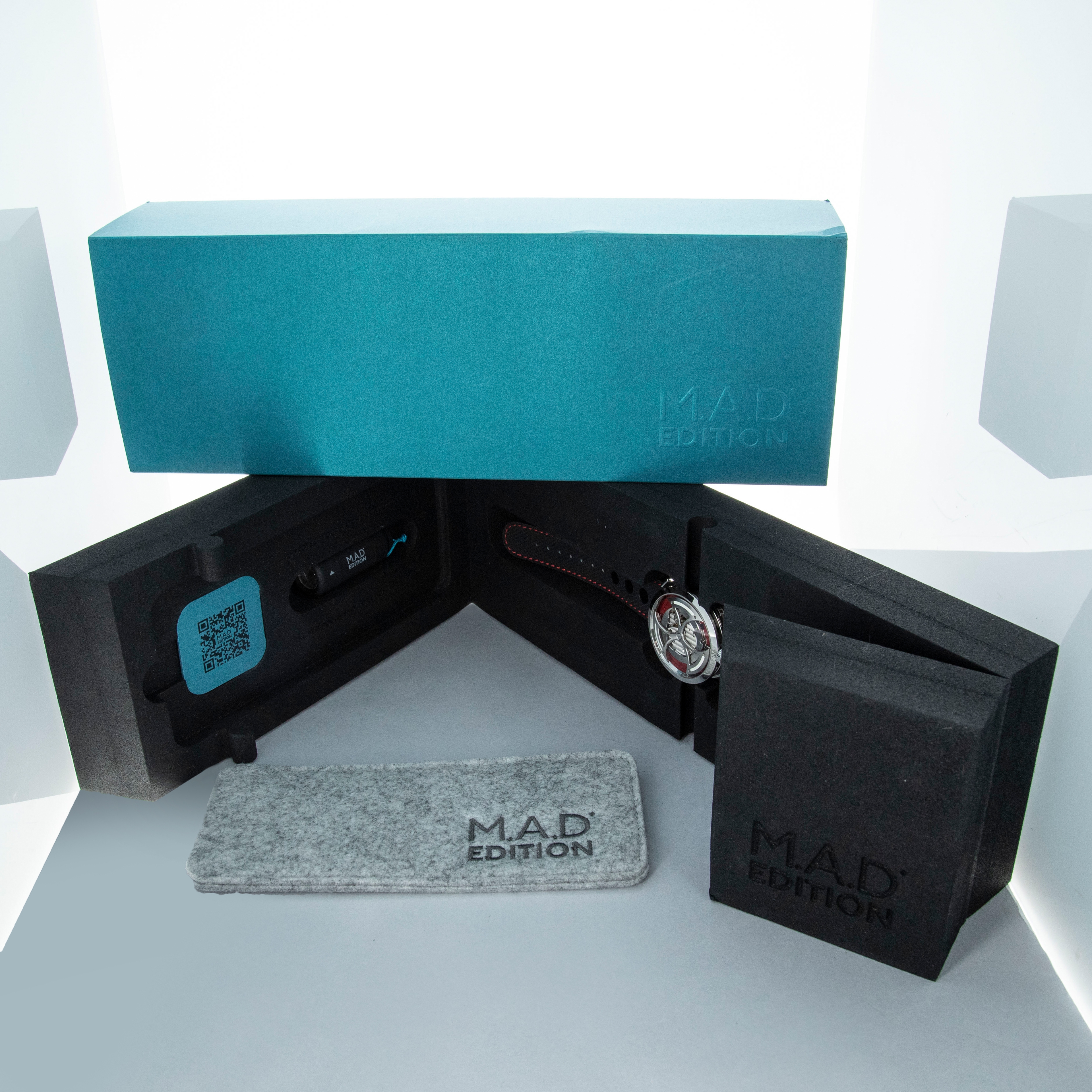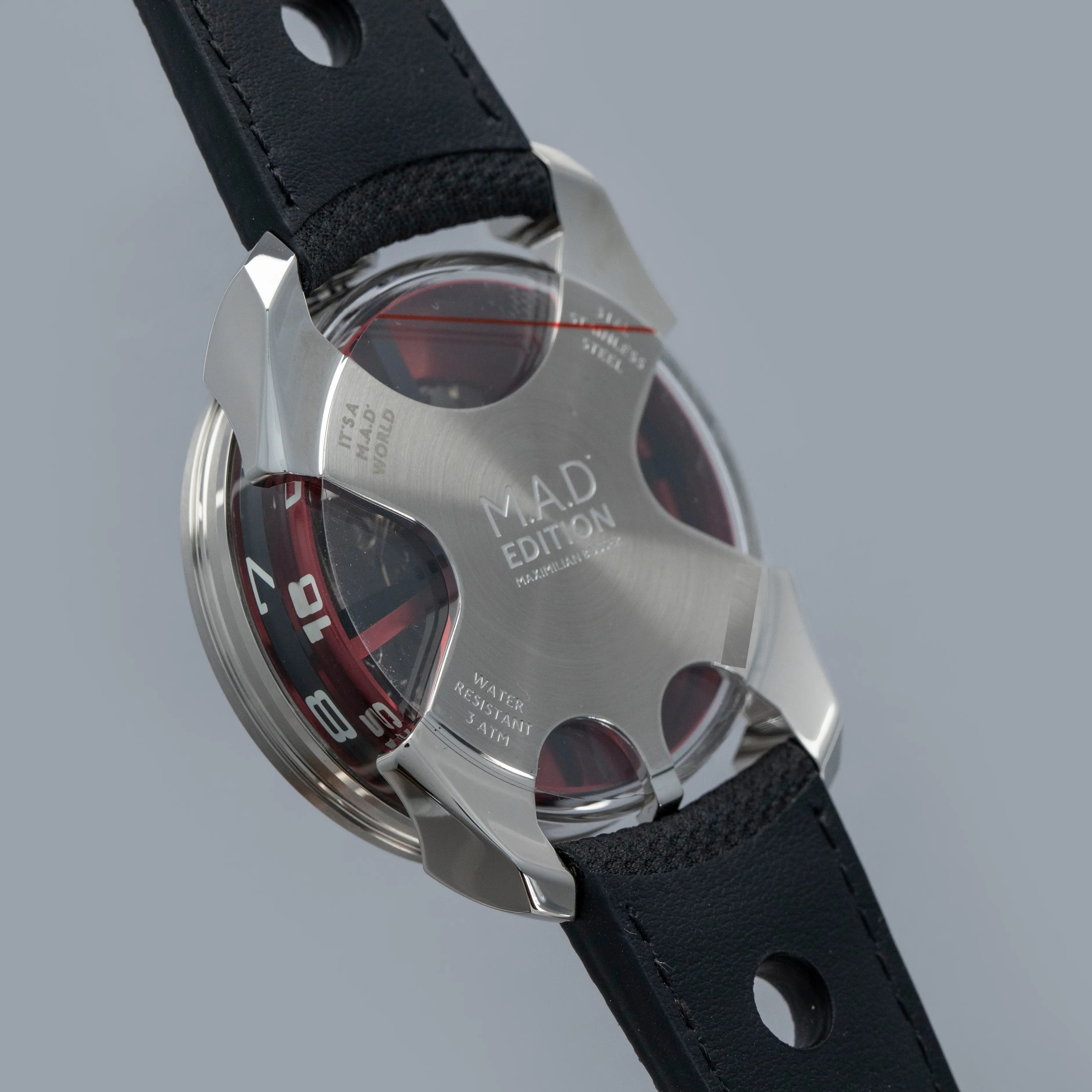 An incredibly personal project for Maximilian and his team, the M.A.D. 1 represents the very best of Max's creative talents, and as such is an incredibly unique timepiece of unparalleled value. Furthermore, the red variant demonstrates just how closely Max and his team listens to their customers, with the unprecedented reaction to the blue M.A.D. 1 leading to the commercial launch of the red variant we have here.