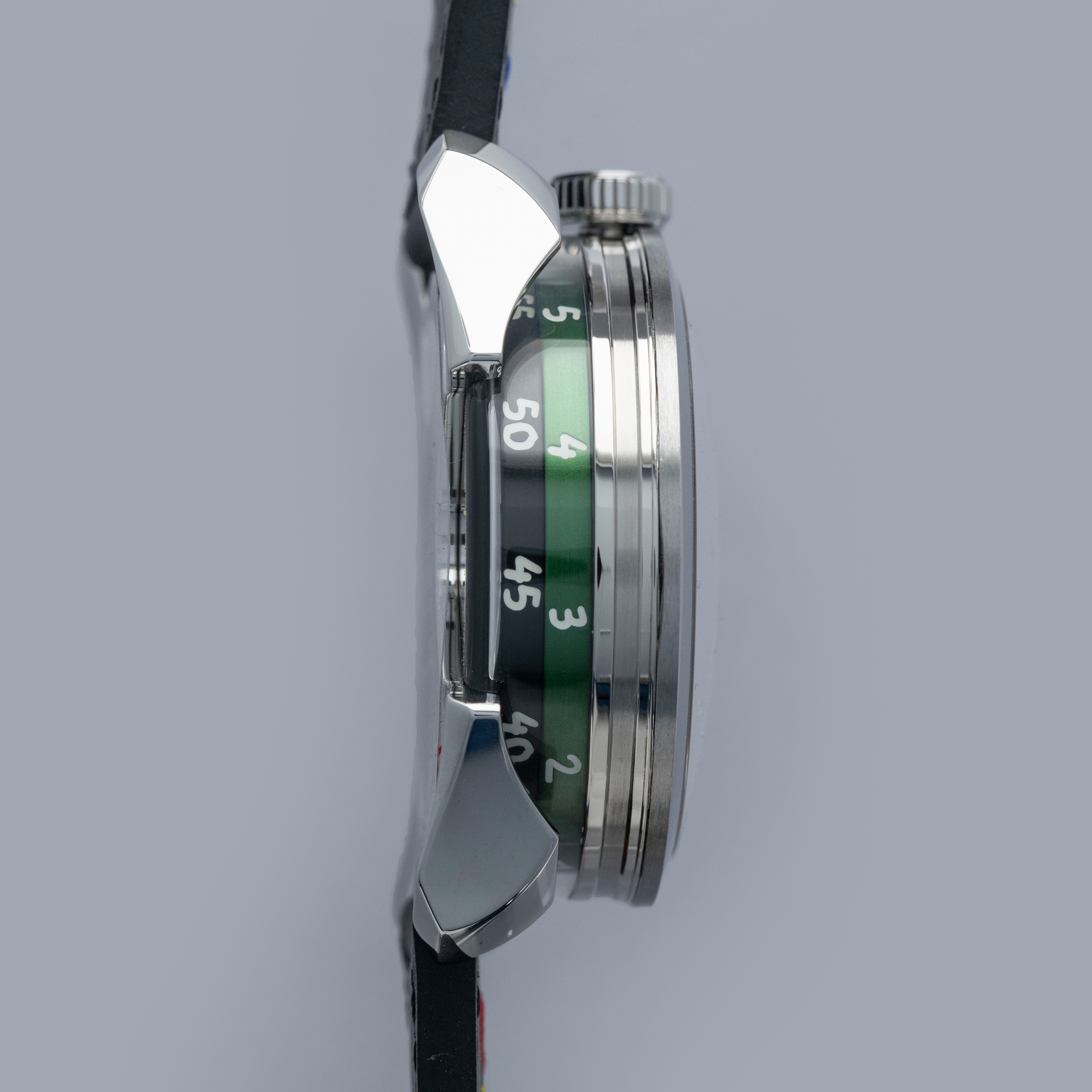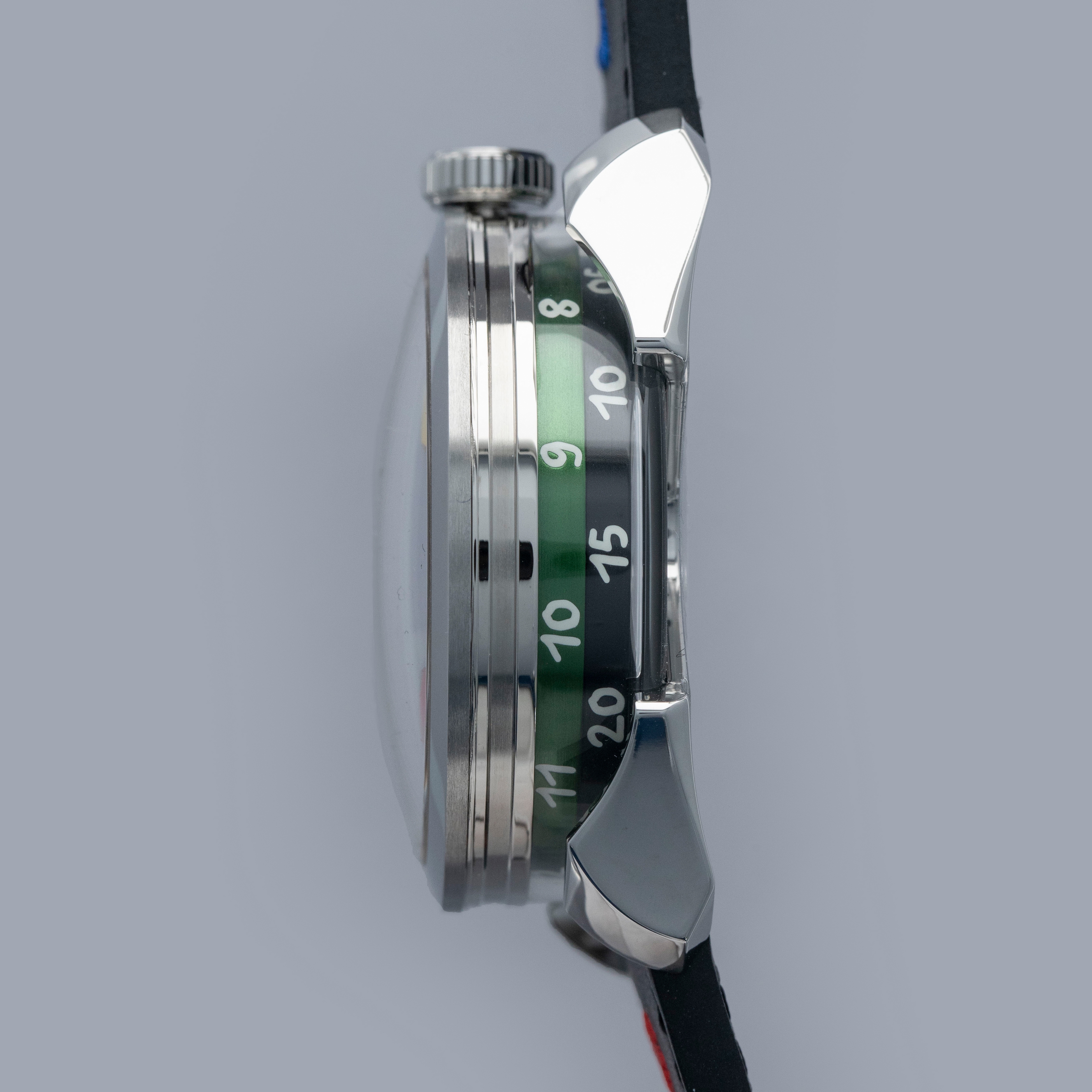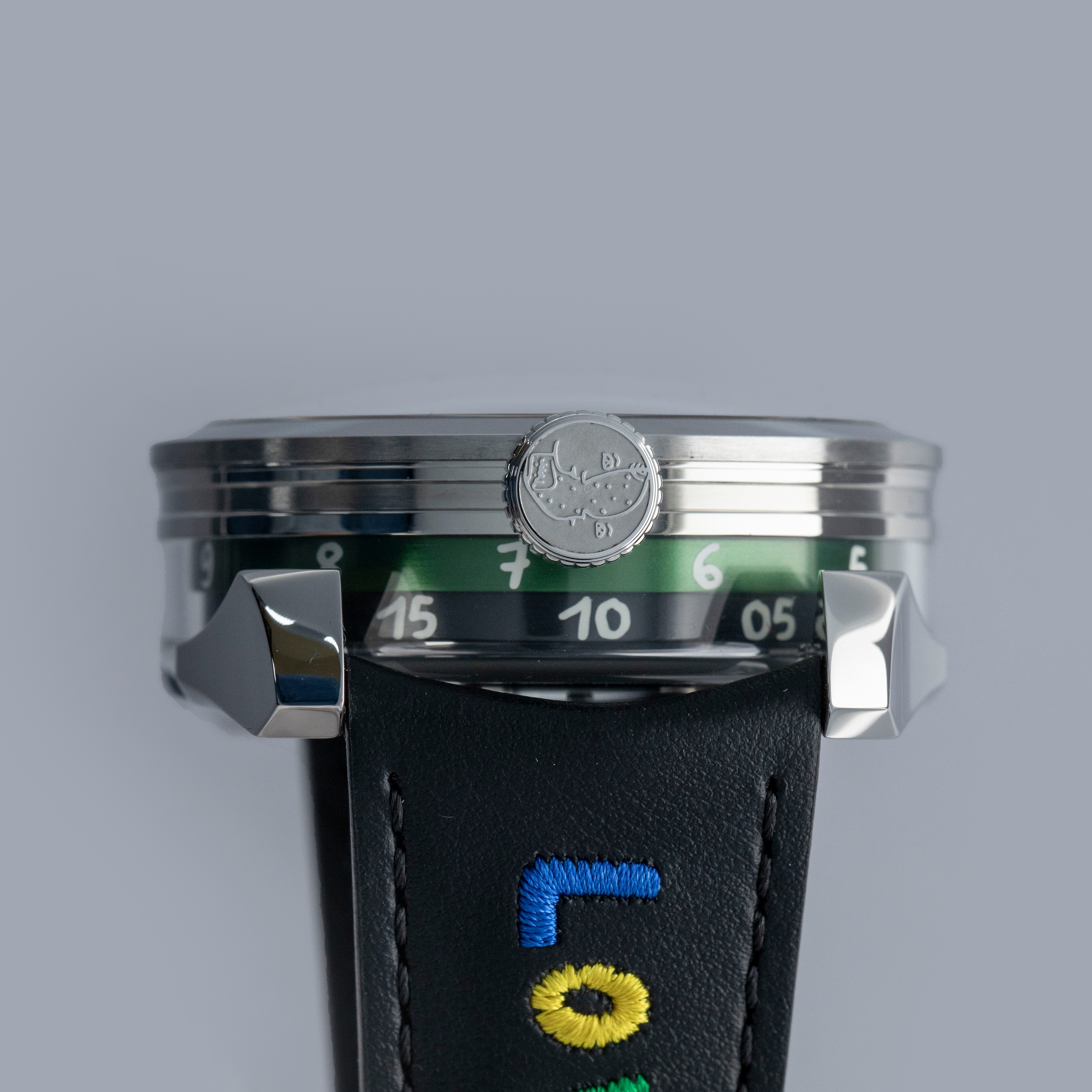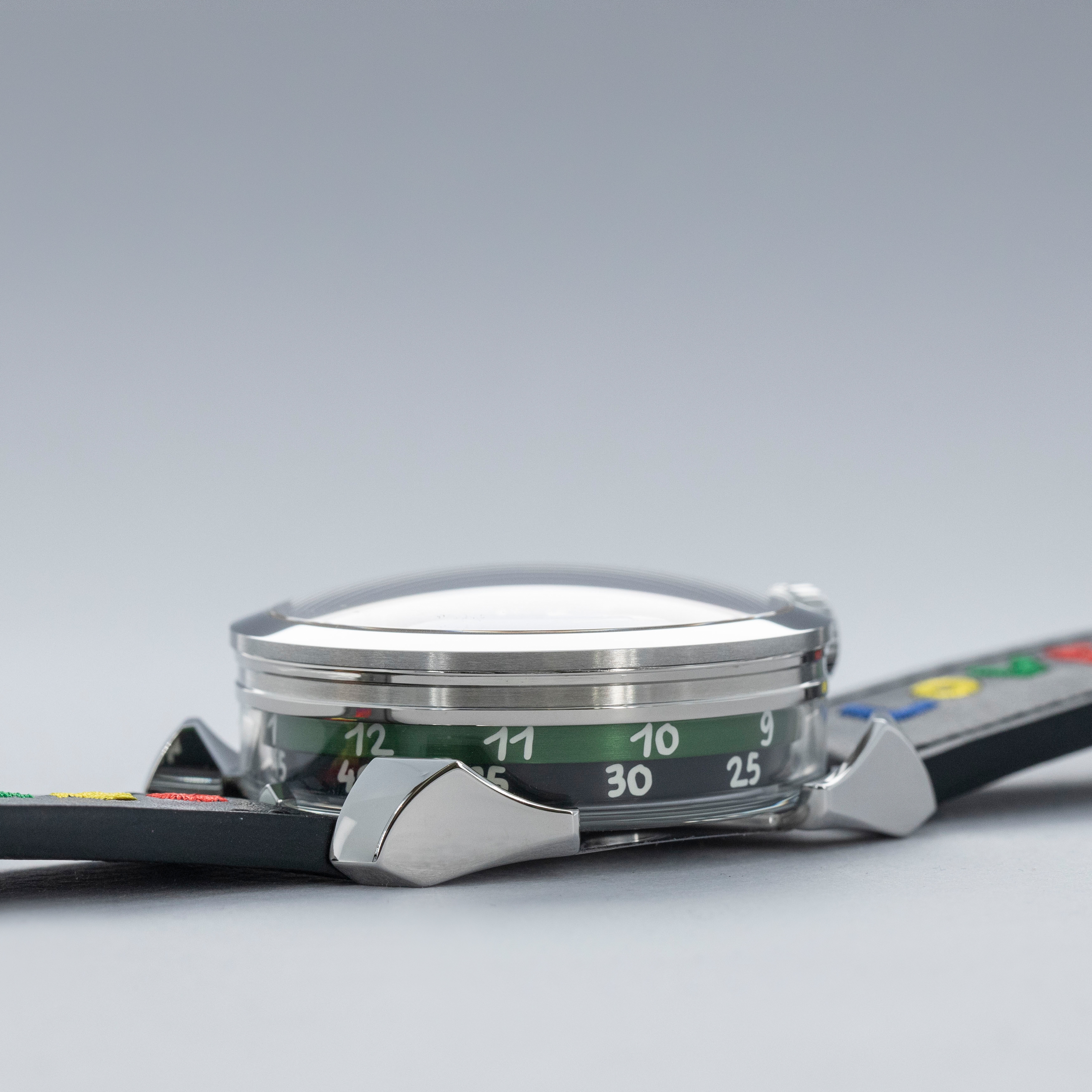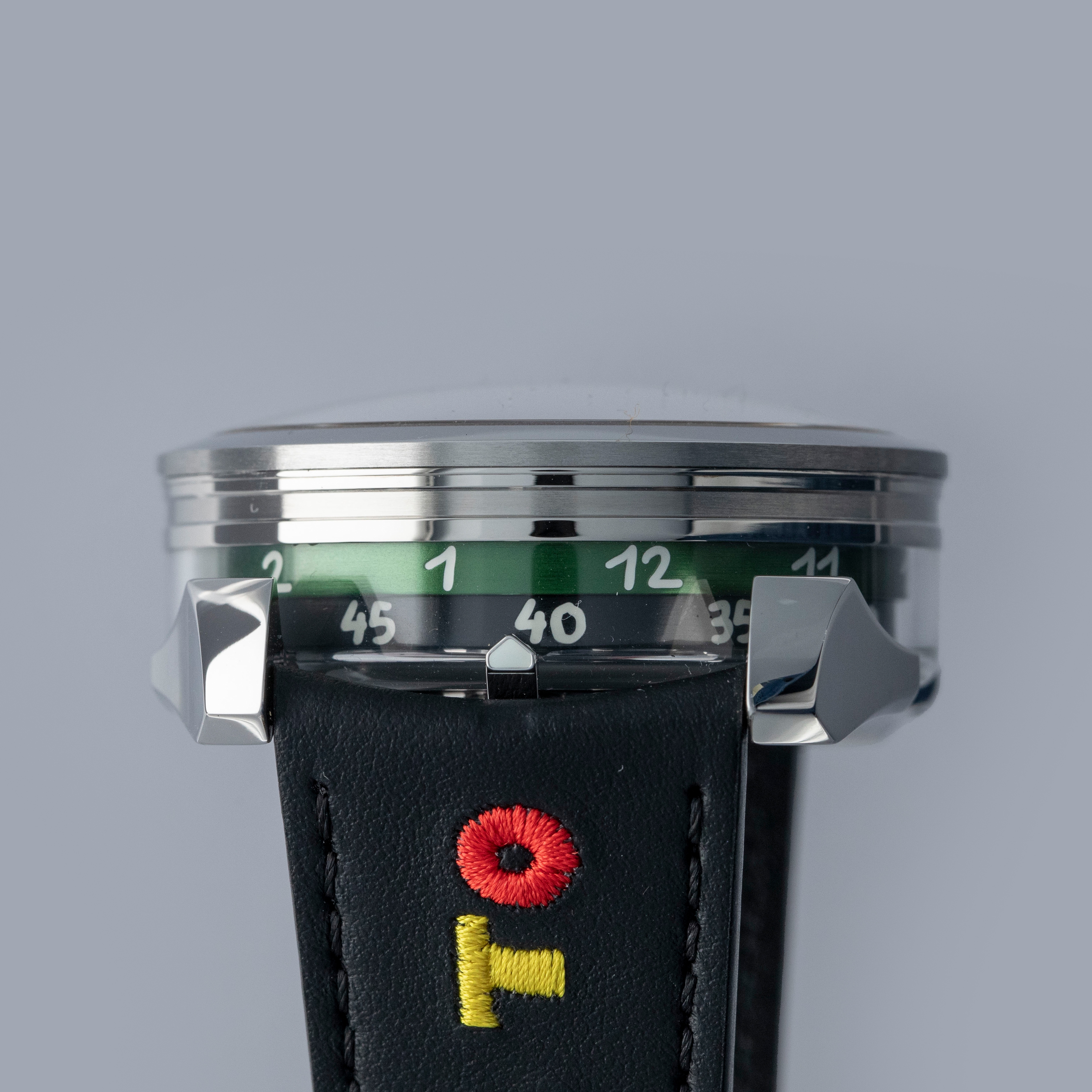 While tall at 18.8mm, it is a practical element of the M.A.D. 1's display with its unique lateral time indication using two aluminum rings that rotate around its stainless steel case to display the hours and minutes.
