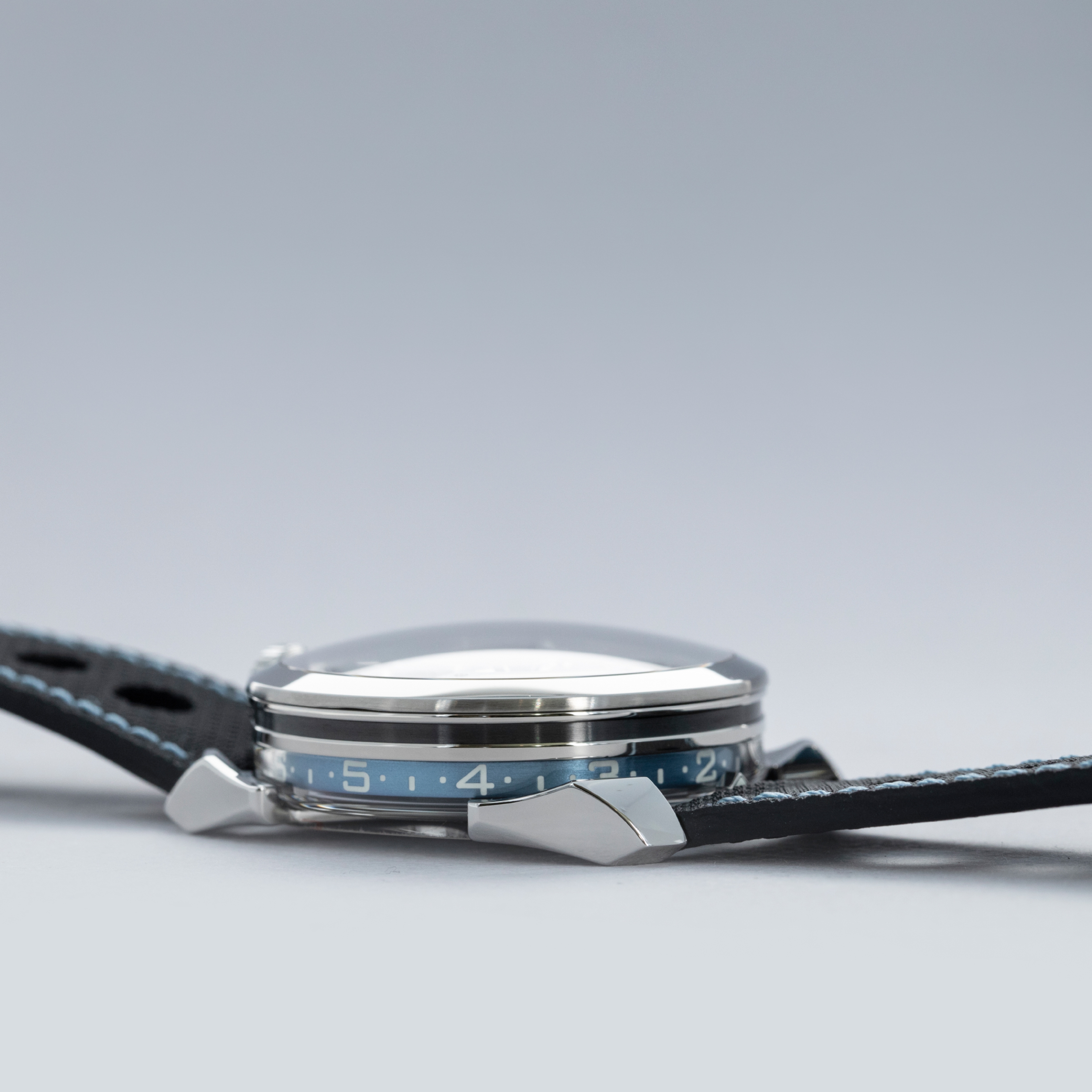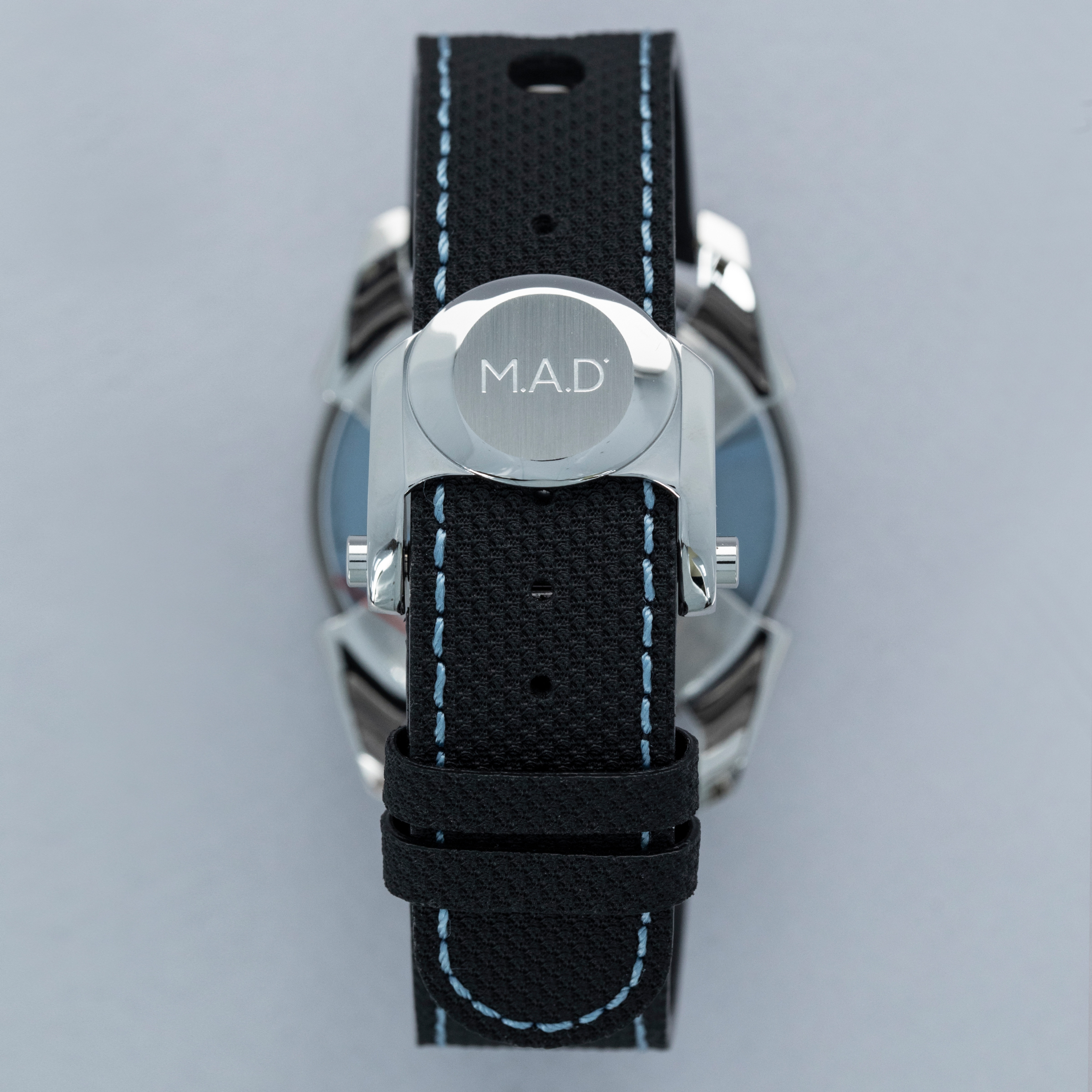 Launched in 2024 ahead of Geneva Watch Days 2024, the model that we have here is an improved version of the M.A.D.1, the M.A.D. 1S (S for “Slim”). Offered in two colorways, purple and blue, the example that we have here is the blue version, which was offered to the public via the same raffle system as previous M.A.D 1 models. The purple variant was offered only to members of the ‘Tribe’, which are friends, family, and VIPs of the brand. Featuring the same overarching design and time display, the M.A.D. 1S swaps the 18.8mm tall profile of the M.A.D. 1 for a much slimmer 15mm – a total saving of 3.8mm that makes the watch far more wearable. This was made possible by swapping the Miyota cal. 821A that powers the M.A.D. 1 for a new movement, the La Joux-Perret cal. G101, a movement that didn't exist when the M.A.D. 1 was launched.