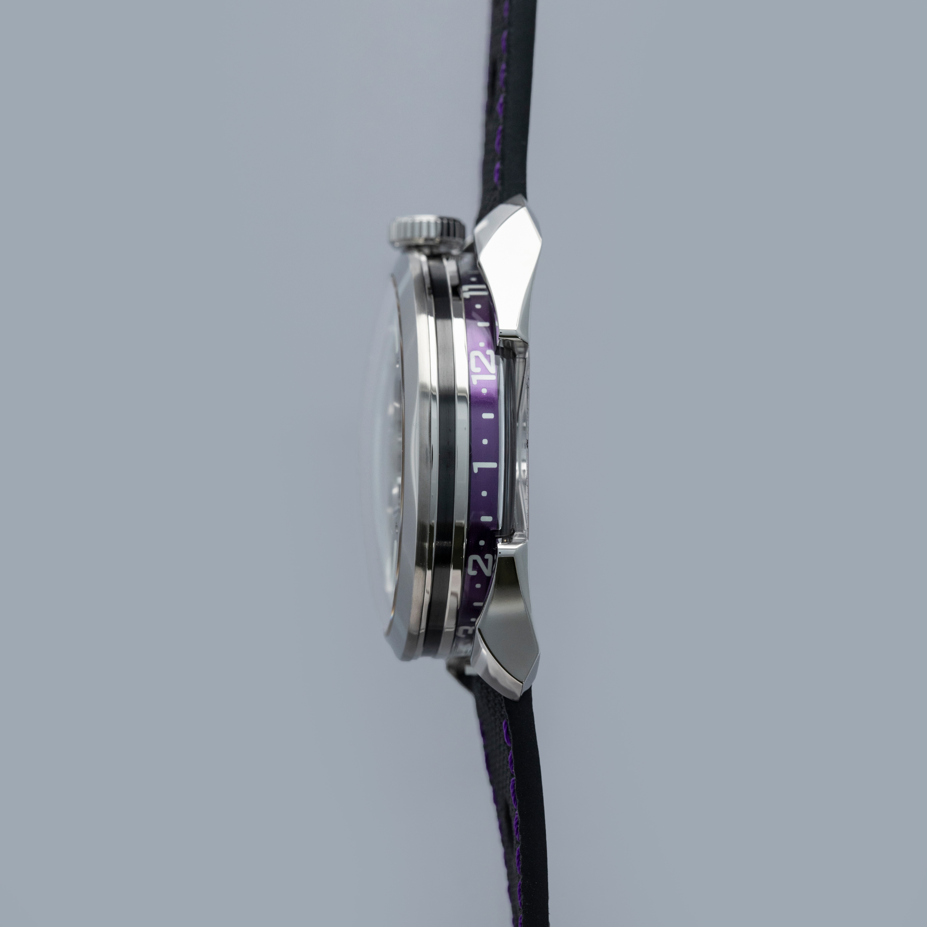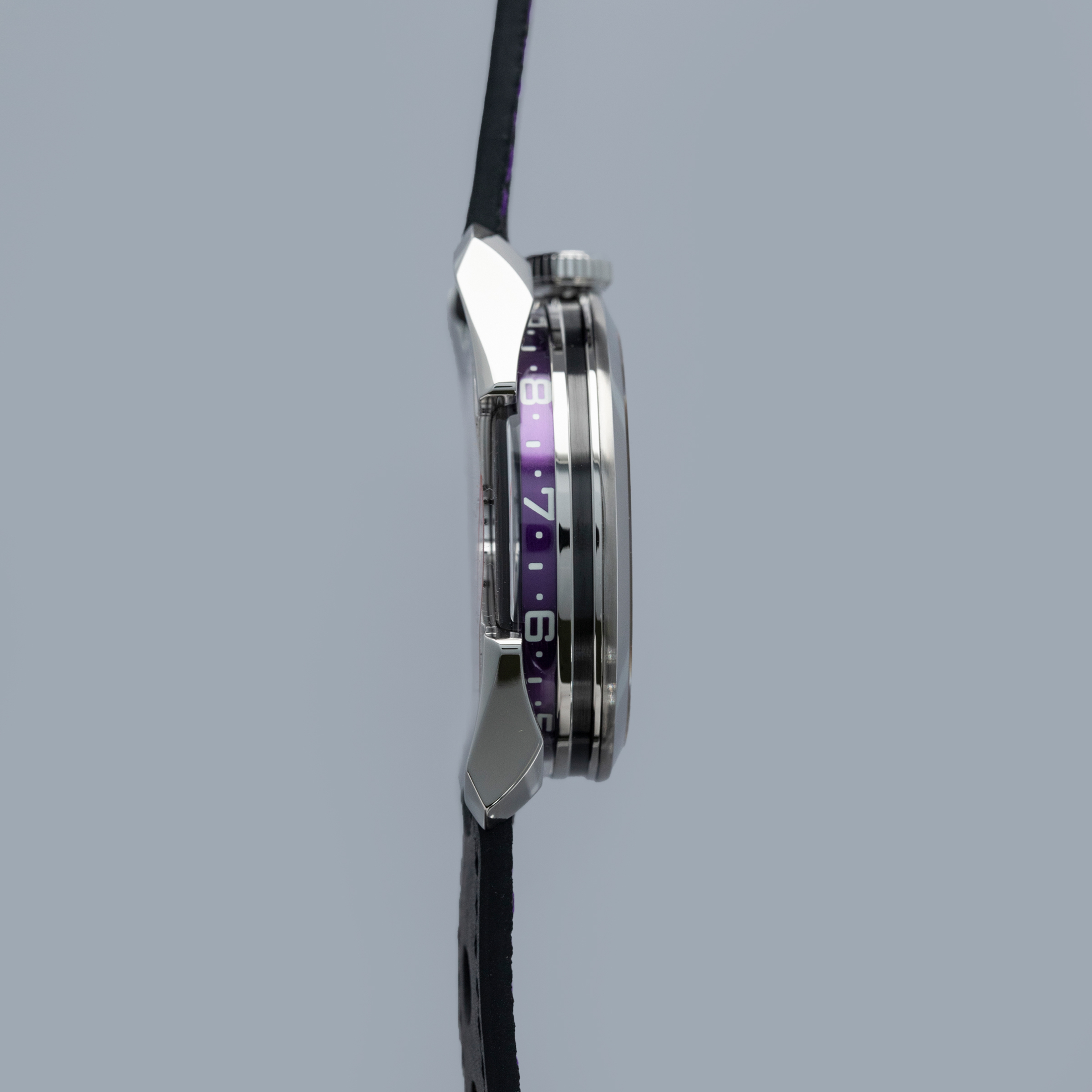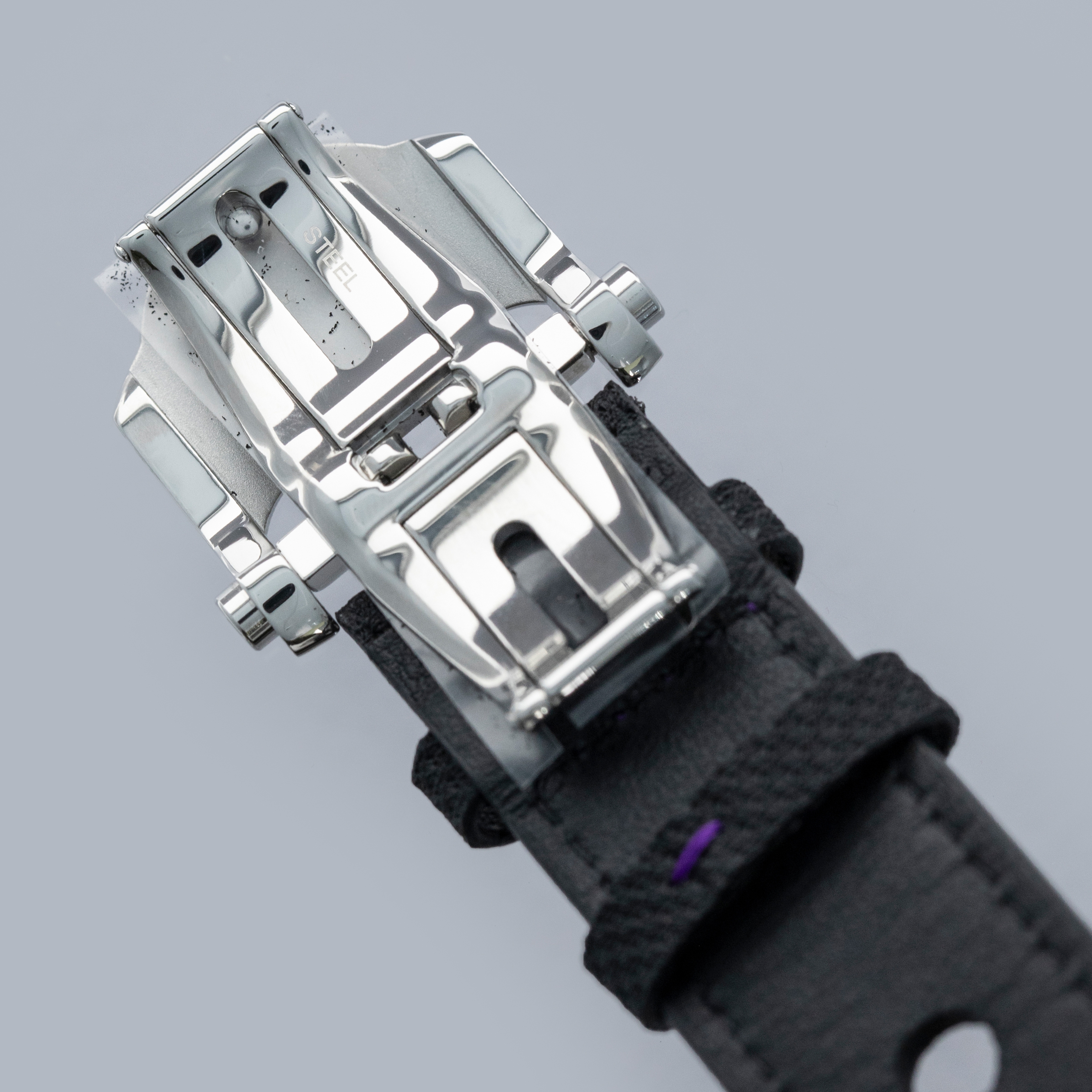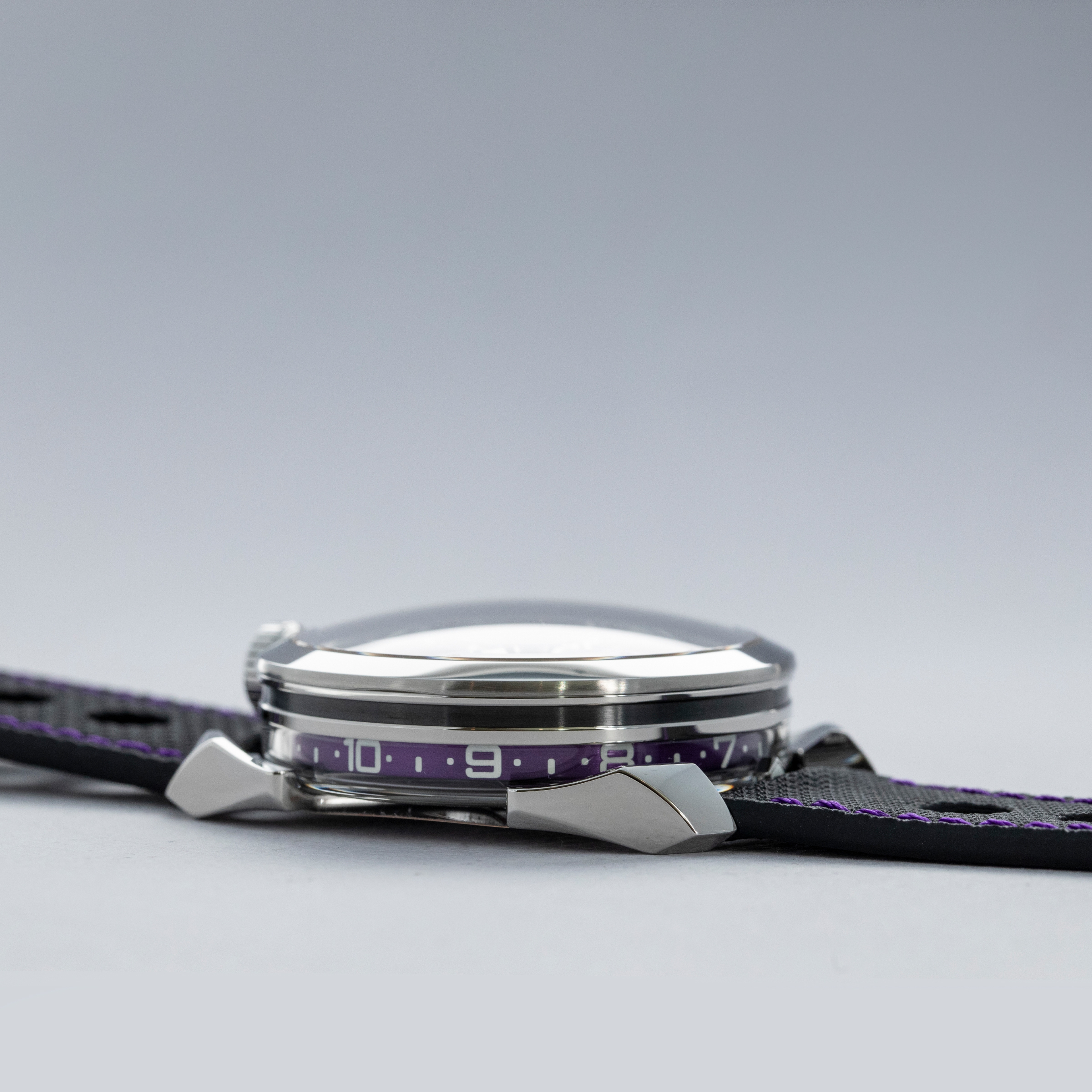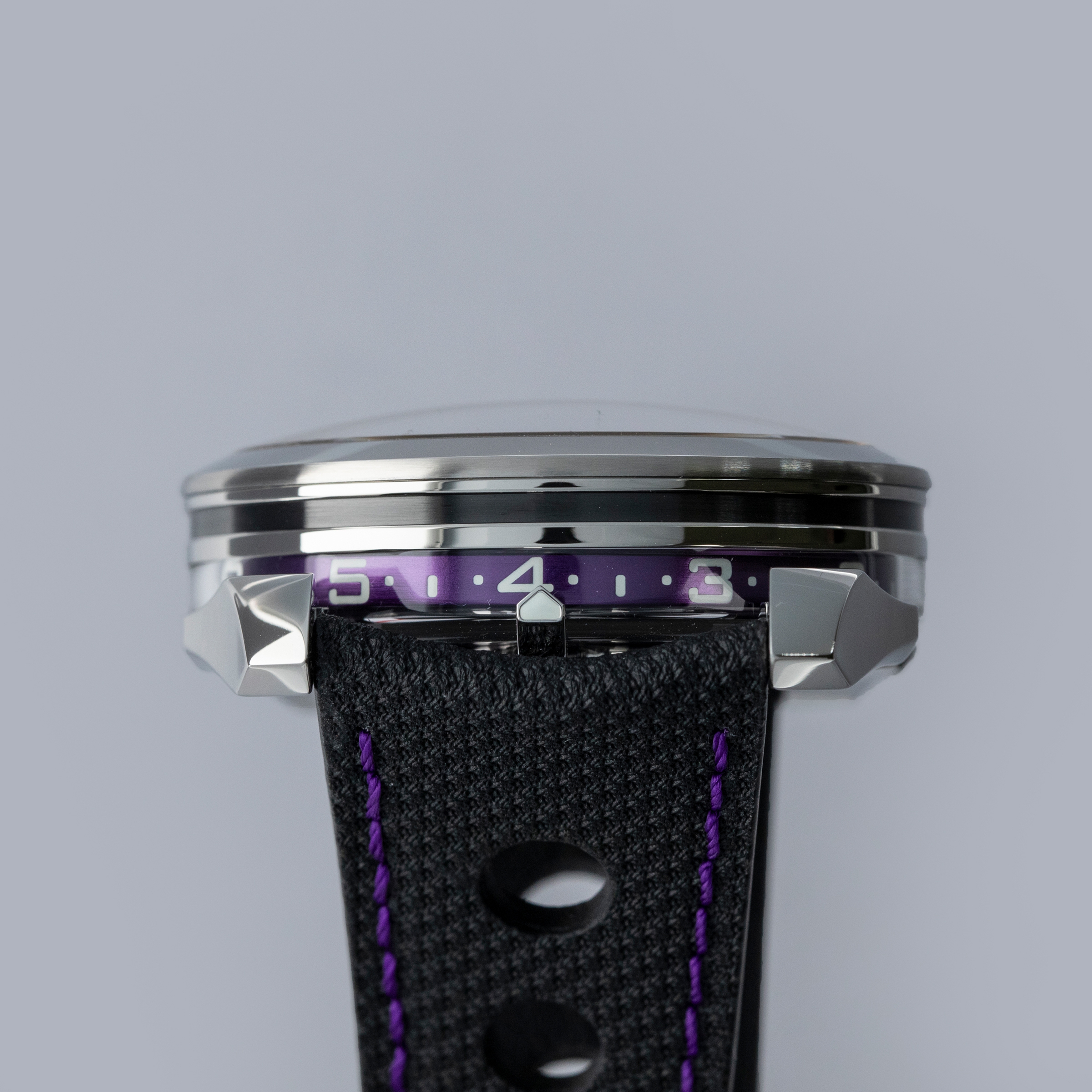 Launched in 2024 ahead of Geneva Watch Days 2024, the model that we have here is an improved version of the M.A.D.1, the M.A.D. 1S (S for “Slim”). Offered in two colorways, purple and blue, the example that we have here is the purple version, which was offered only to members of the ‘Tribe’, which are friends, family, and VIPs of the brand. Featuring the same overarching design and time display, the M.A.D. 1S swaps the 18.8mm tall profile of the M.A.D. 1 for a much slimmer 15mm – a total saving of 3.8mm that makes the watch far more wearable. This was made possible by swapping the Miyota cal. 821A that powers the M.A.D. 1 for a new movement, the La Joux-Perret cal. G101, a movement that didn't exist when the M.A.D. 1 was launched.