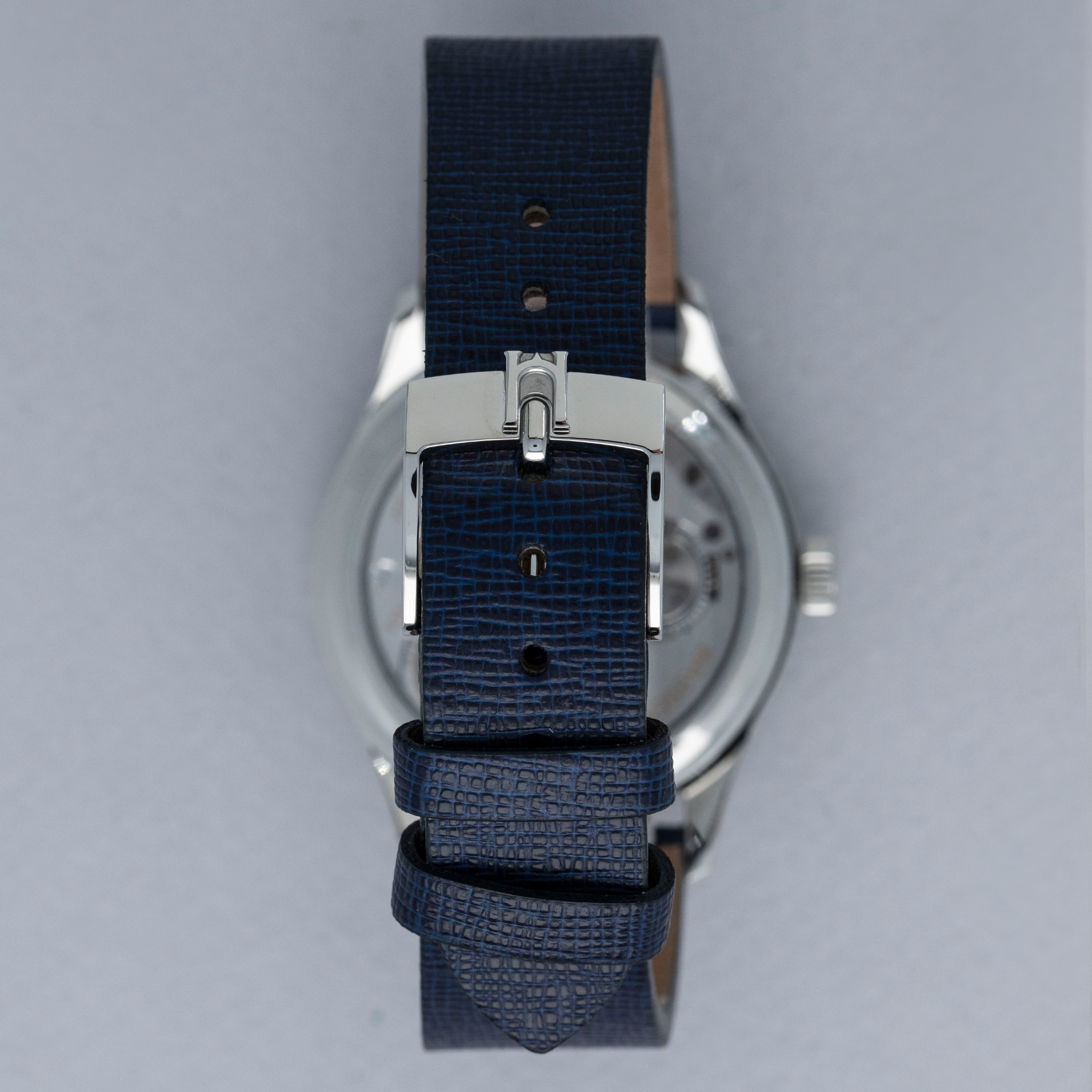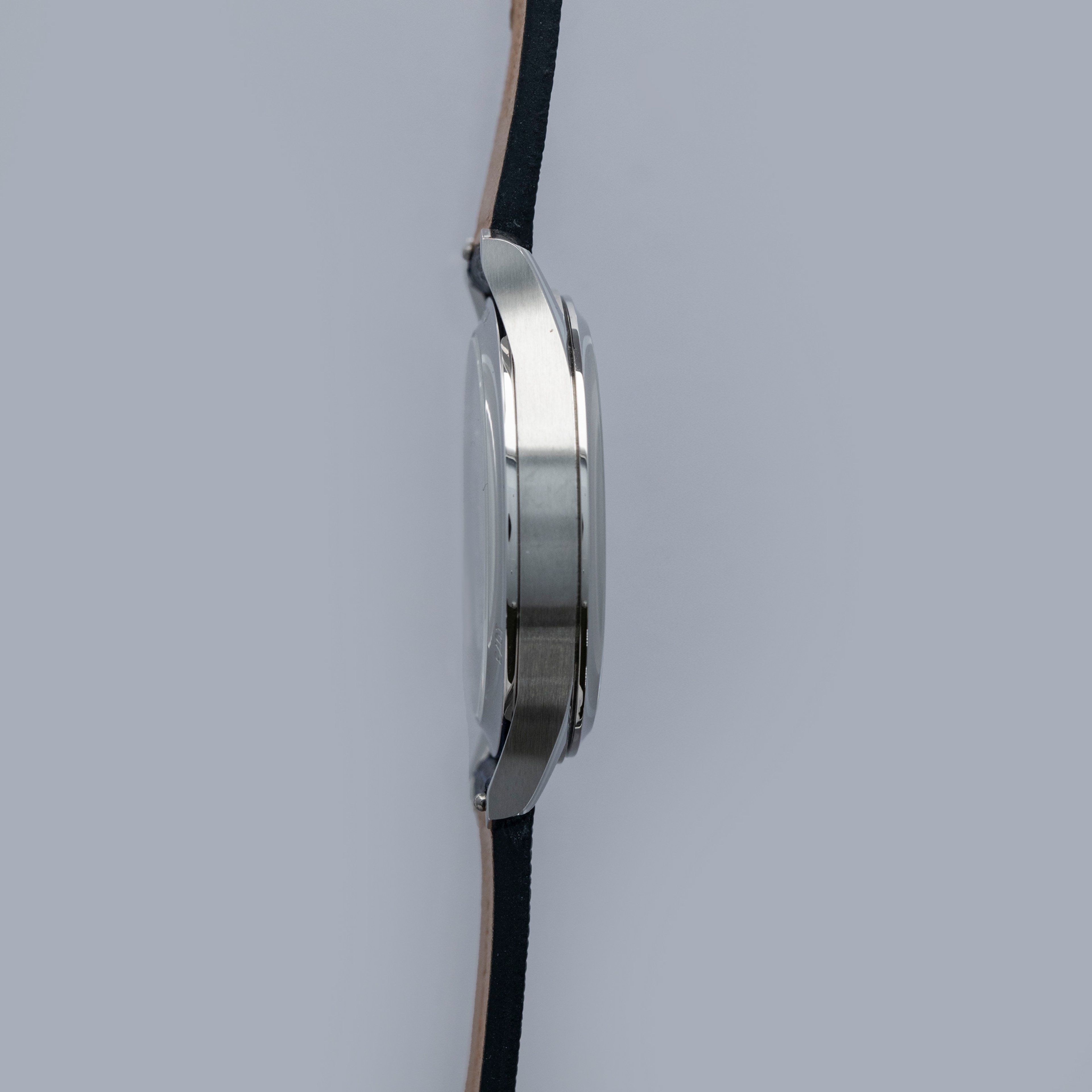The watch is in like-new condition, with only light handling marks visible. The watch is fitted with its original strap and buckle, also in like-new condition. It comes complete with box and papers and the optional HSNY chronometer certification.