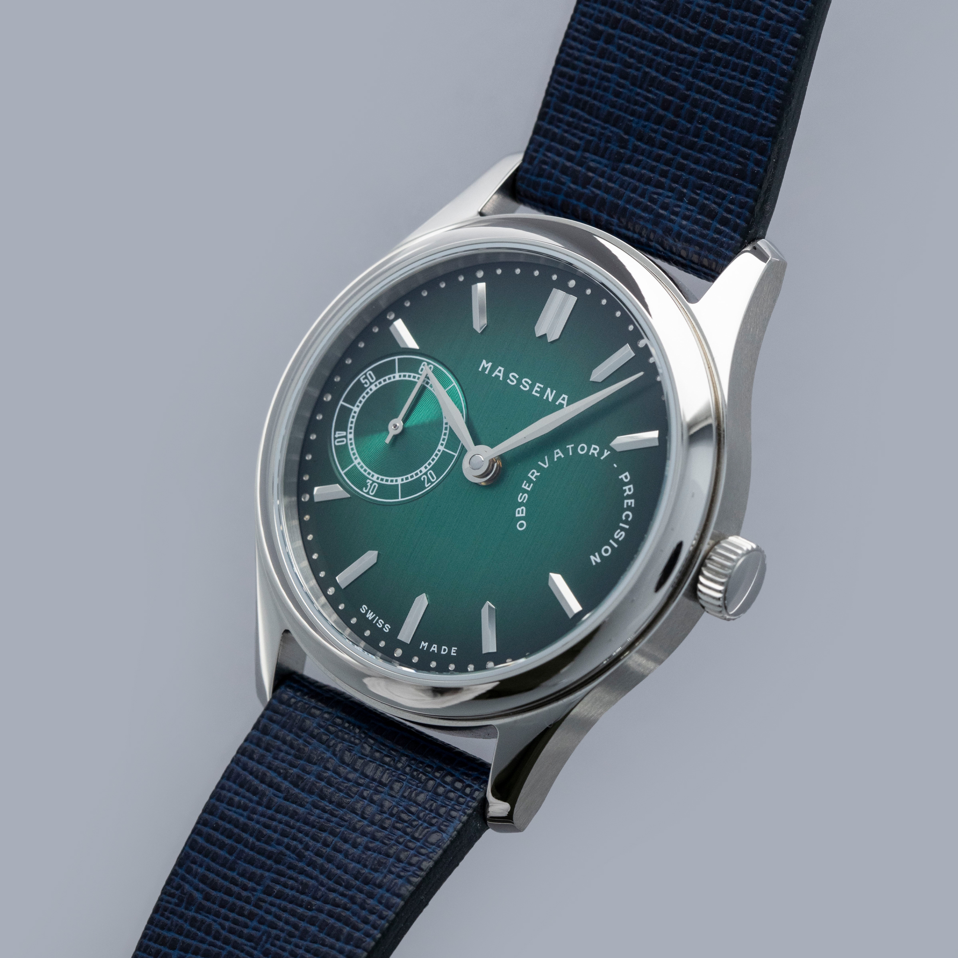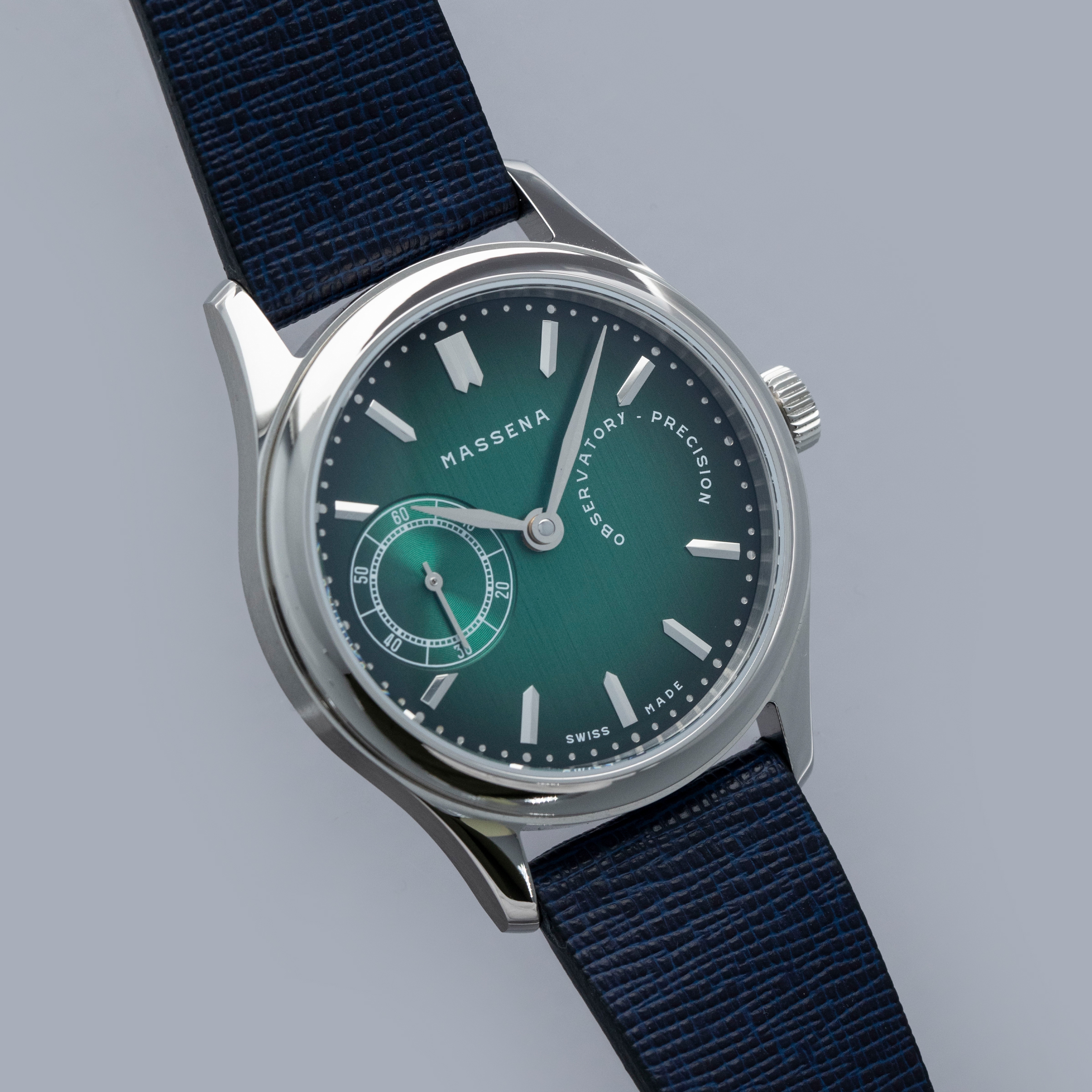 Launched in 2024 as the second collaborative release between horological creative studio Massena Lab and Raul Pages, the independent watchmaker, the watch that we have here is the limited edition of just 99 pieces Massena Lab x Raul Pages Absinthe. Made of stainless steel and measuring 38.5mm in diameter with a thickness of only 10mm, the Absinthe comes with a stunning vertically brushed emerald green dial with a fumé effect, with its green color leaning towards a dark forest green tone along the periphery and a bright green in the center. Using inscriptions to balance its running seconds subdial at 9 o’clock, the Absinthe is a delightfully legible timepiece, and delightfully stylish. Powered by the Raul Pages x Massena Lab-developed manual-wind cal. M690, the Absinthe is a technically astute timepiece that matches its stylish good looks with some impressive watchmaking.
