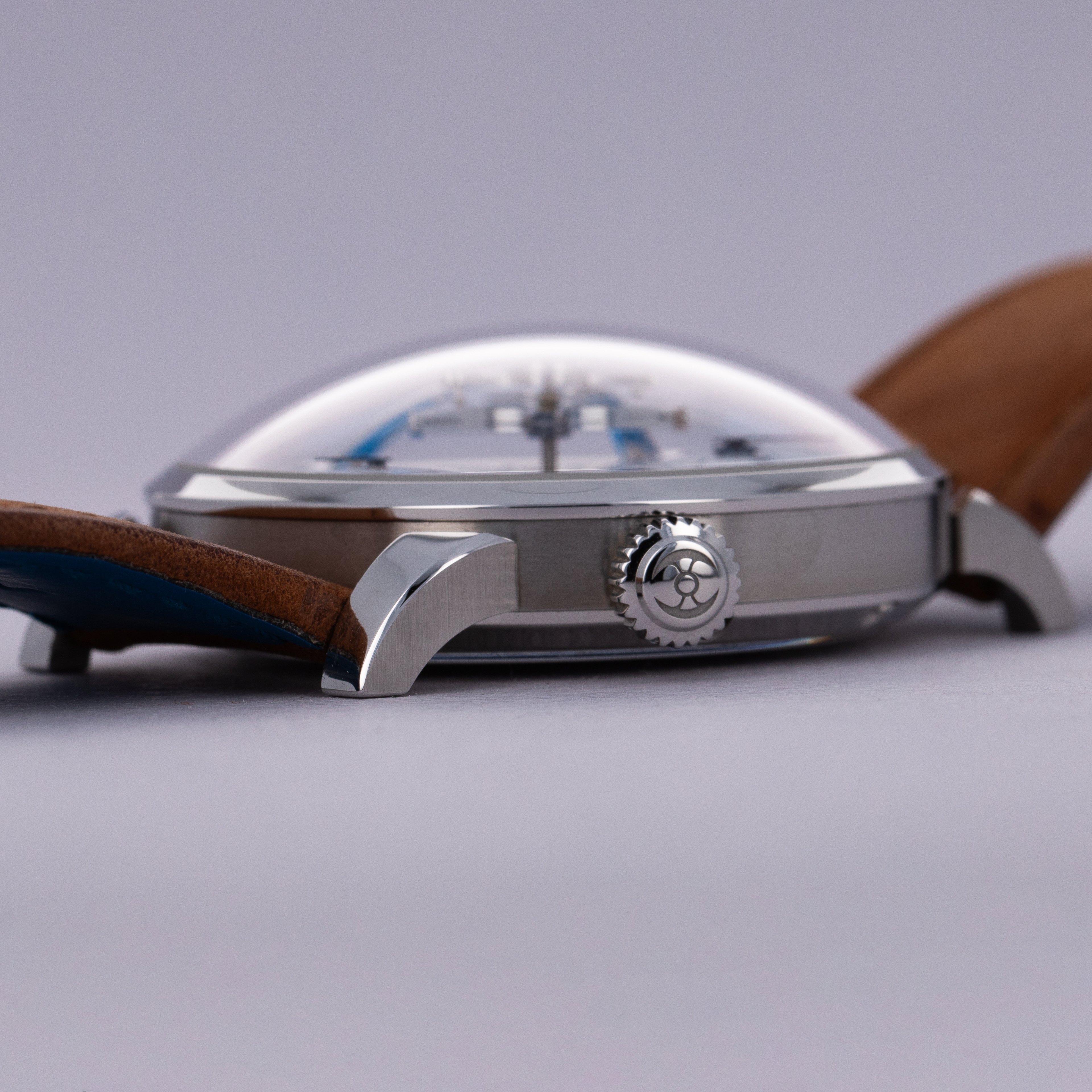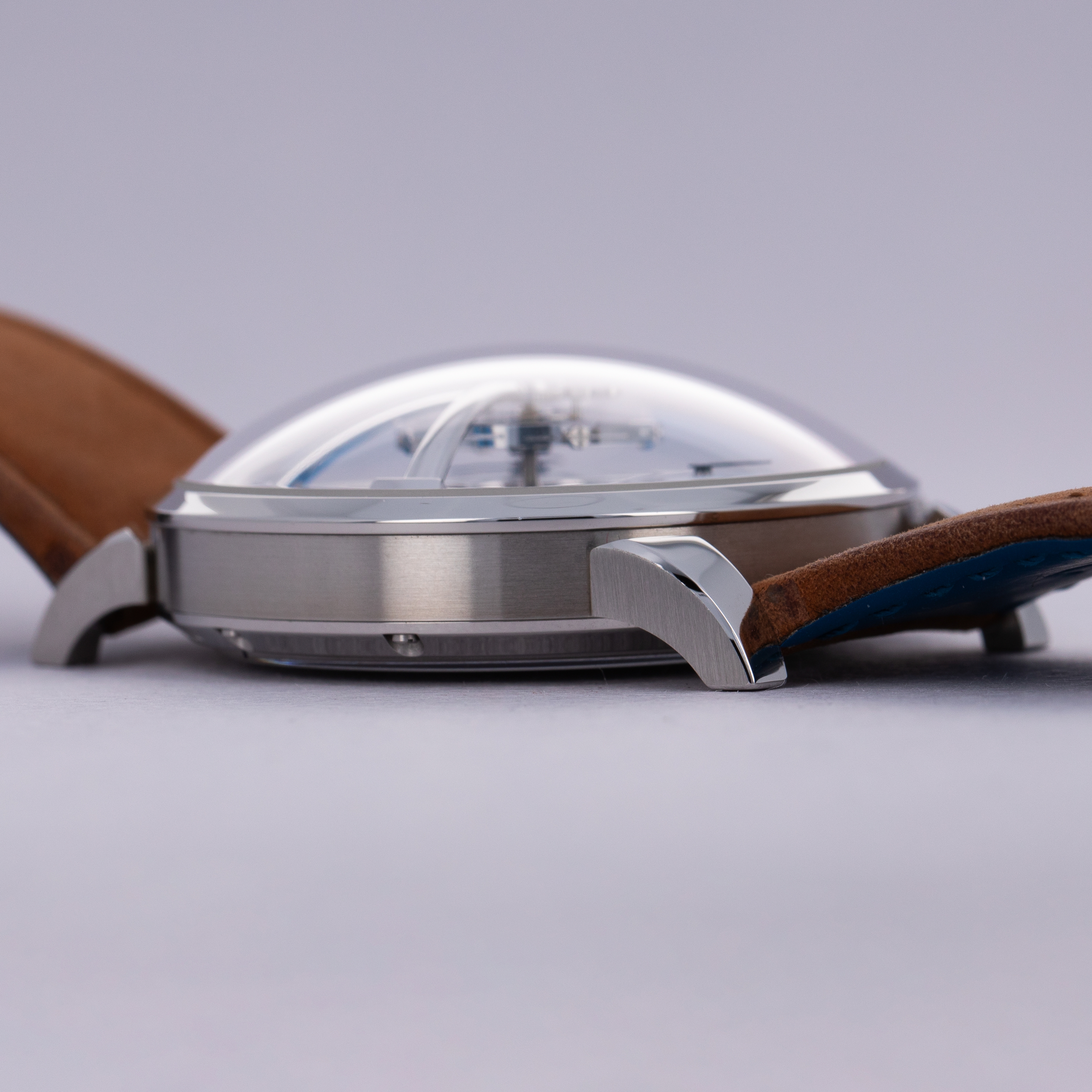 While its 40mm stainless steel case might look rather unorthodox as a result of its large domed sapphire crystal, the LM101 rather neatly on the wrist thanks to its perfectly circular design featuring its crown at 4 o'clock and a thin bezel that keeps it rather compact.