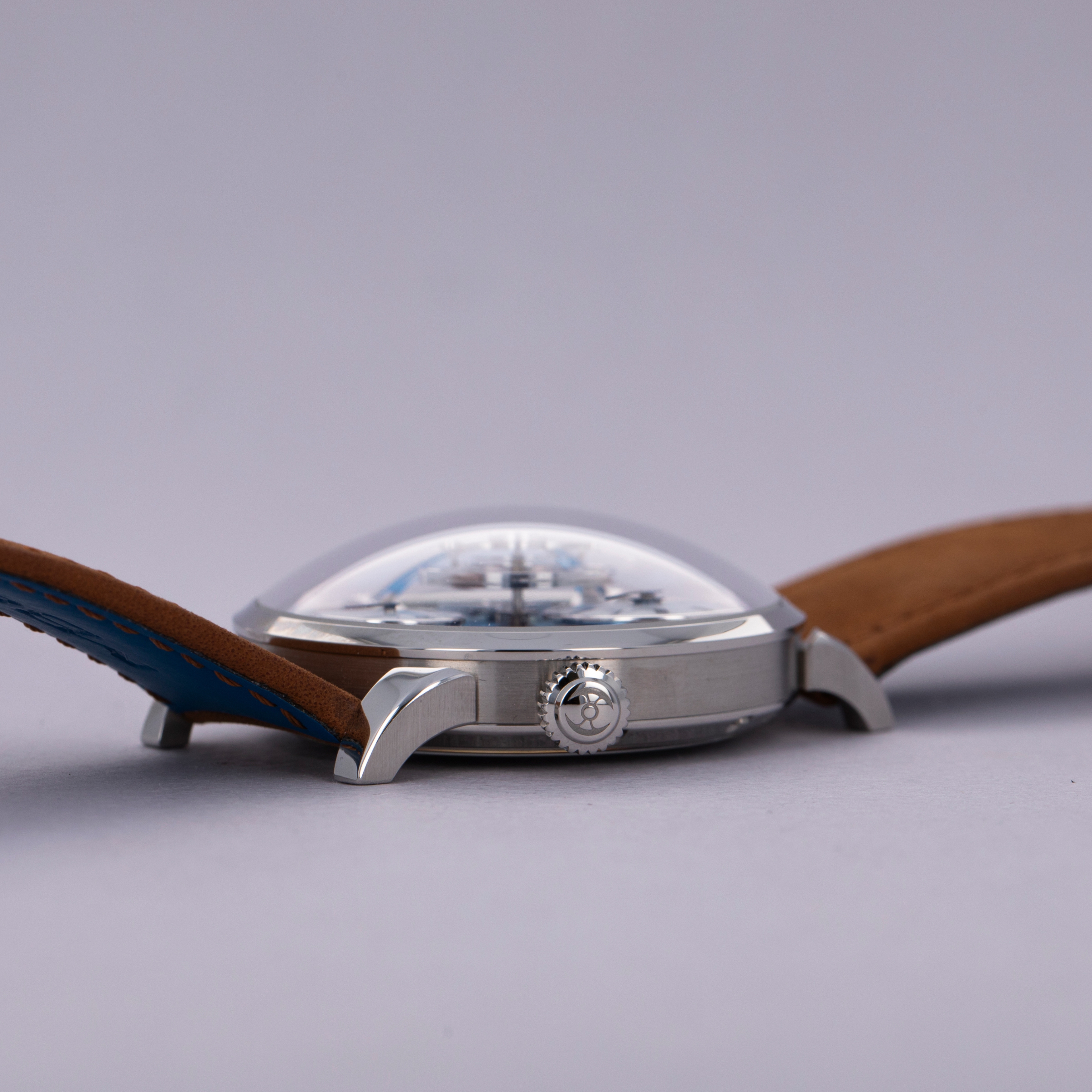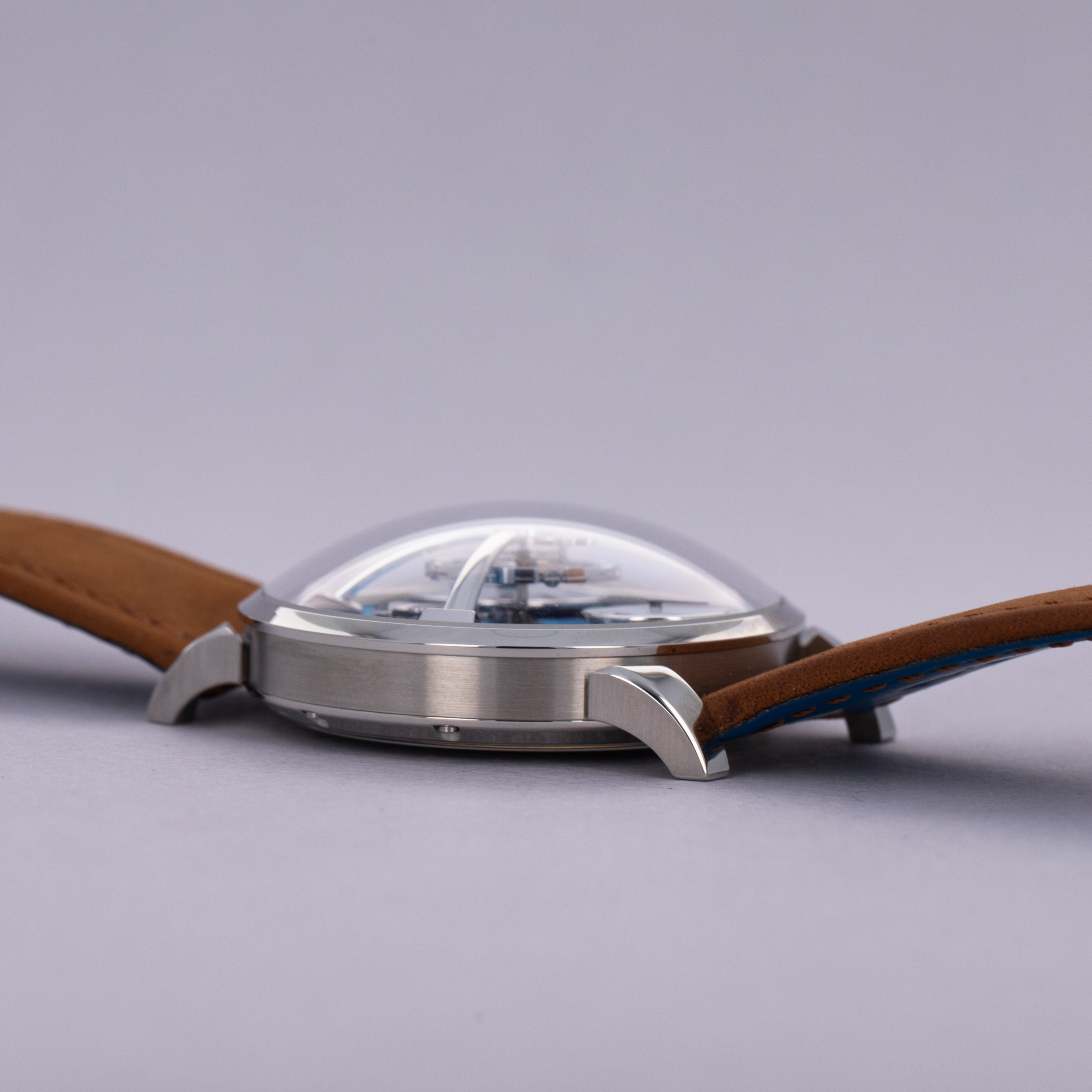 While its 40mm stainless steel case might look rather unorthodox as a result of its large domed sapphire crystal, the LM101 rather neatly on the wrist thanks to its perfectly circular design featuring its crown at 4 o'clock and a thin bezel that keeps it rather compact.
