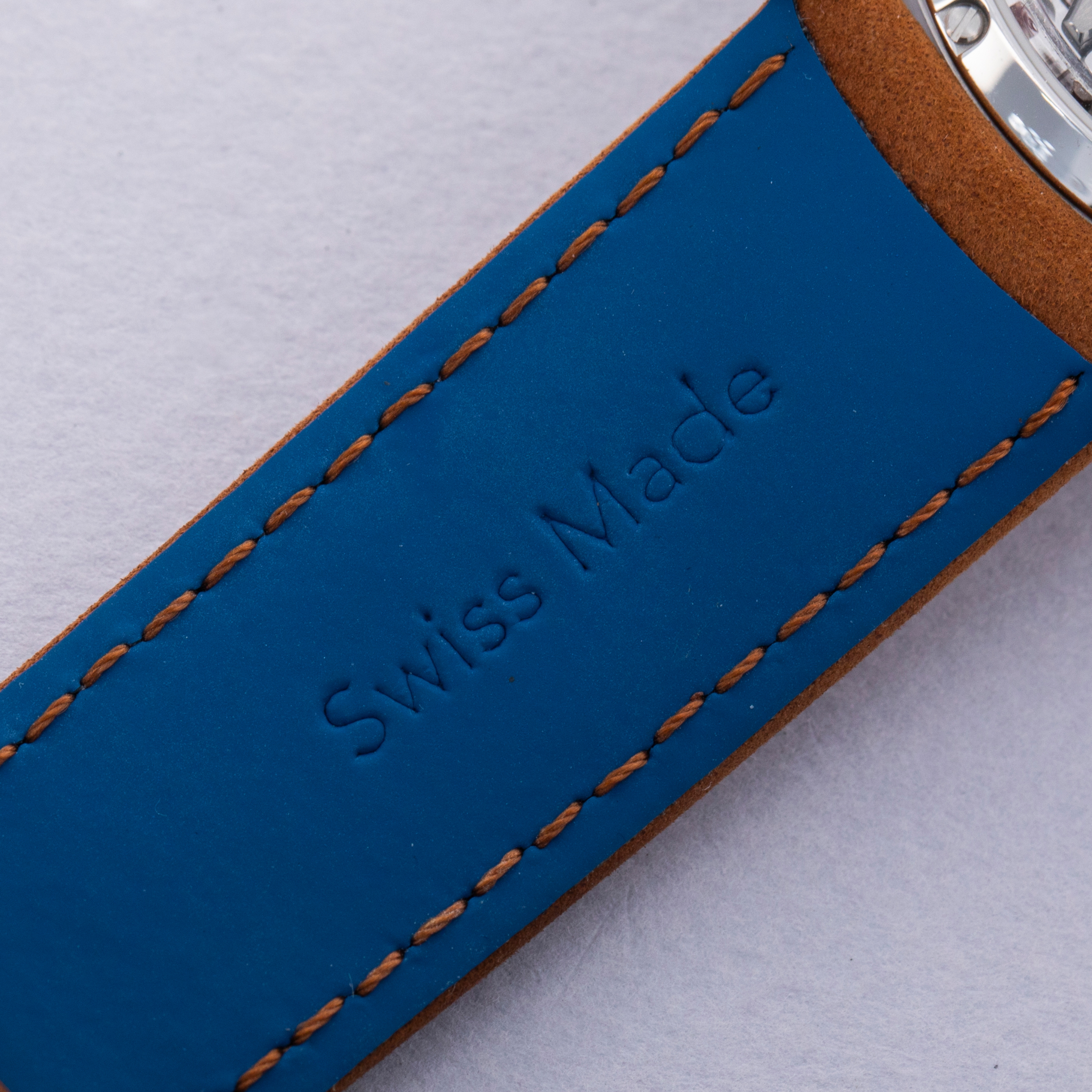 While, strictly speaking, its two dials are the white enamel subdials at 2 and 6 o'clock that house the time display and power reserve indicator, respectively, the LM101's electric blue baseplate makes for a colorful and vibrant backdrop.