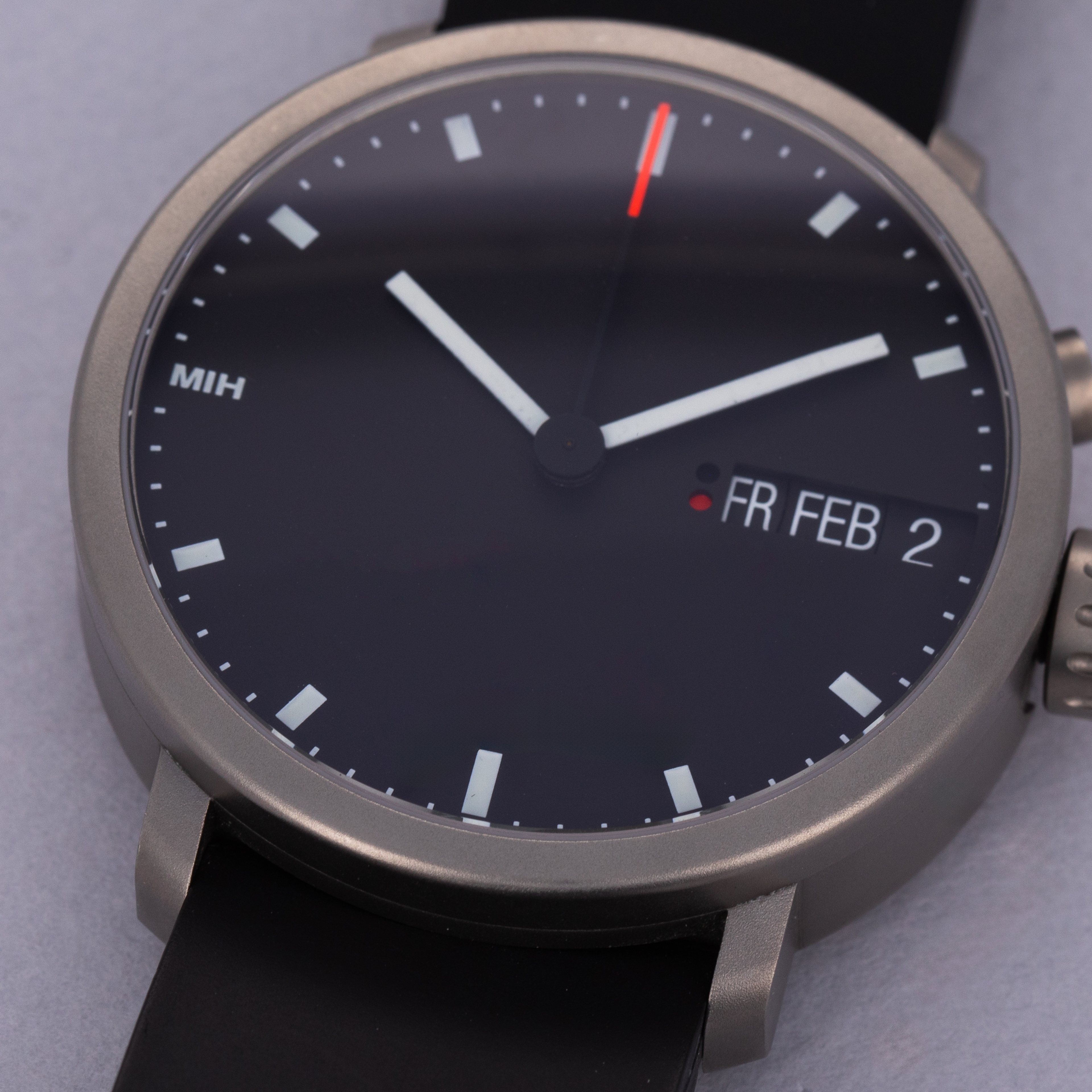 While bulky at 42mm x 15mm, the MIH Watch retains plenty of comfortable wearability thanks to its short lugs and titanium construction that ensures it is light on the wrist.