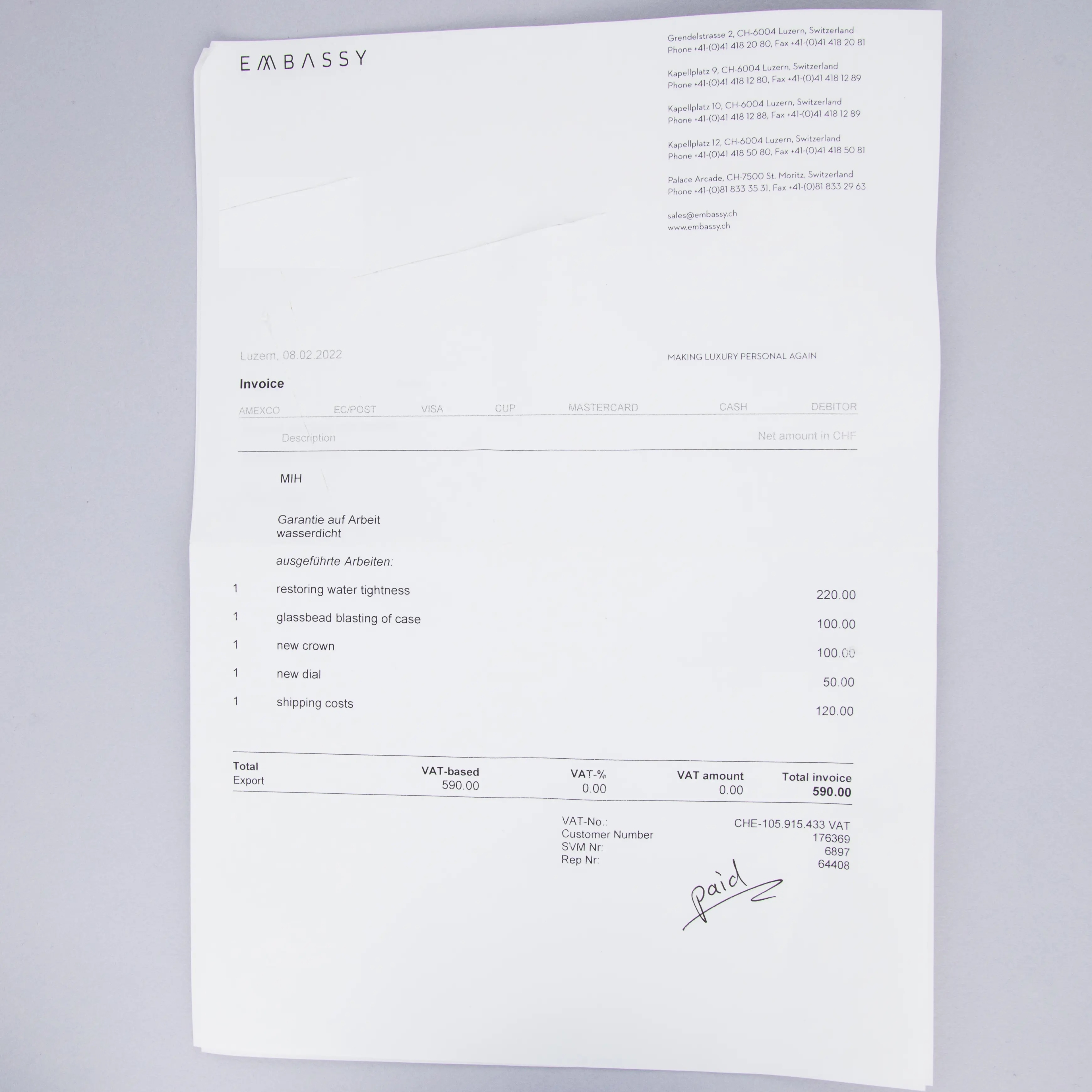 Watch is in near-mint condition. Watch was overhauled and had its case detailed in 2022, and has since acquired little signs of wear.