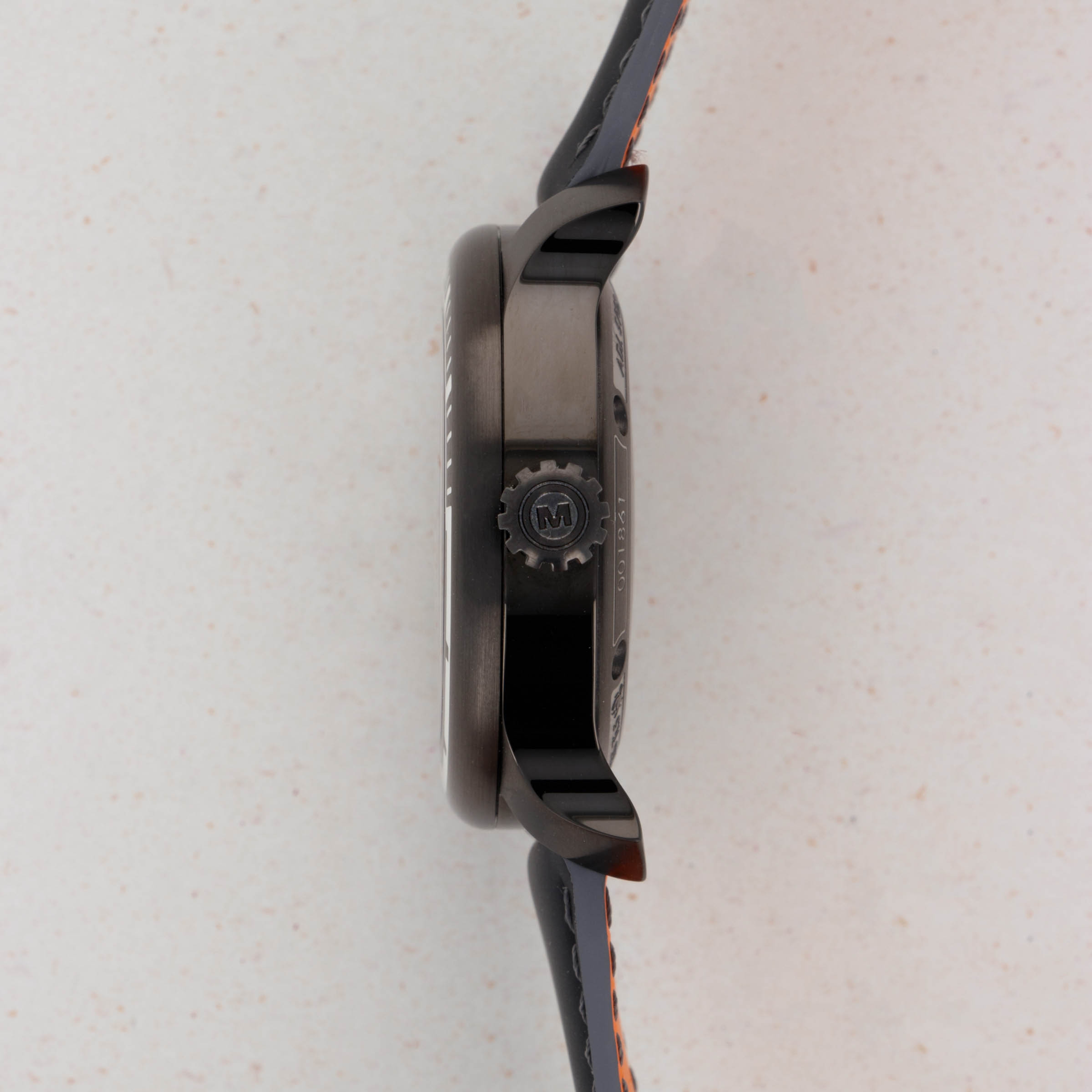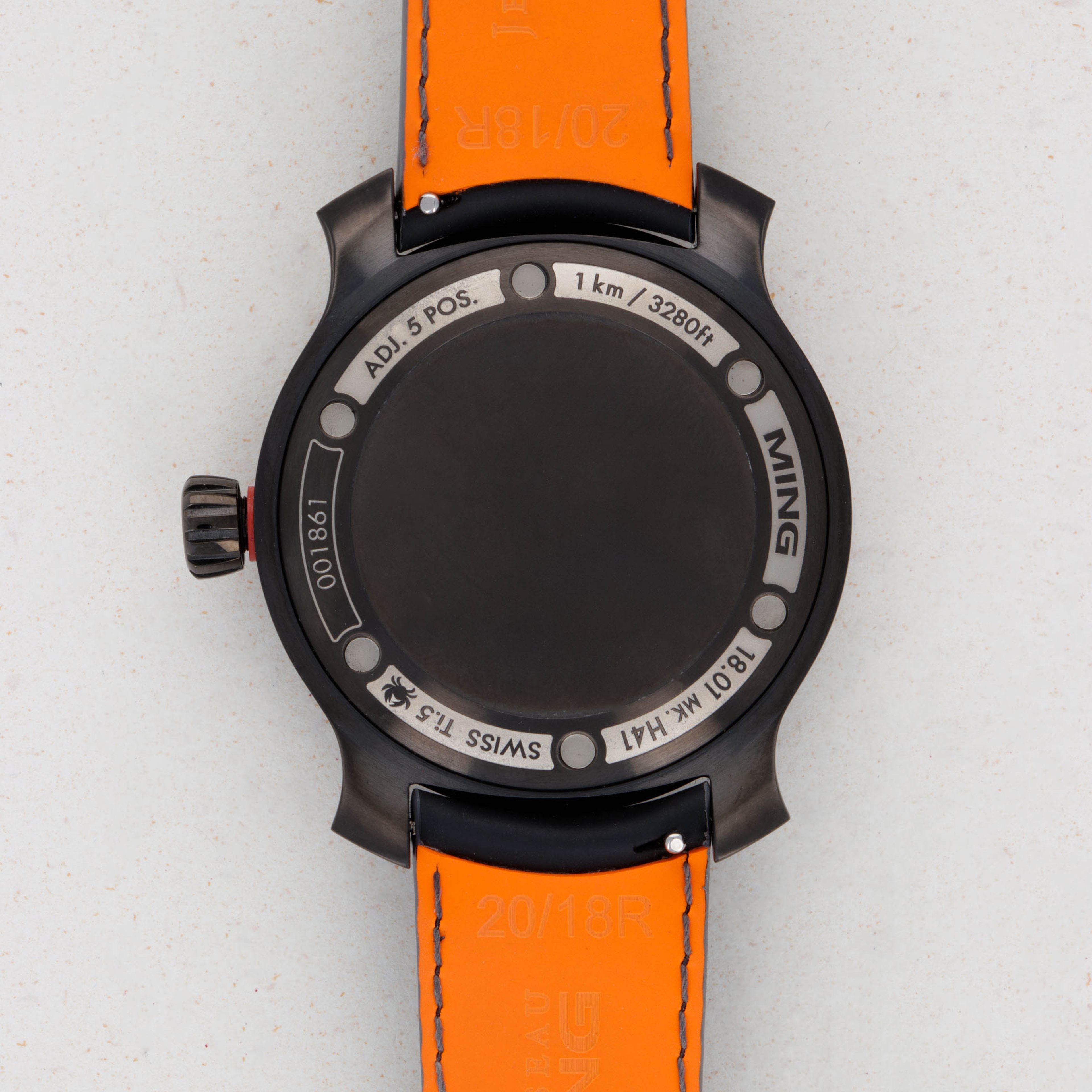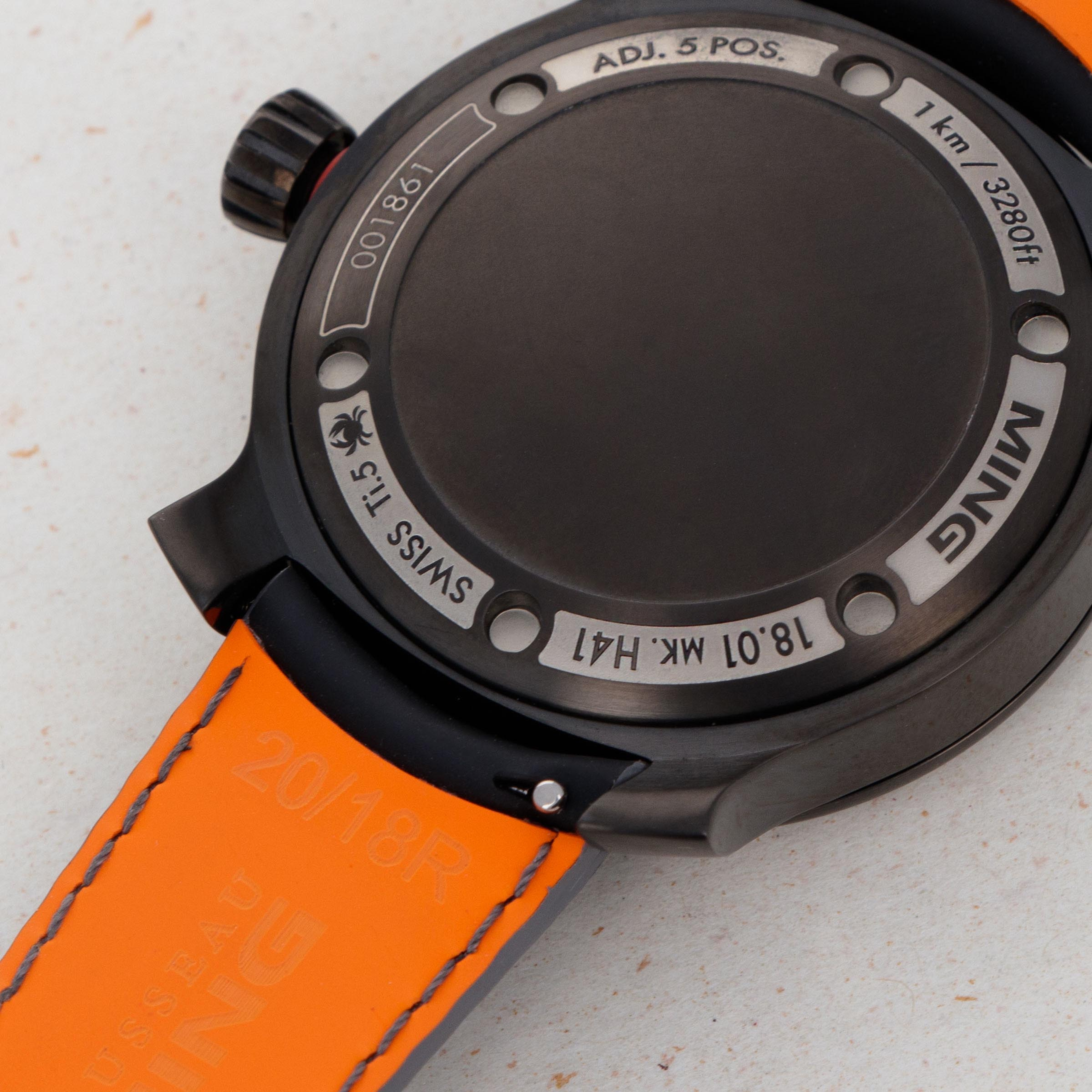Featuring a totally blacked-out DLC-coated titanium construction, the 18.01 DLC is an incredibly stealthy timepiece as it sits on a matching quick release black rubber strap with a black bezel, crown and caseback to boot.