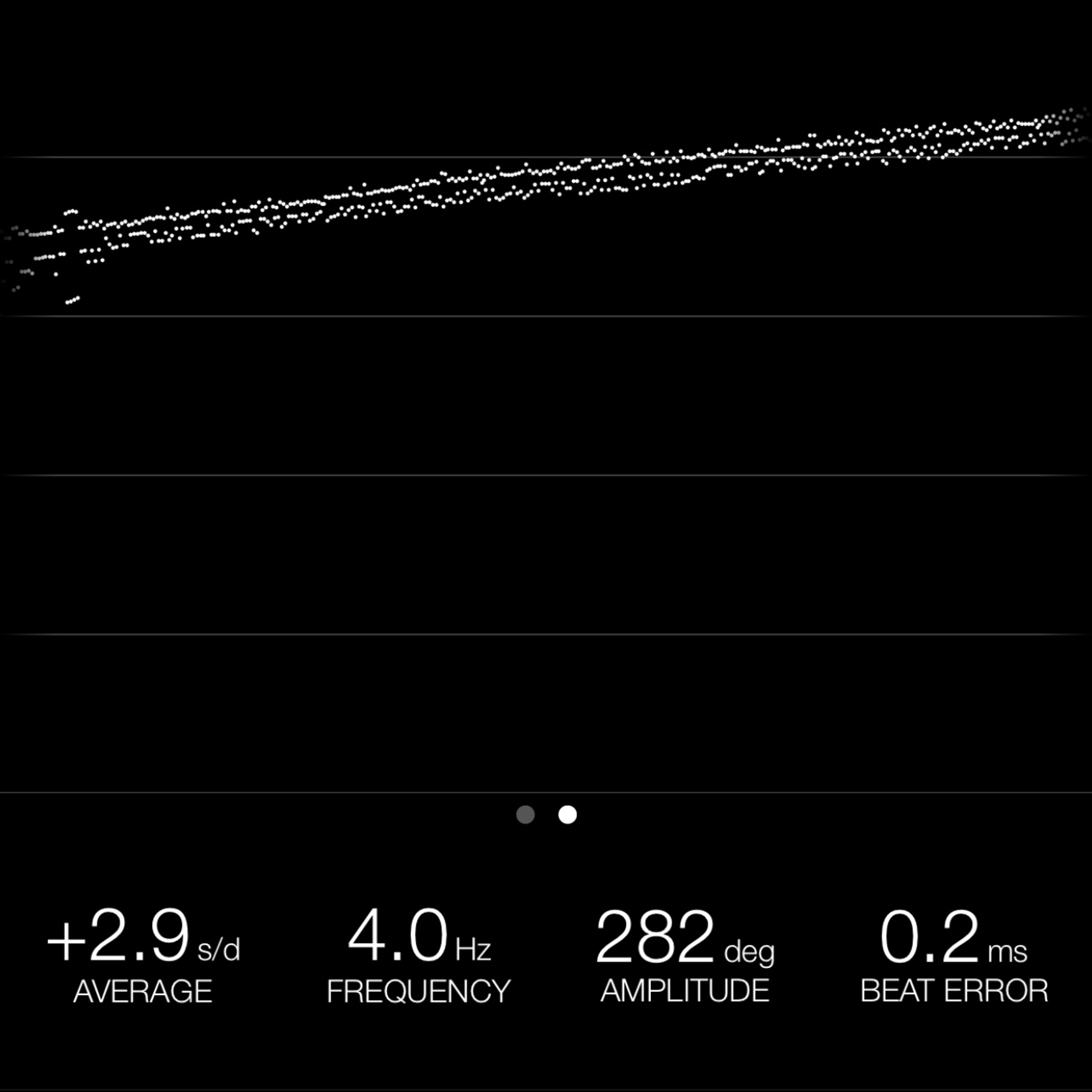 This reading was taken (crown down) with a ONEOF Accuracy Boutique Edition timing machine at time of cataloging. It is provided as a courtesy only, and shall not be construed as a warranty or guarantee of any kind. Please refer to our terms and conditions of sale for more information.
