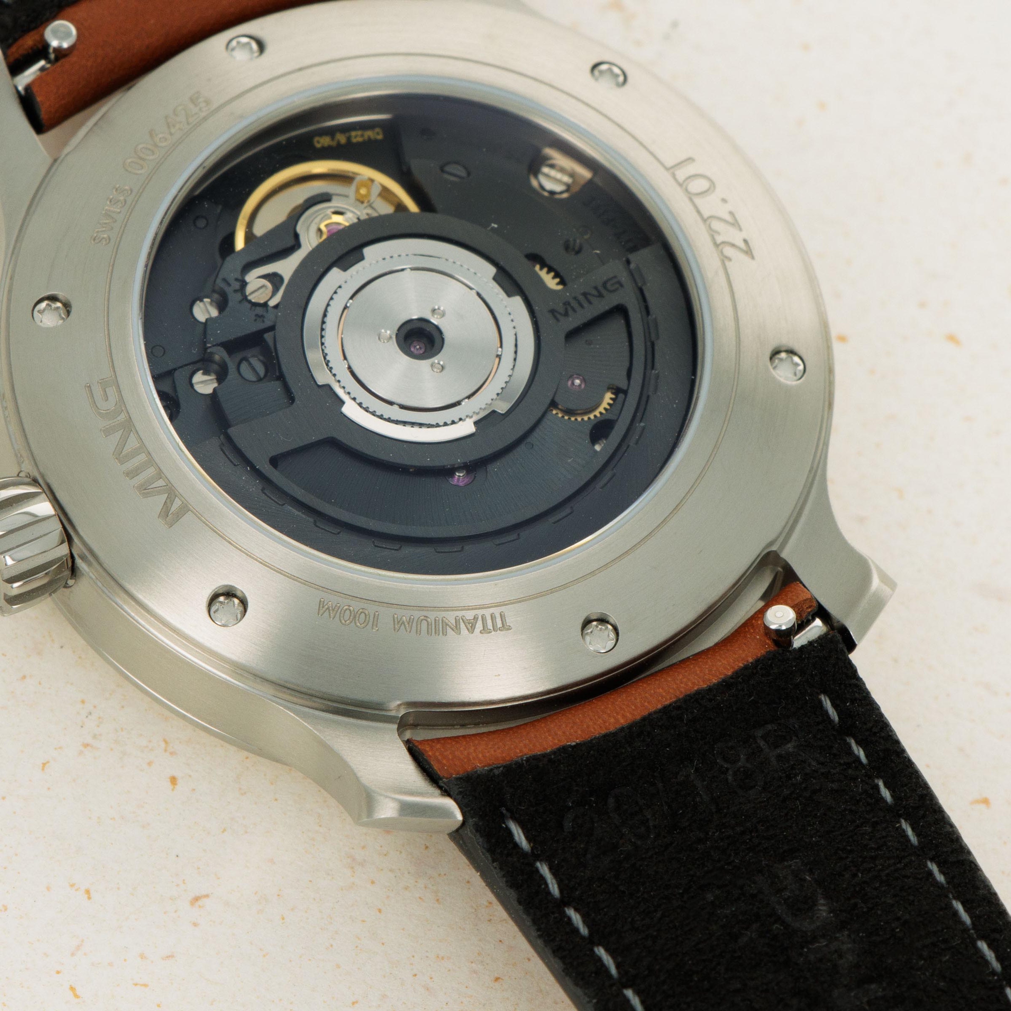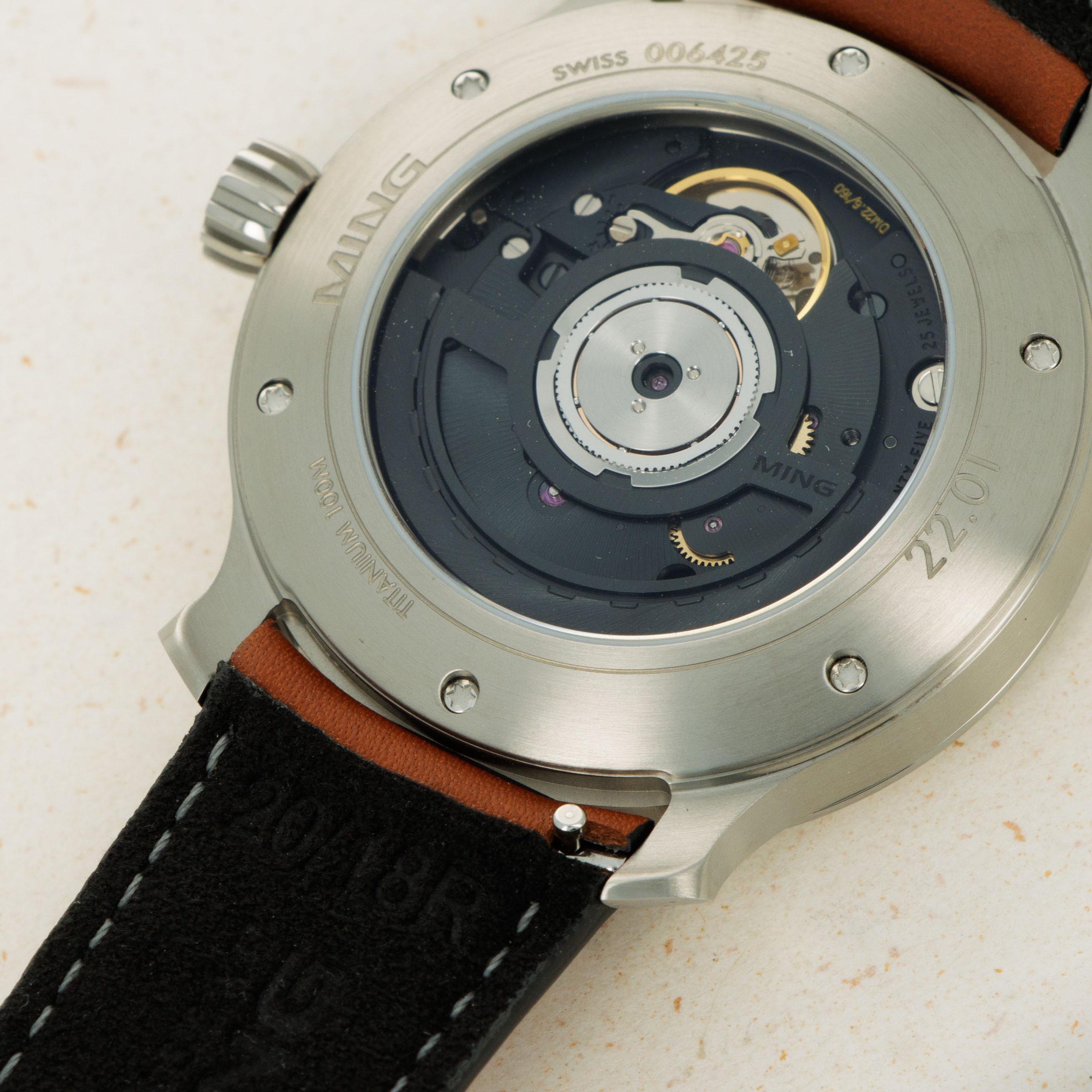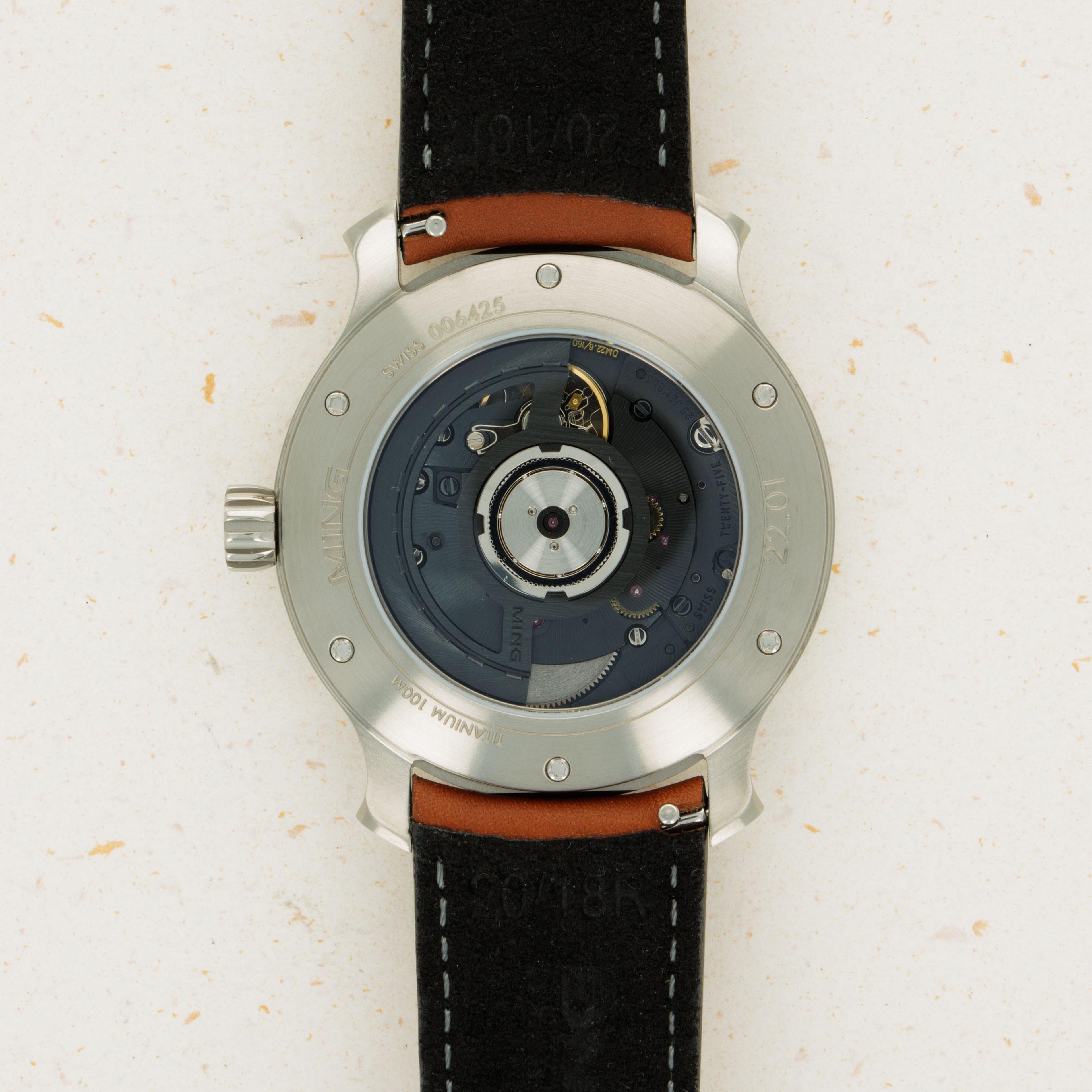 Featuring MING's signature case design with its 38mm diameter, round design, and pagoda lugs, the 22.01 will bring a familiar feel to the wrist of any MING collector, except for the lightness brought about by its titanium construction.