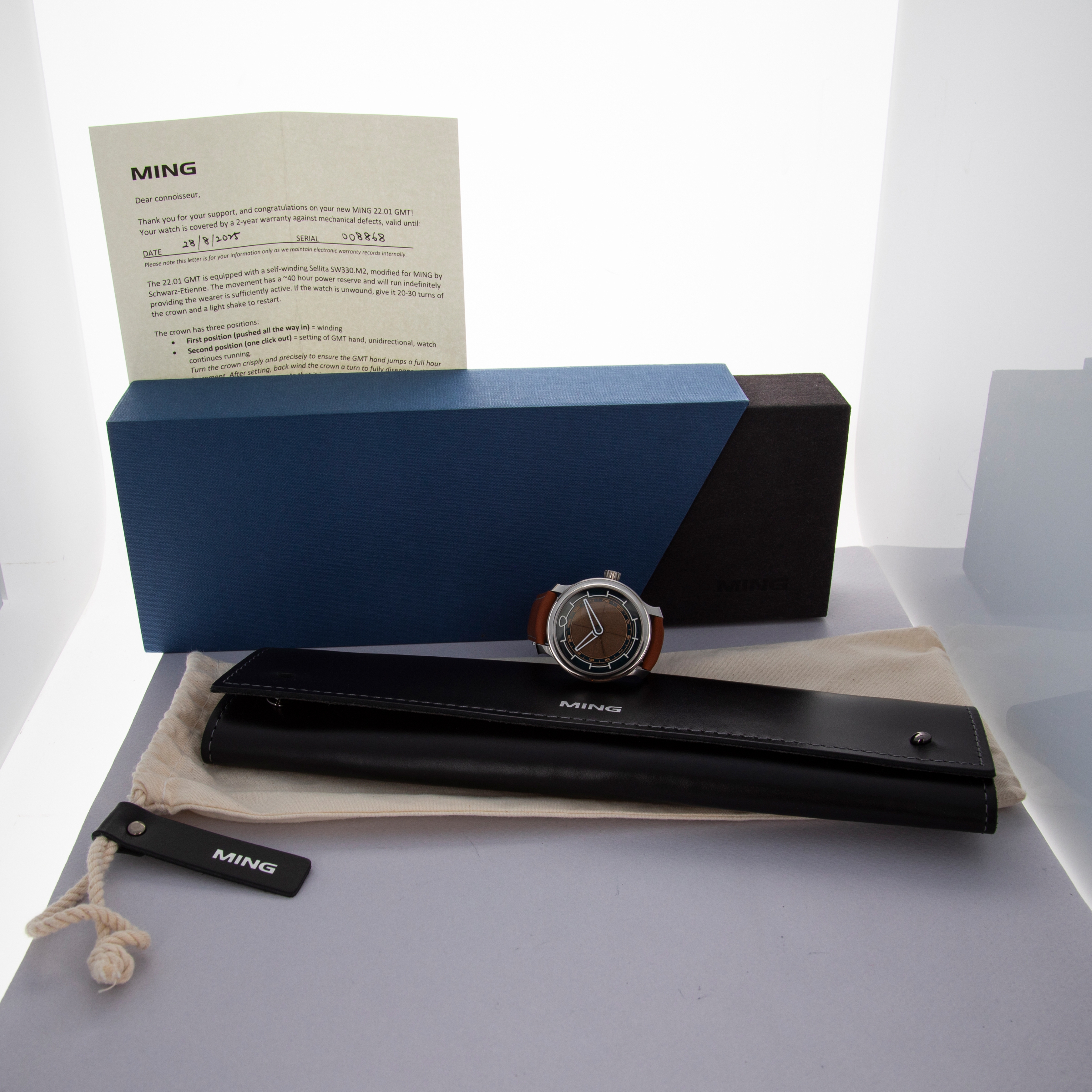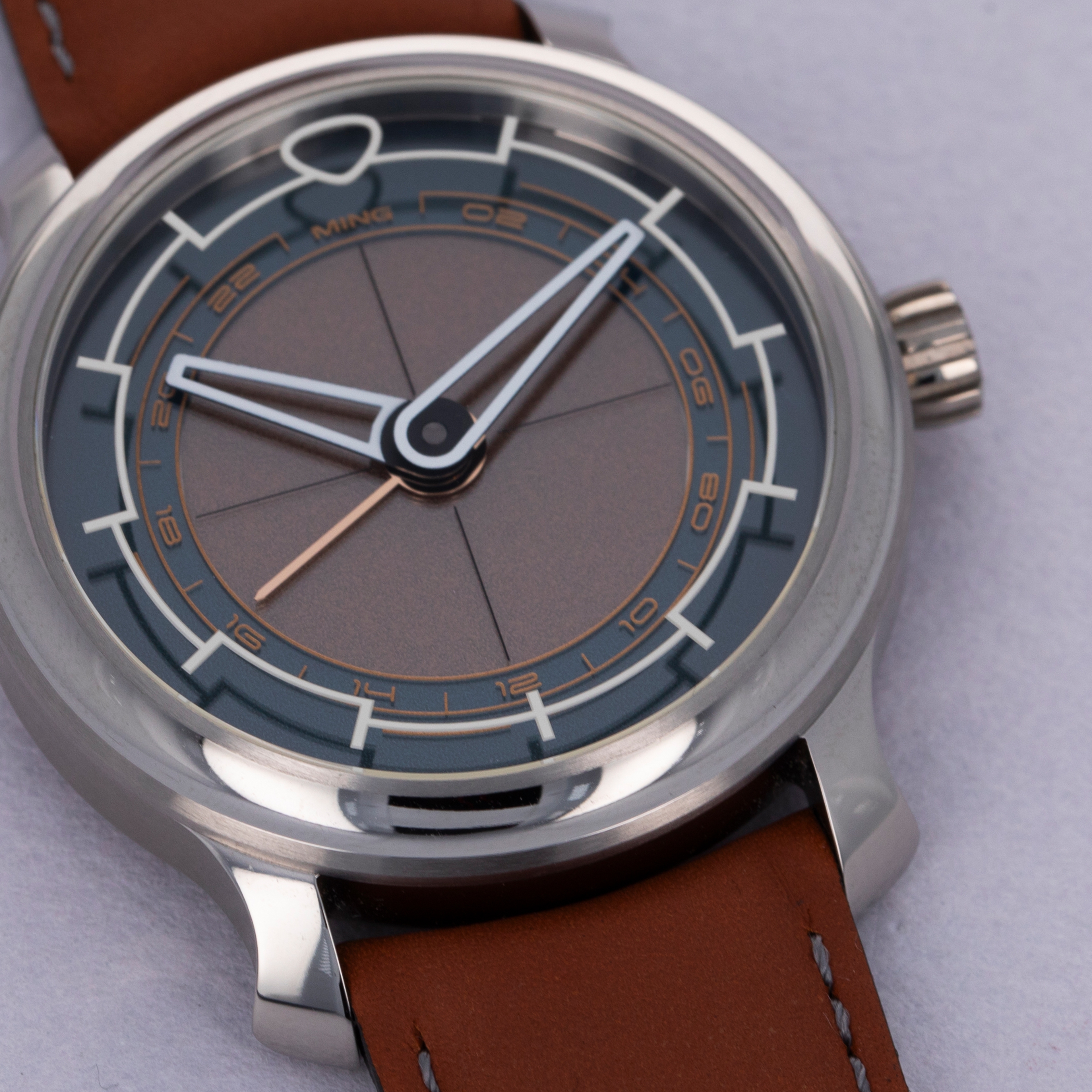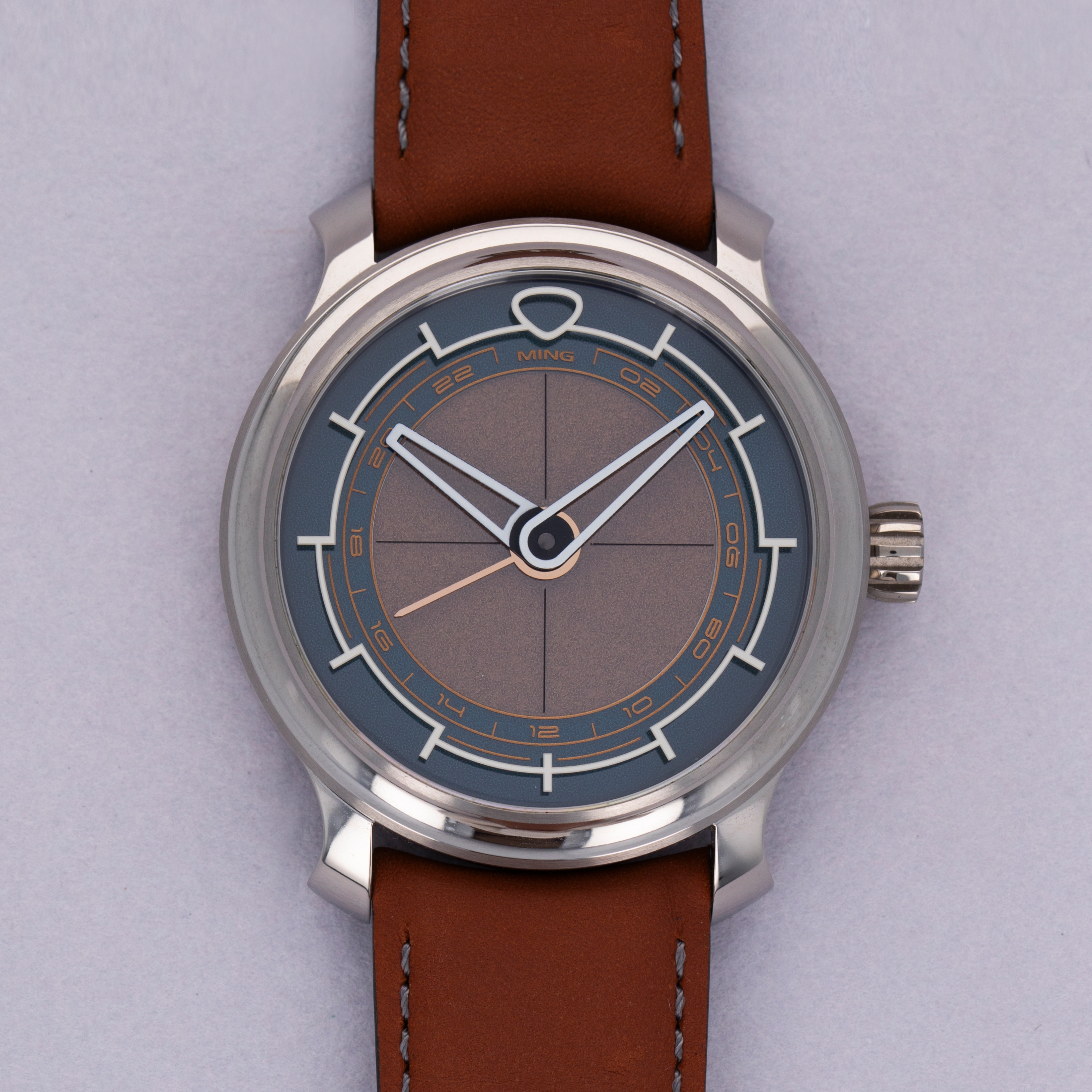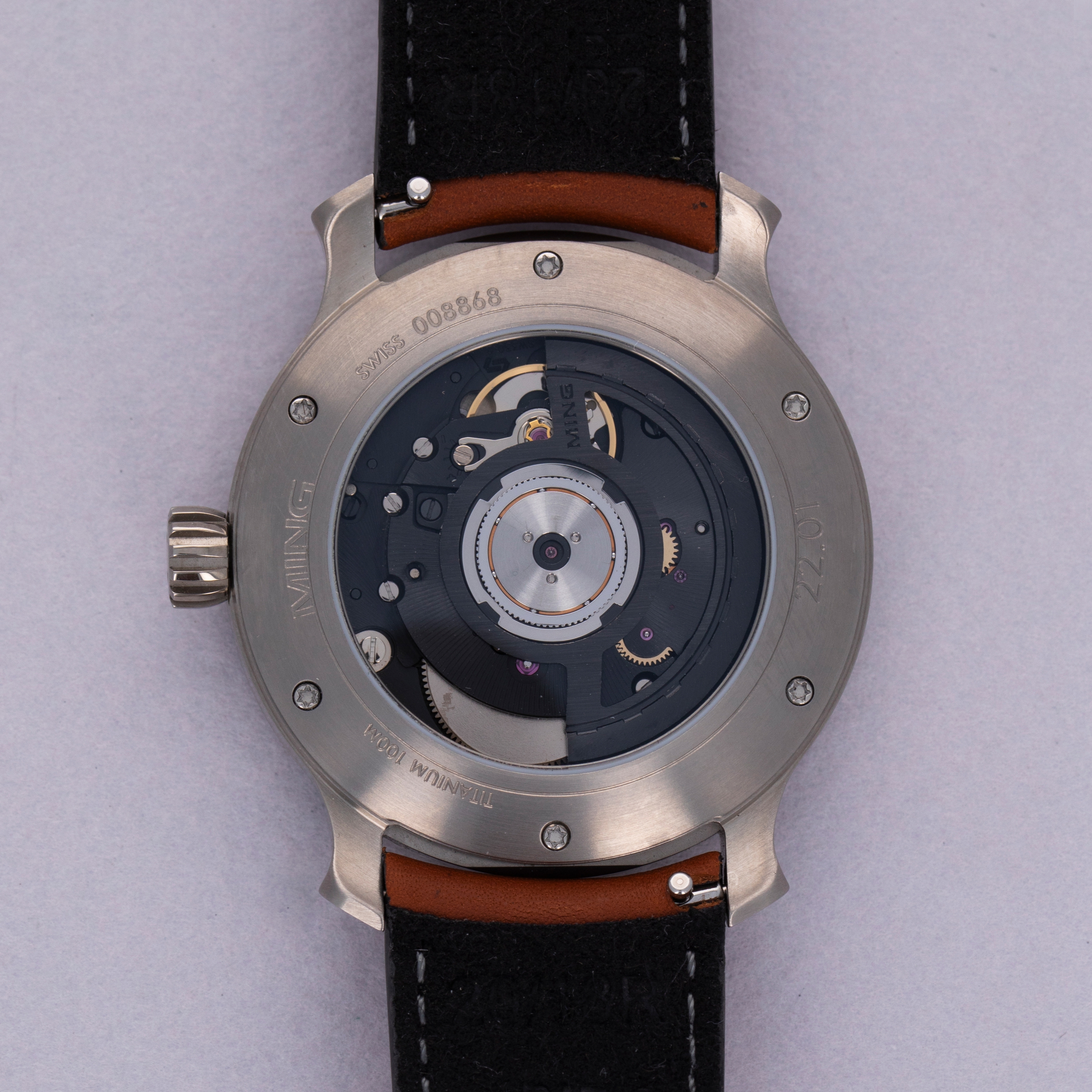 Featuring MING's signature case design with its 38mm diameter, round design, and pagoda lugs, the 22.01 will bring a familiar feel to the wrist of any MING collector, except for the lightness brought about by its titanium construction.