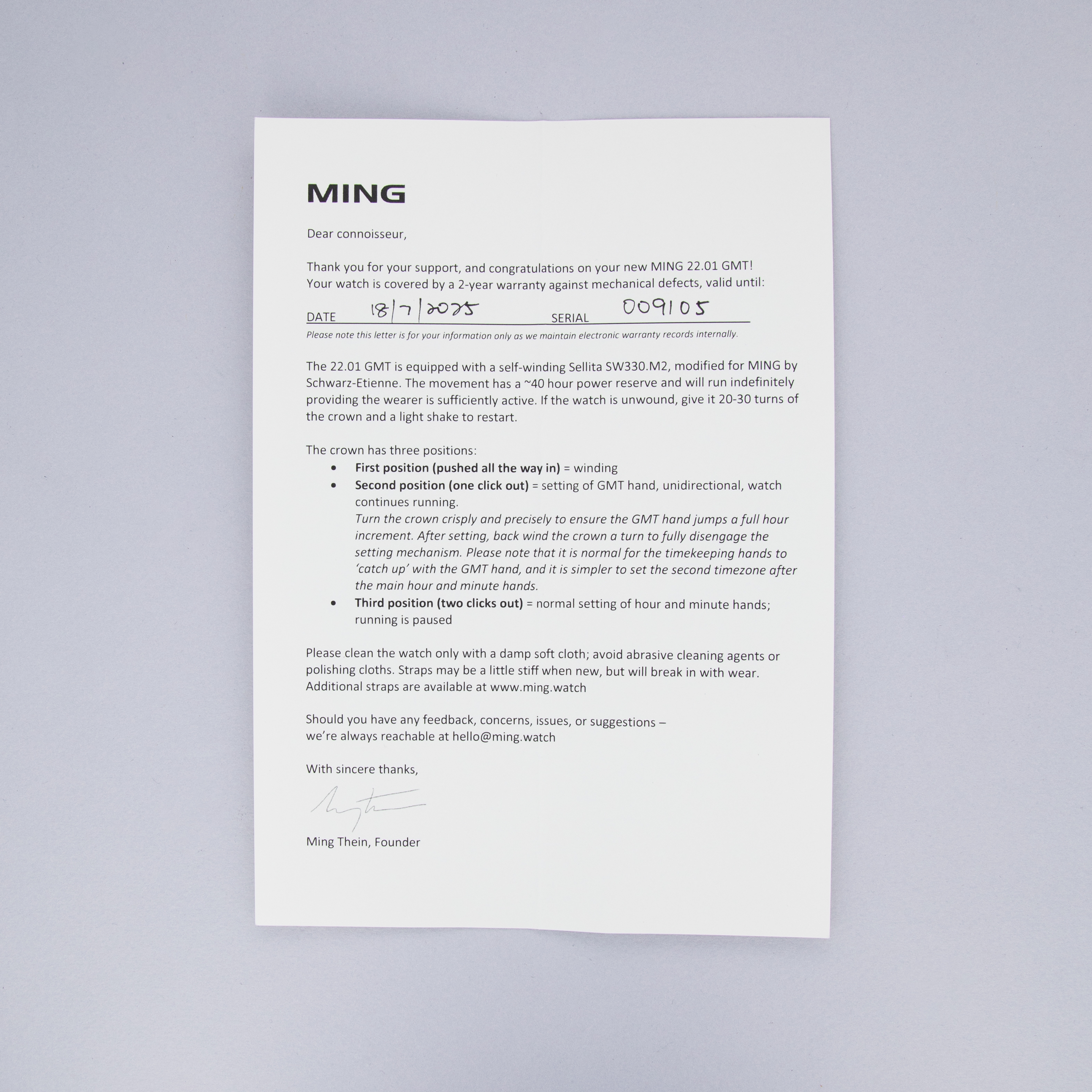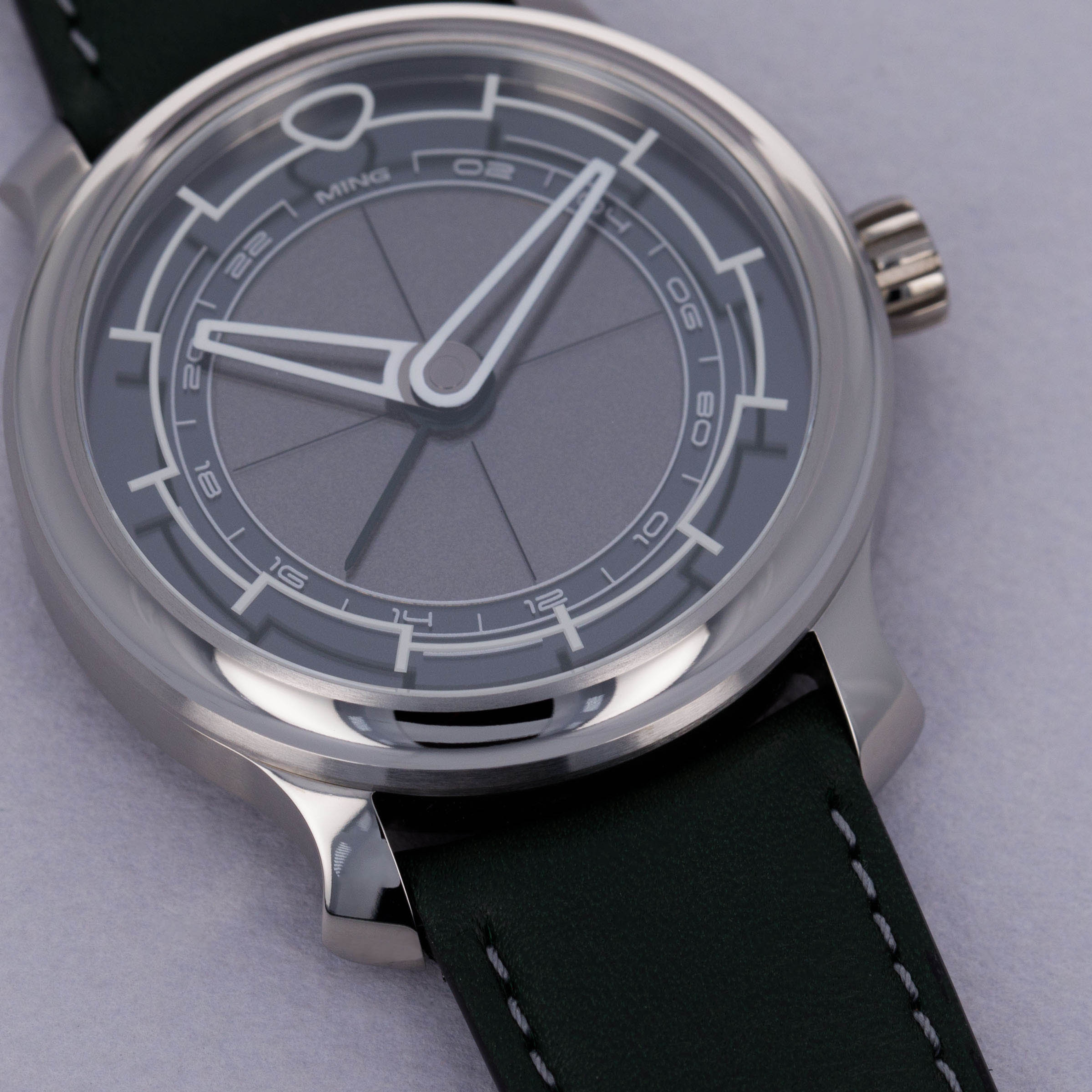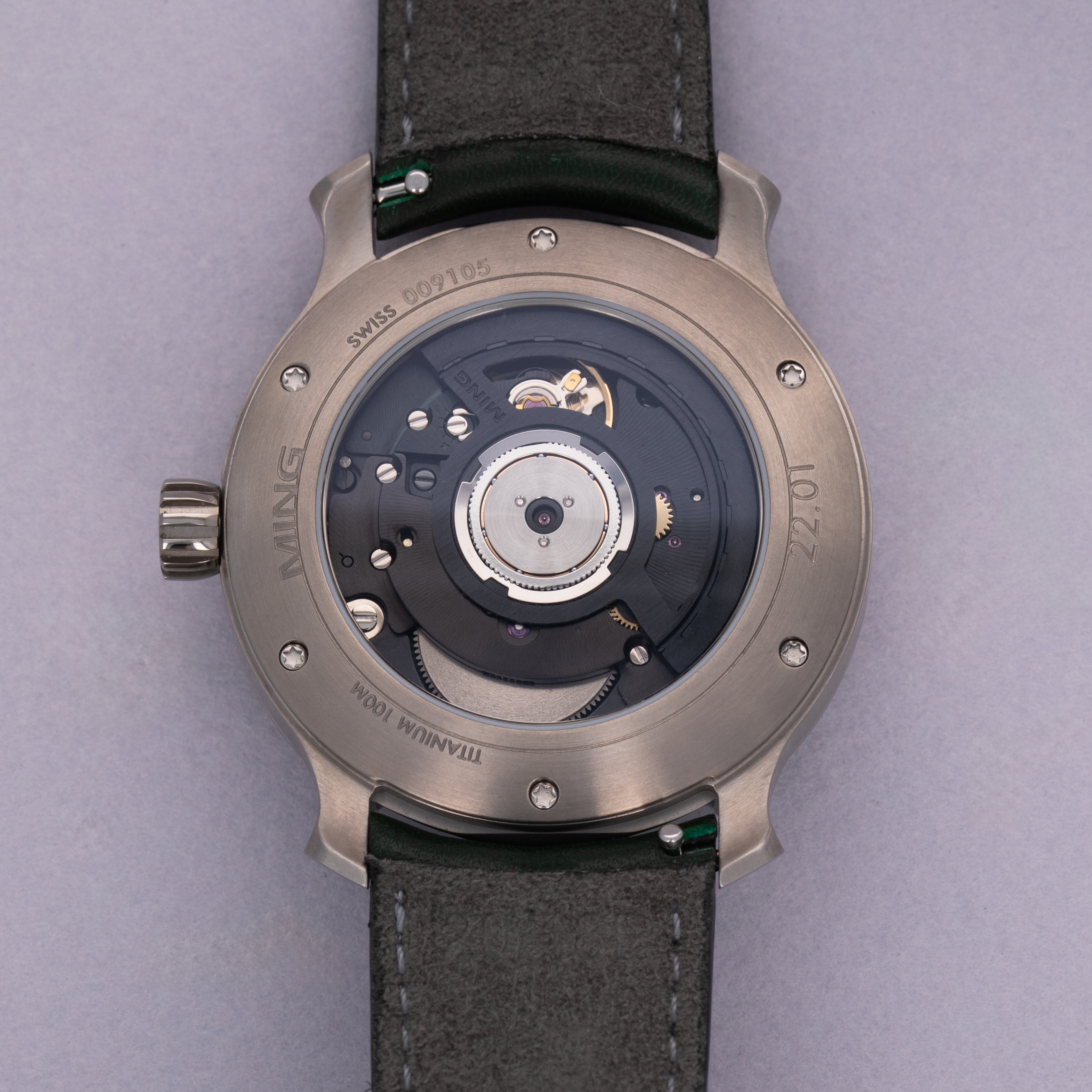 Featuring MING's signature case design with its 38mm diameter, round design, and pagoda lugs, the 22.01 will bring a familiar feel to the wrist of any MING collector, except for the lightness brought about by its titanium construction.