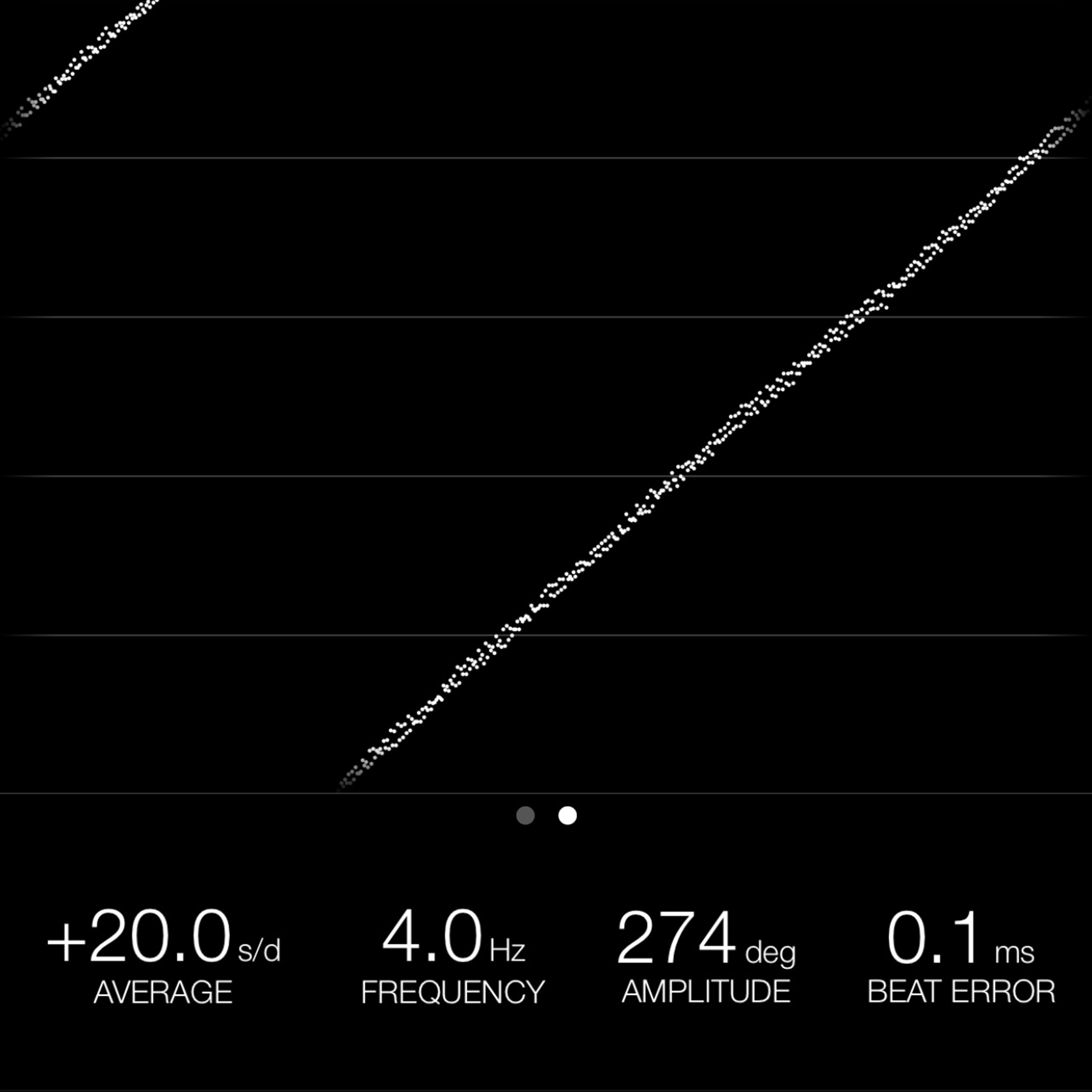 This reading was taken (crown down) with a ONEOF Accuracy Boutique Edition timing machine at time of cataloging. It is provided as a courtesy only, and shall not be construed as a warranty or guarantee of any kind. Please refer to our terms and conditions of sale for more information.