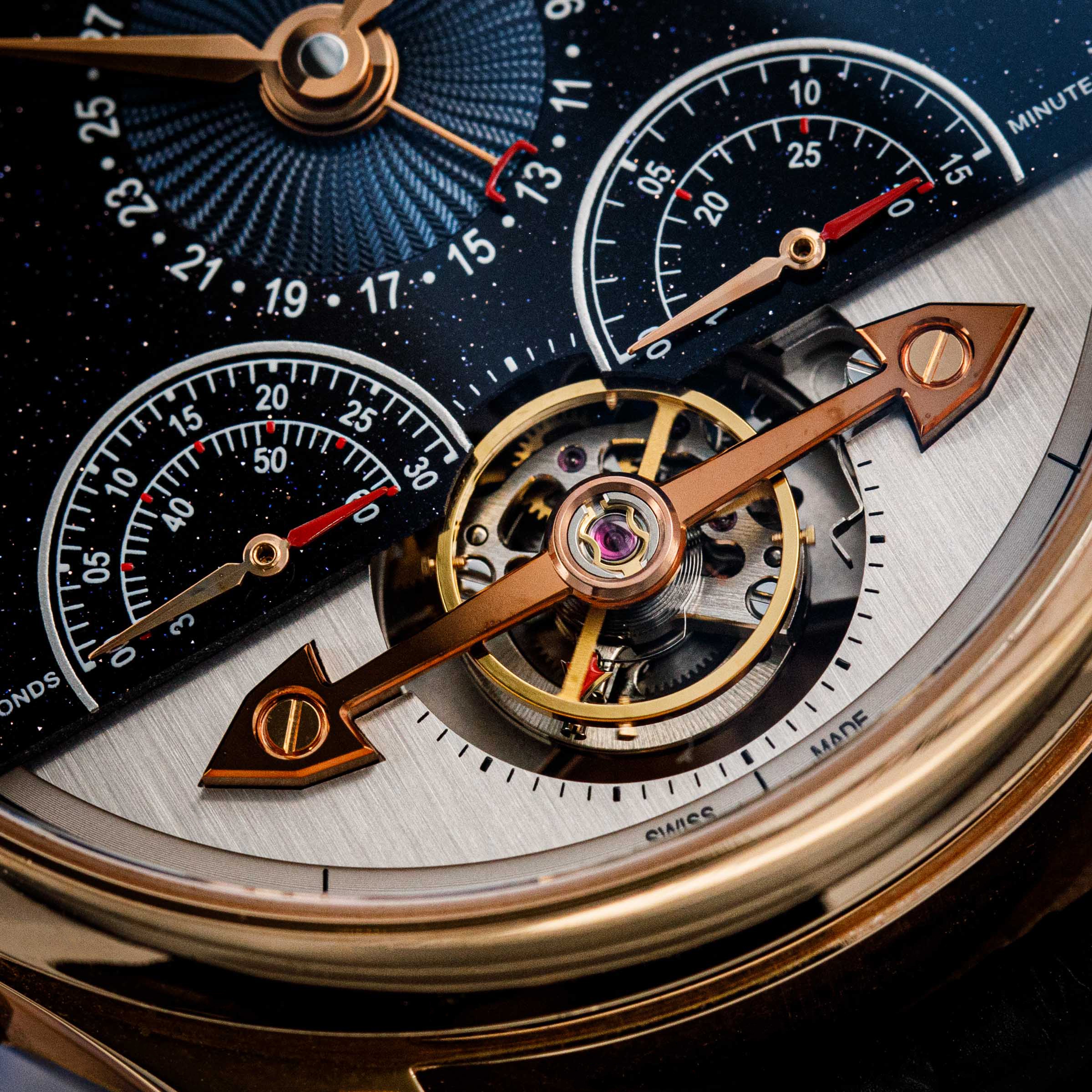 With a whopping amount of horology to contain, the ExoTourbillon requires a large case, and so it features a 44mm 18kt rose gold construction that is 14.79mm tall, which is impressively thin considering what it has going on under the hood.