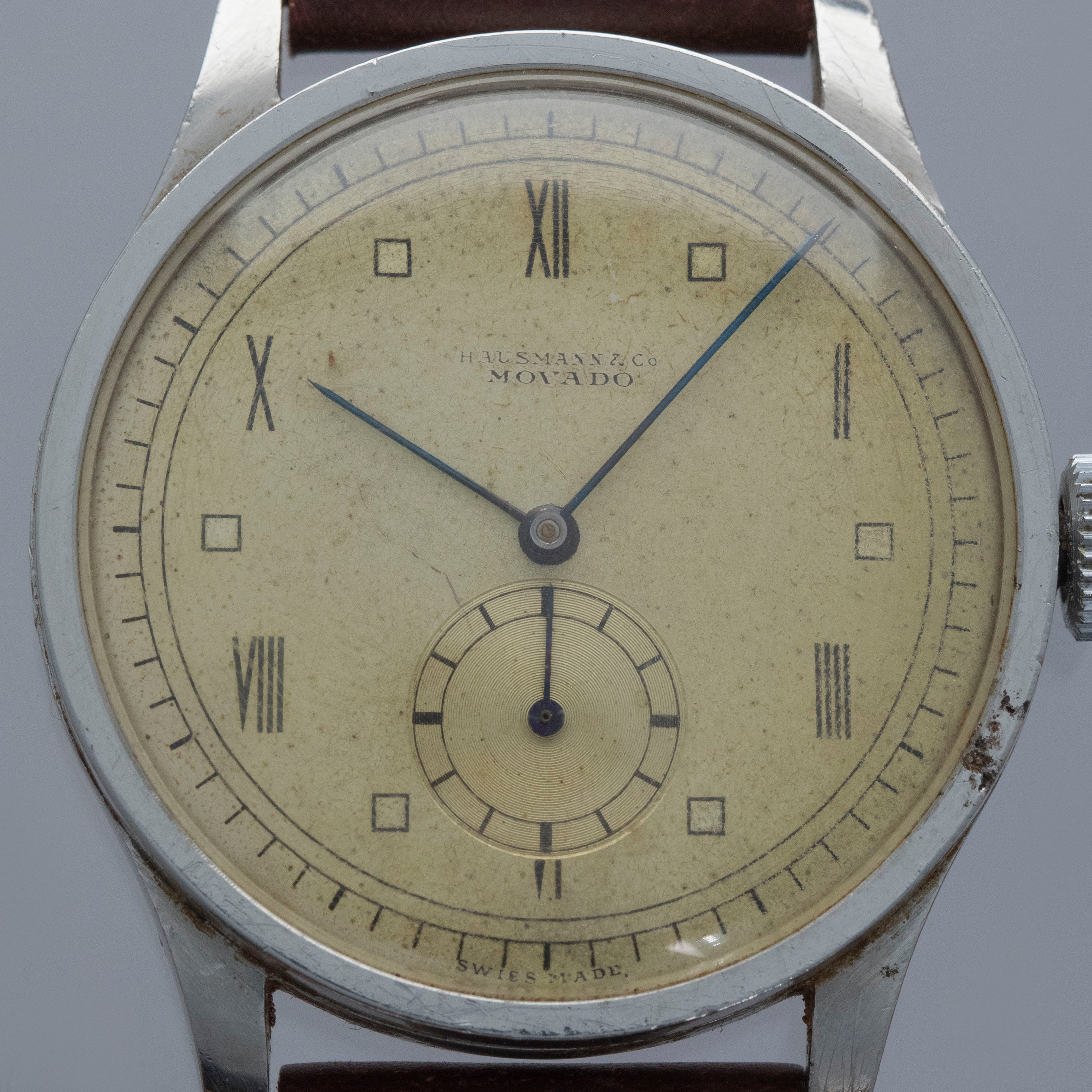 Retailed by Hausman & Co., as indicated by its retailed stamp at 12 o'clock above Movado's own logo, this ref. 12747 is a wonderfully rare example of an already-rare reference.