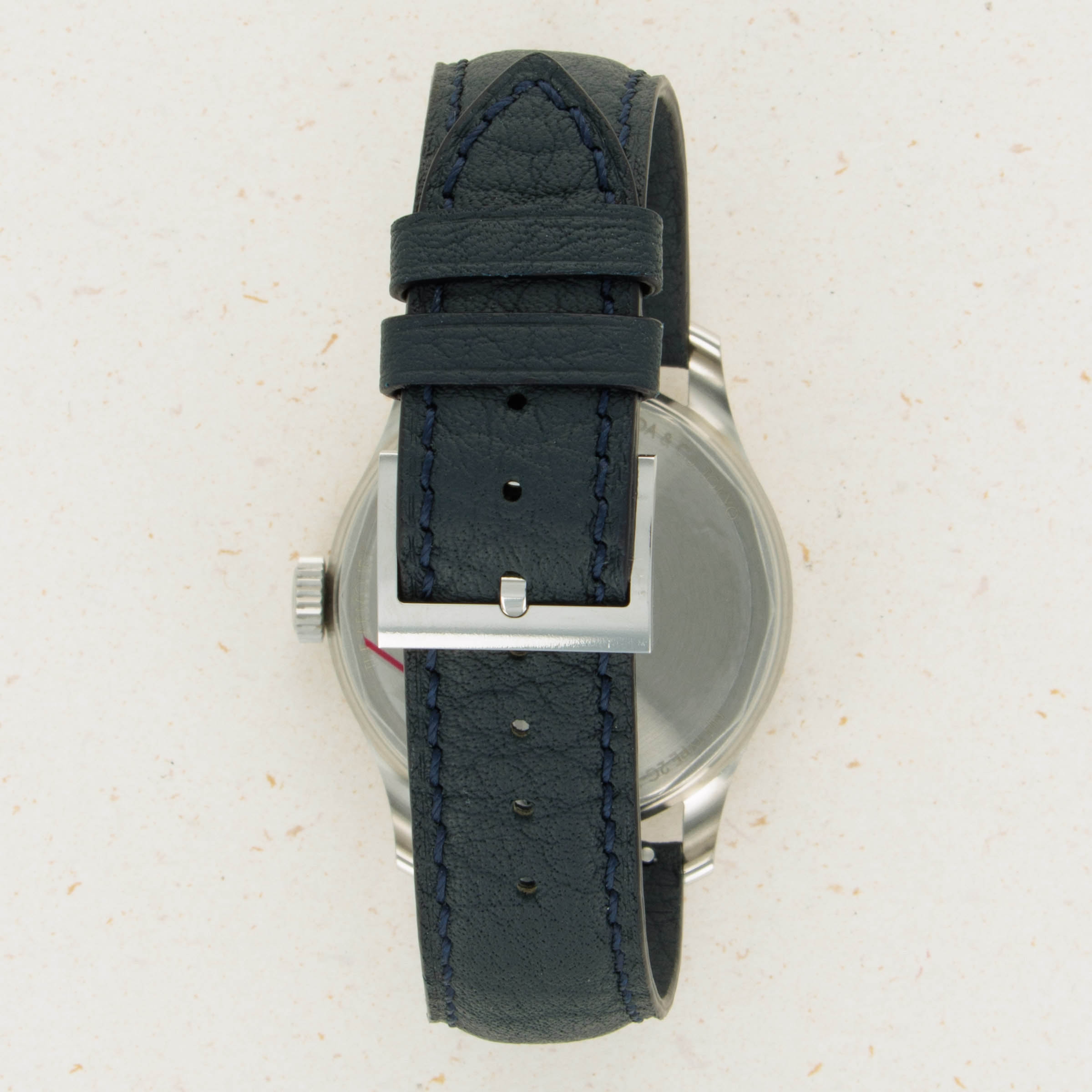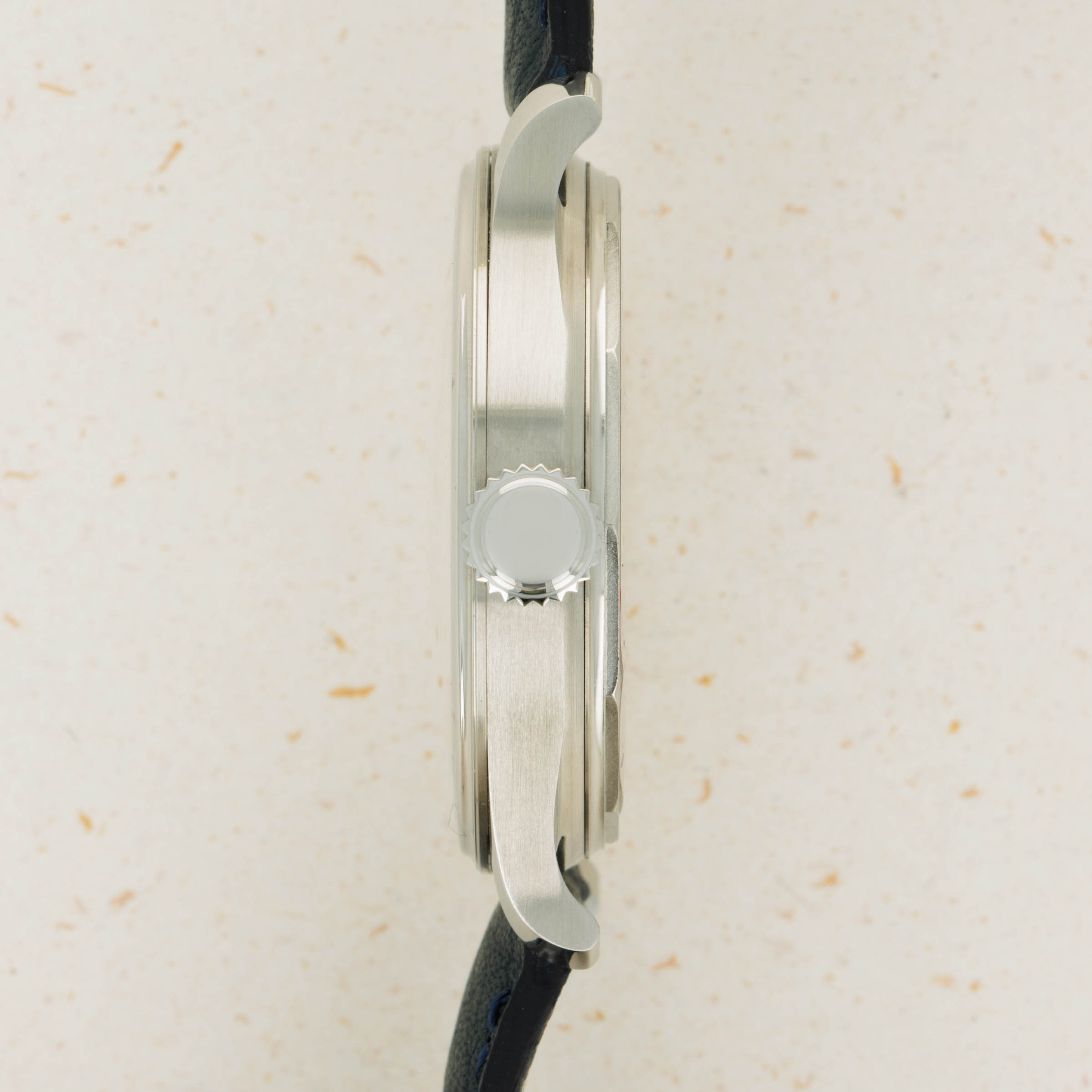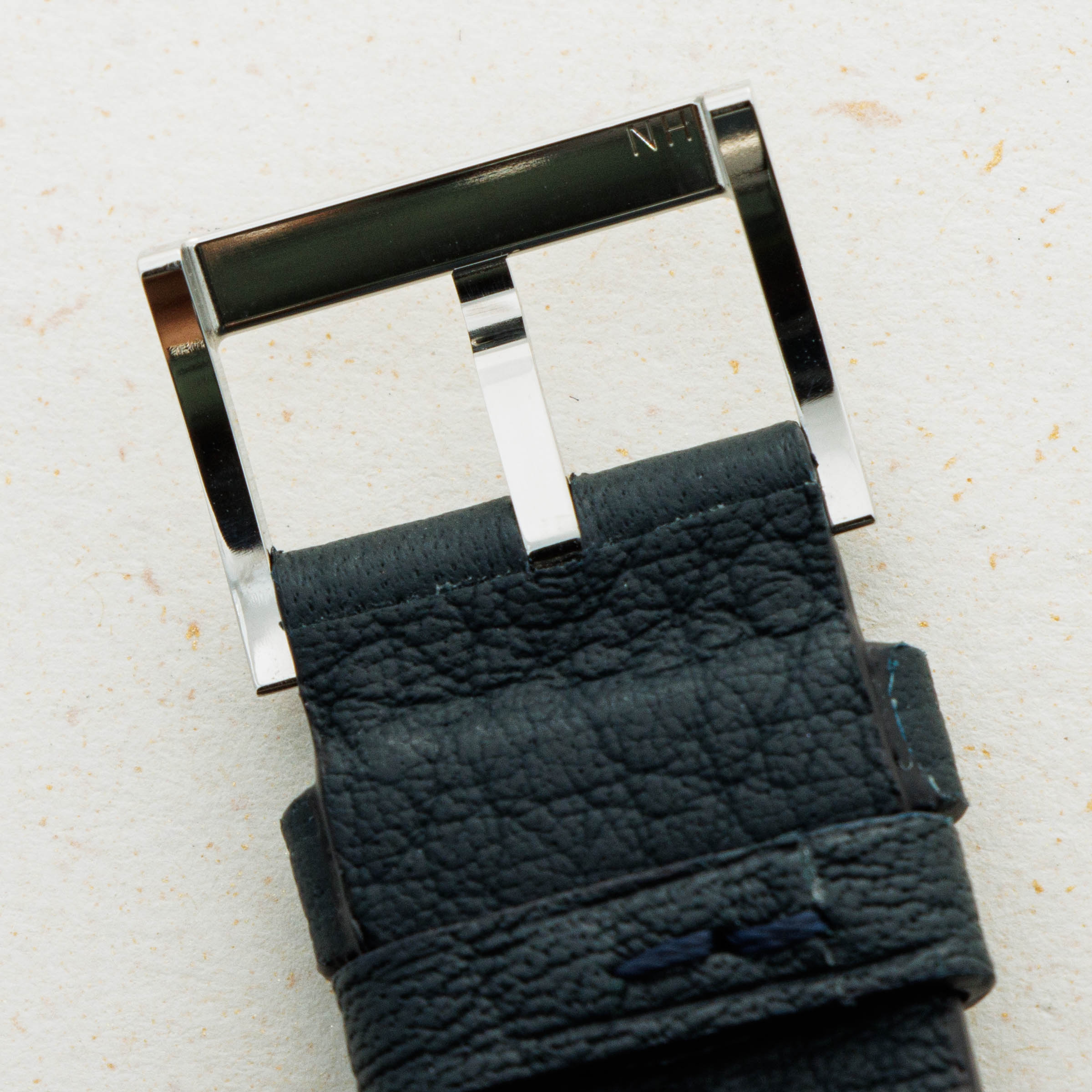 Boasting a German silver dial with several different layers and a full selection of hand-engraved navy blue Arabic numerals in The Armoury's "Lettercutter" font, the NH TYPE2C-1's display shows an incredible level of depth that speaks to the level of subtle detail found within its entire design.