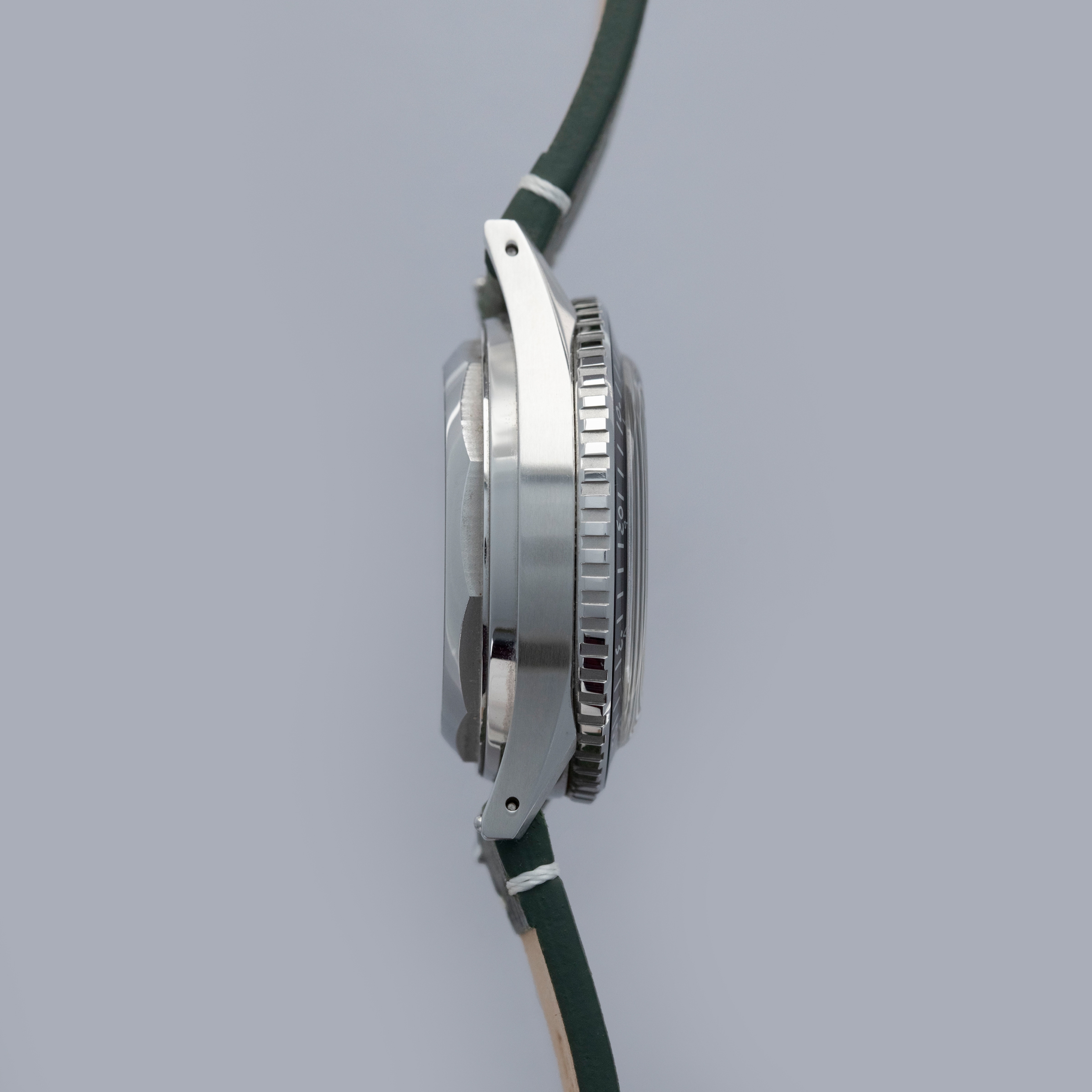 Boasting Eastern-Arabic numerals in its olive green dial and black bezel in homage to Perpétuel's Arabic roots as a Middle-Eastern retailer based in Dubai, this Chronomaster features a stylistic flourish that distinguishes it from its normal production siblings.