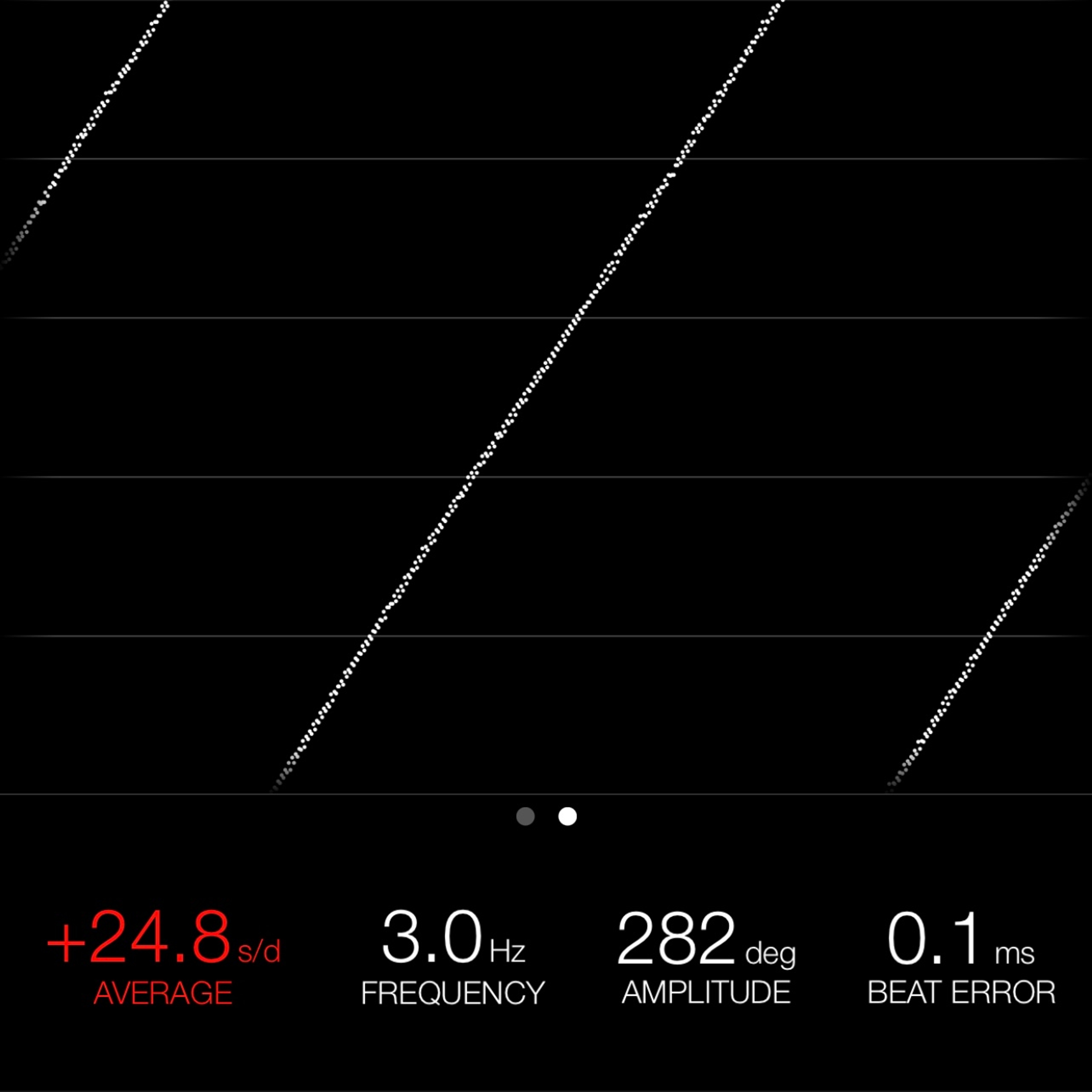 This reading was taken (crown down) with a ONEOF Accuracy Boutique Edition timing machine at time of cataloging. It is provided as a courtesy only, and shall not be construed as a warranty or guarantee of any kind. Please refer to our terms and conditions of sale for more information.