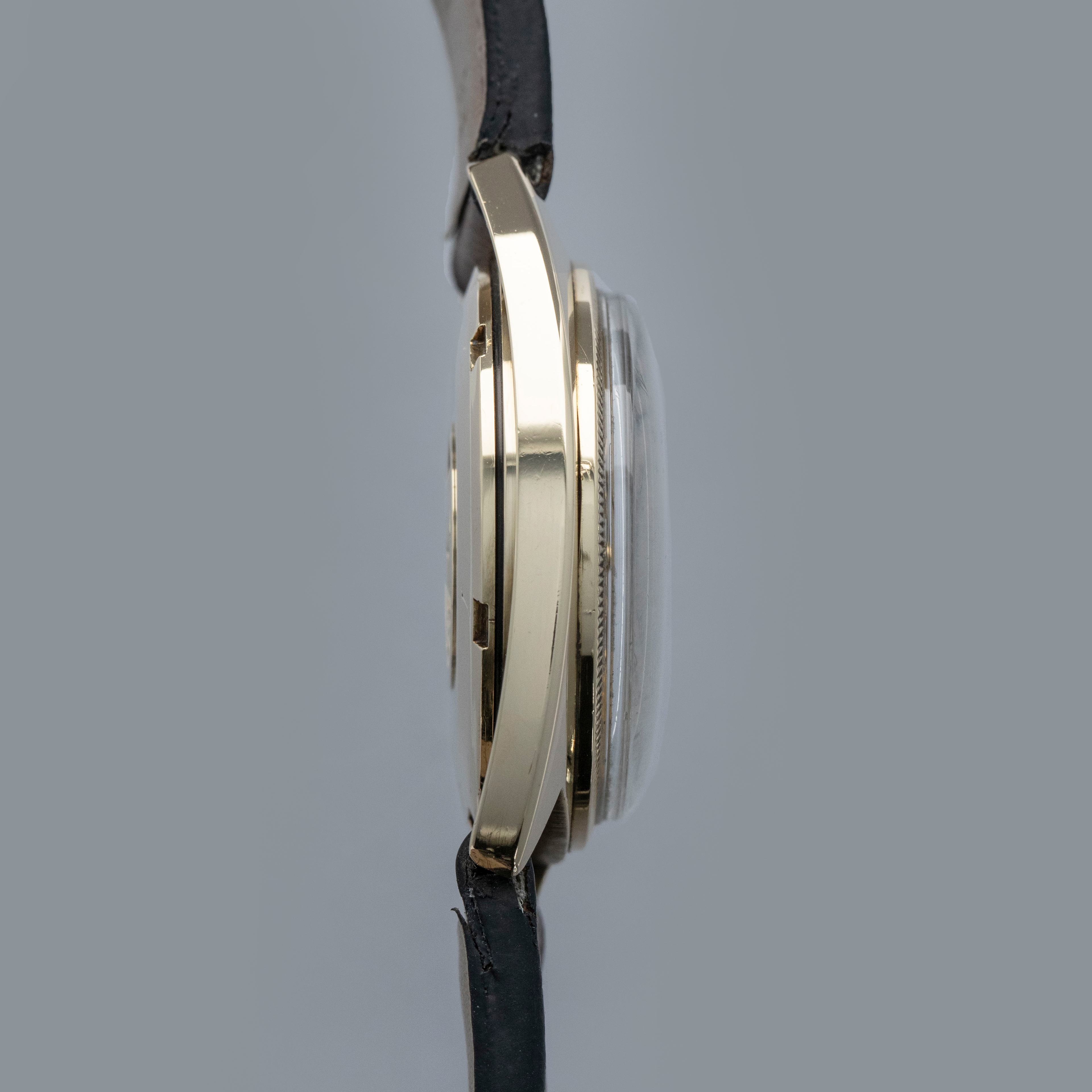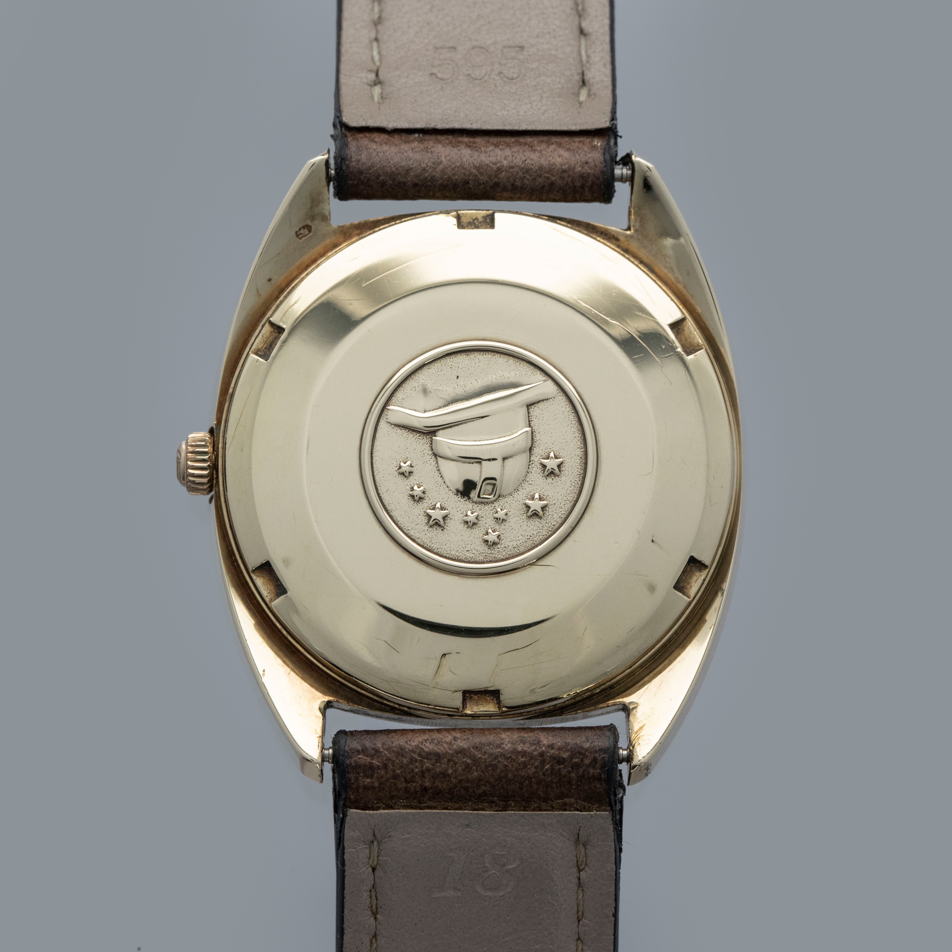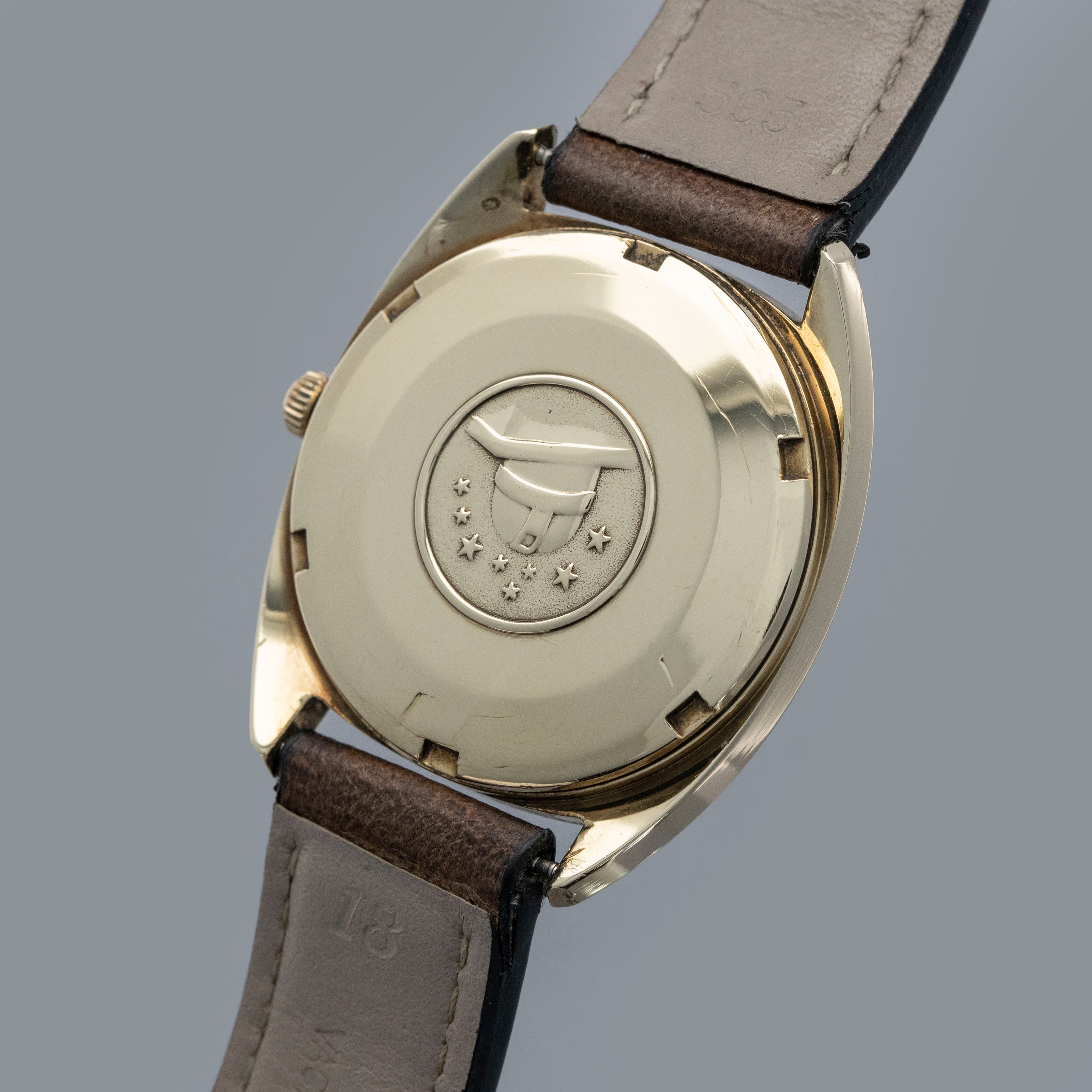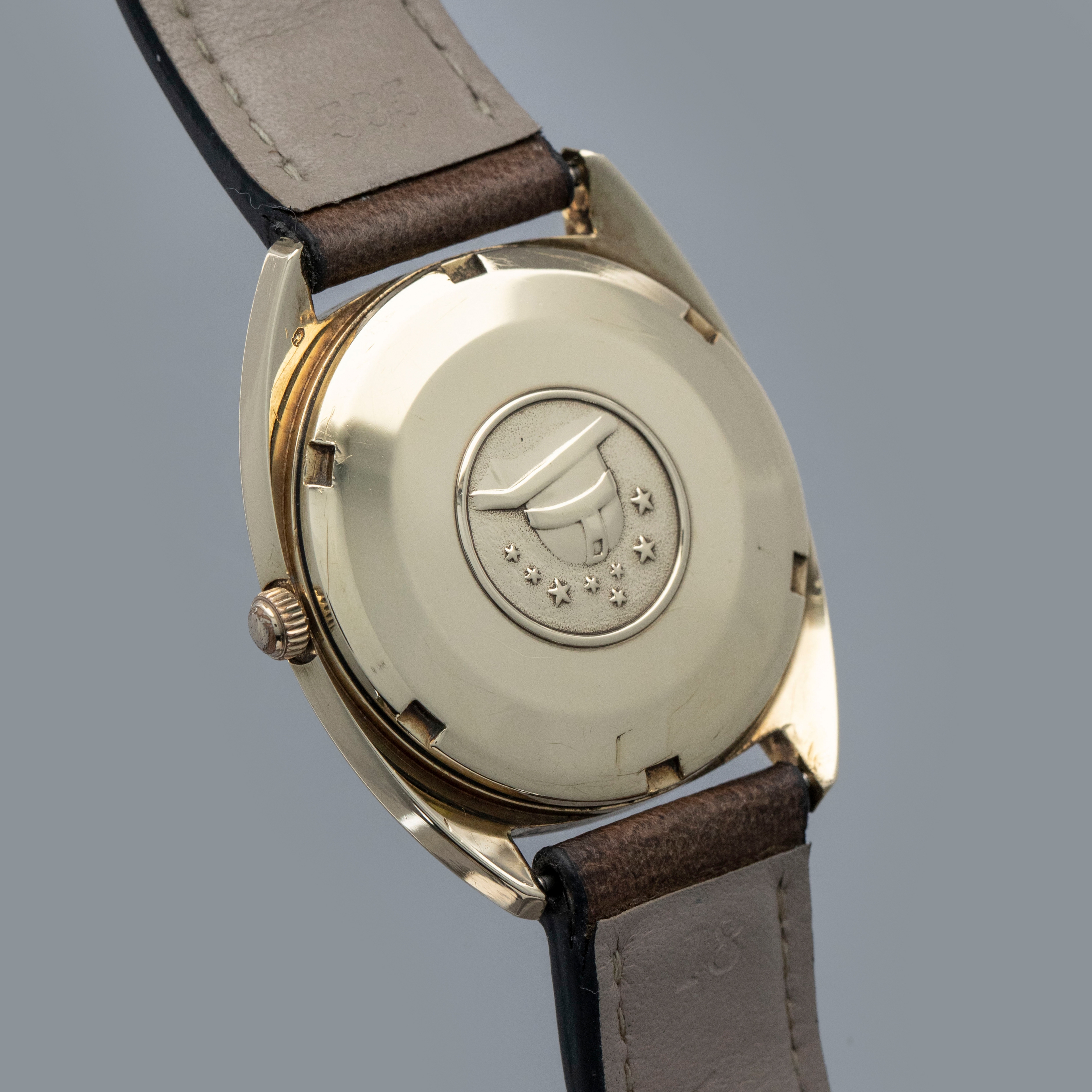 Launched in 1964, the C-shape case was known for its tonneau shape, which was a departure from the Constellation's traditional round shape. Made of 14kt yellow gold, this example's C-shape case is wonderfully preserved.