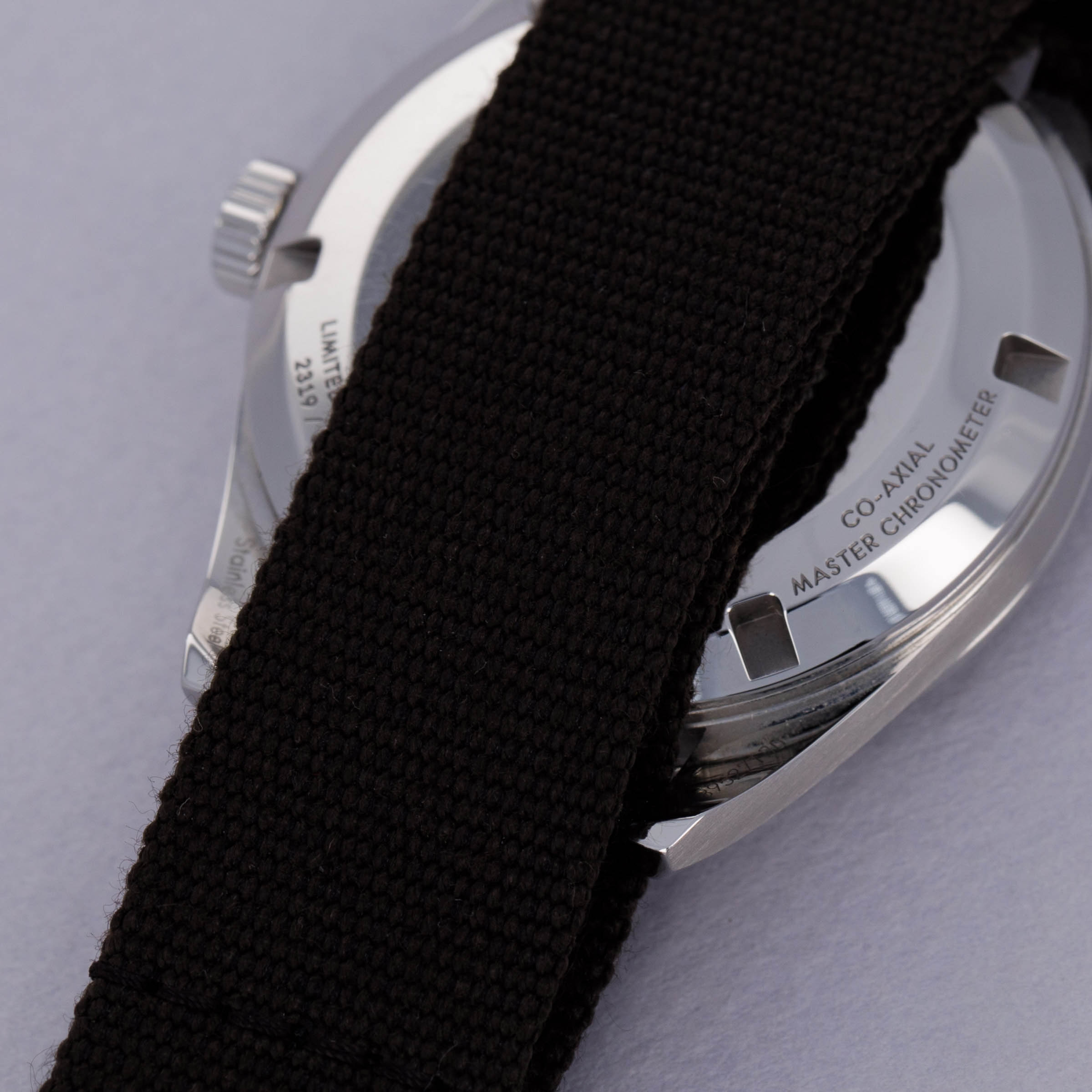 Watch is in near-mint condition, with only gentle signs of use. Watch is currently fitted on the included canvas strap with Omega buckle, but the bracelet and associated removed links is included as well.