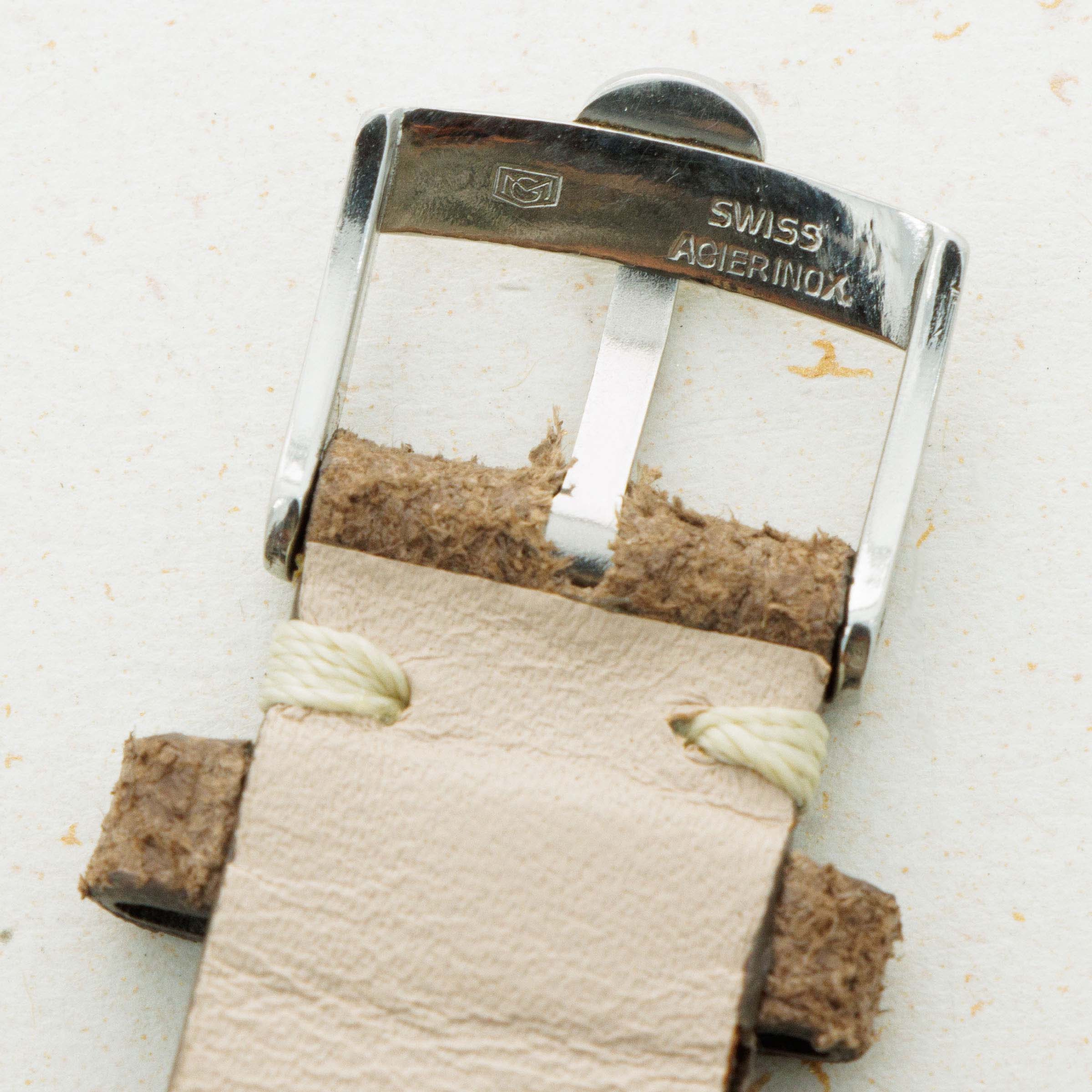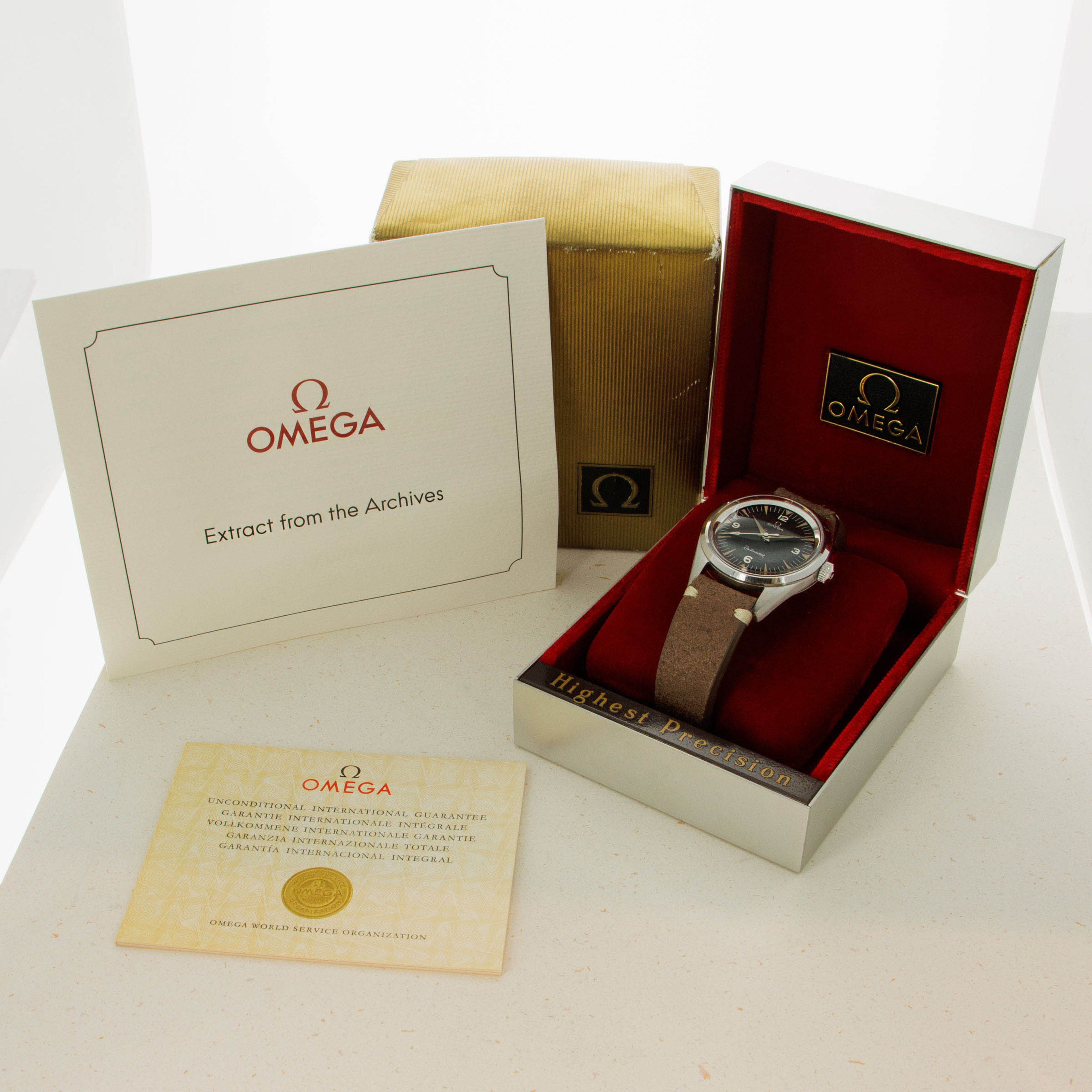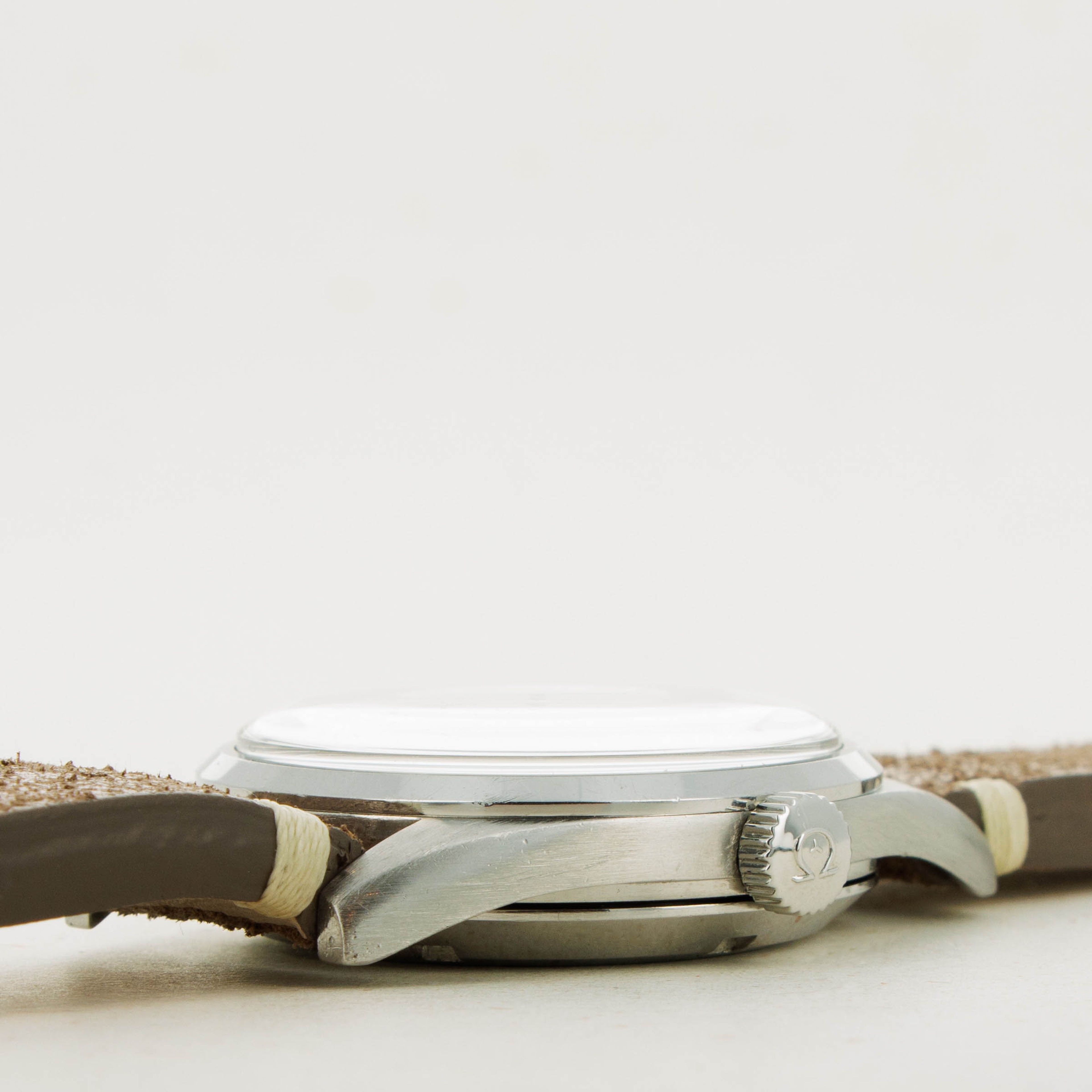 Watch is in very good original conditon overall. Case lugs show wear, consistent with it being well worn over the years. Hour and minute hand luminous appear to fluoresce slightly longer than the rest of the lume, but the tone is all consistent. Dial is in excellent condition, with a bit of a halo around the luminous indexes. Dust cap and retainer ring are included and pictured above. Watch comes with a period box and blank guarantee papers. This lot was previously sold on Loupe This on 10/29/2021.
